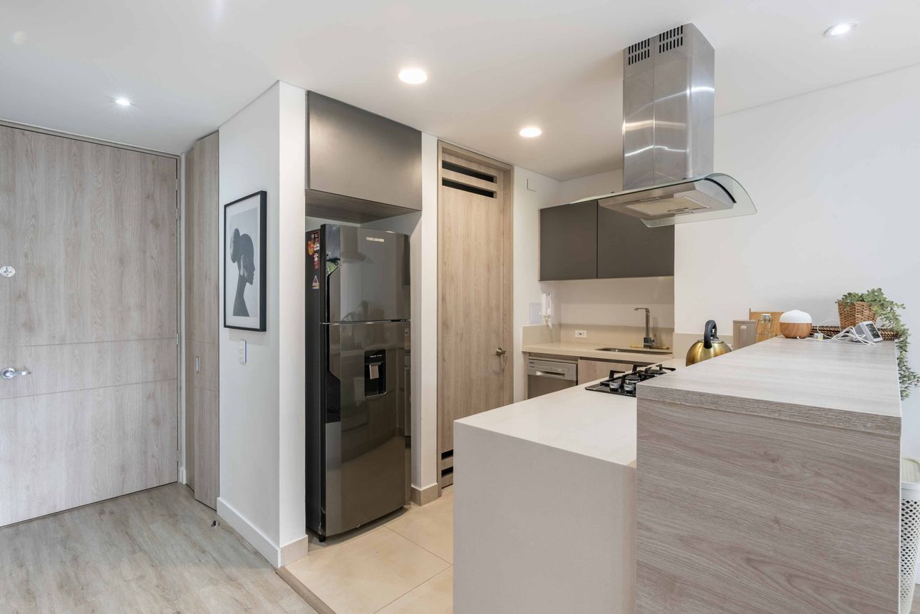 Te ofrecemos este acogedor apartamento de 1 habitación ubicado en un cuarto piso, exterior con vista a la ciudad. Su diseño de cocina americana y sala comedor integrados, es perfecto para aquellos que disfrutan de espacios abiertos y luminosos. Además, el apartamento cuenta con un balcón y una zona de lavandería, que ofrece comodidad y practicidad. Dispone también de parqueadero independiente para un vehículo.