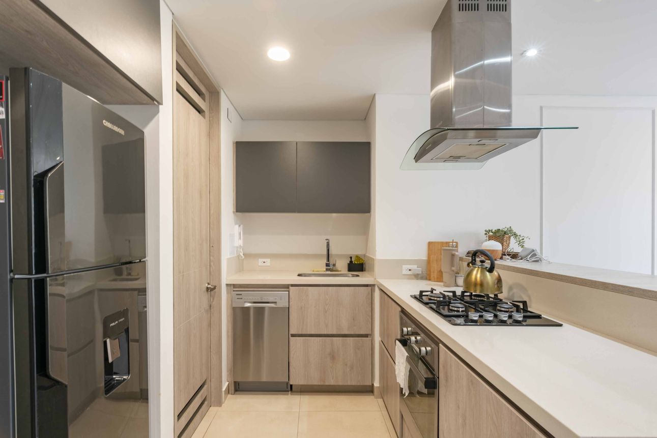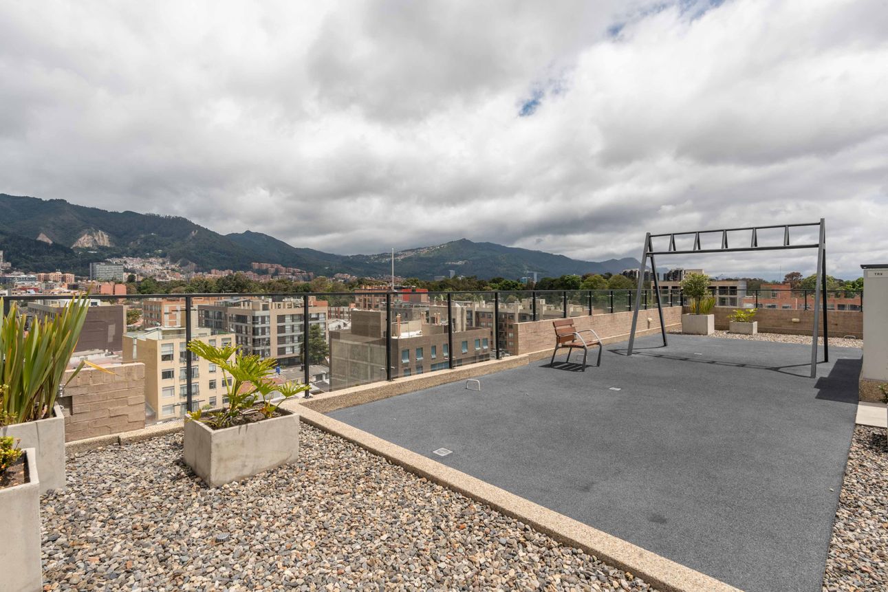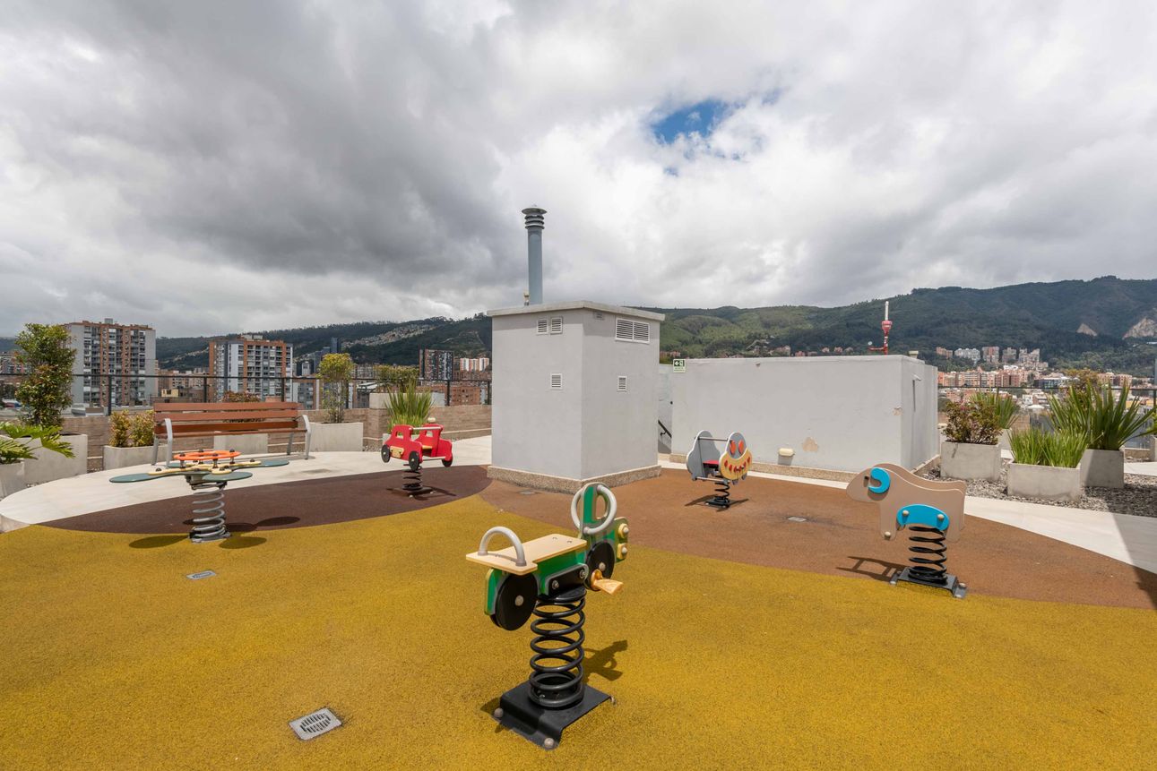El edificio ofrece excelentes amenidades, como ascensor, seguridad las 24 horas del día, zona de ejercicio con TRX, juegos infantiles, terraza comunal y área de BBQ. También cuenta con parqueadero para visitantes.