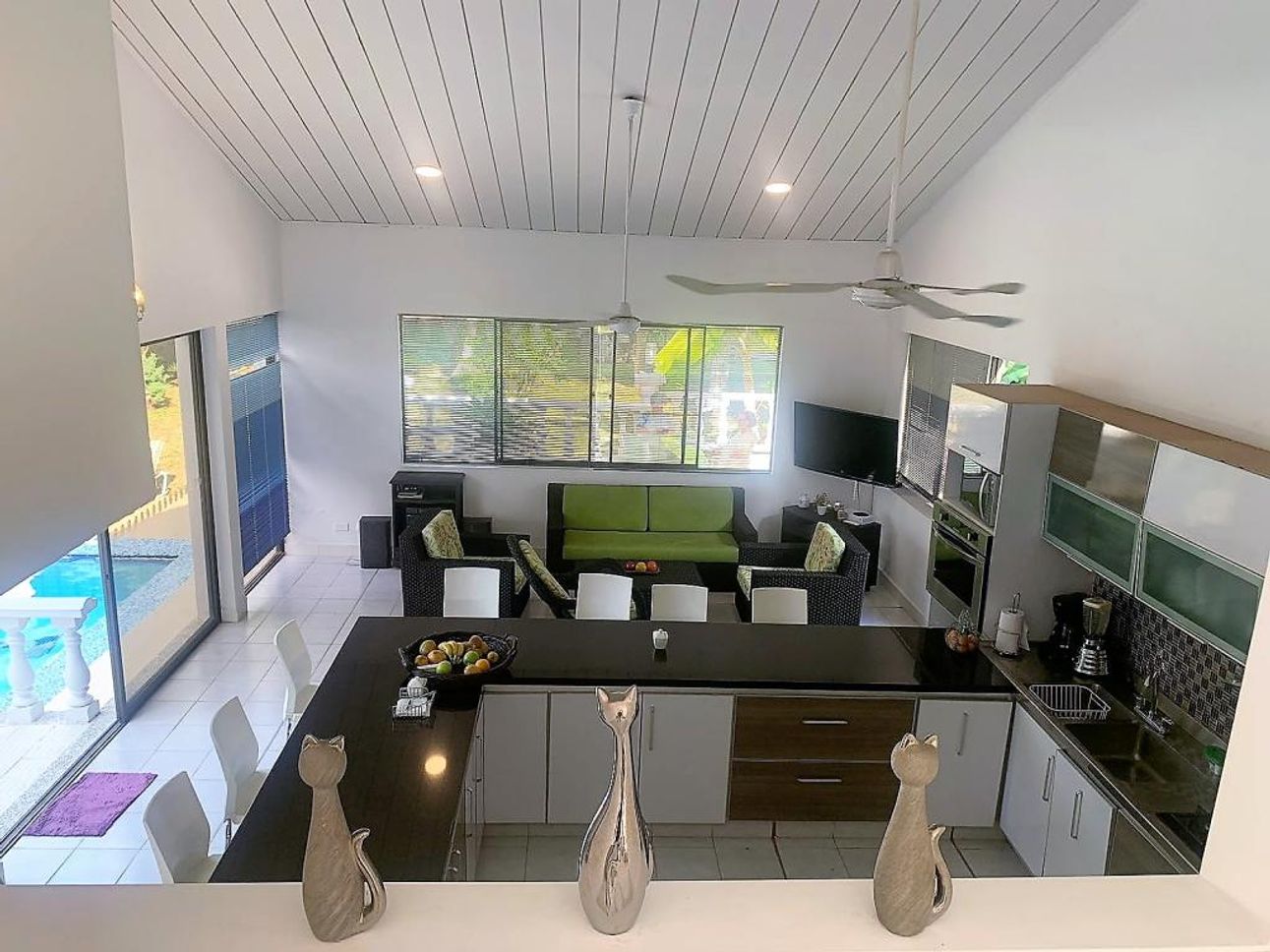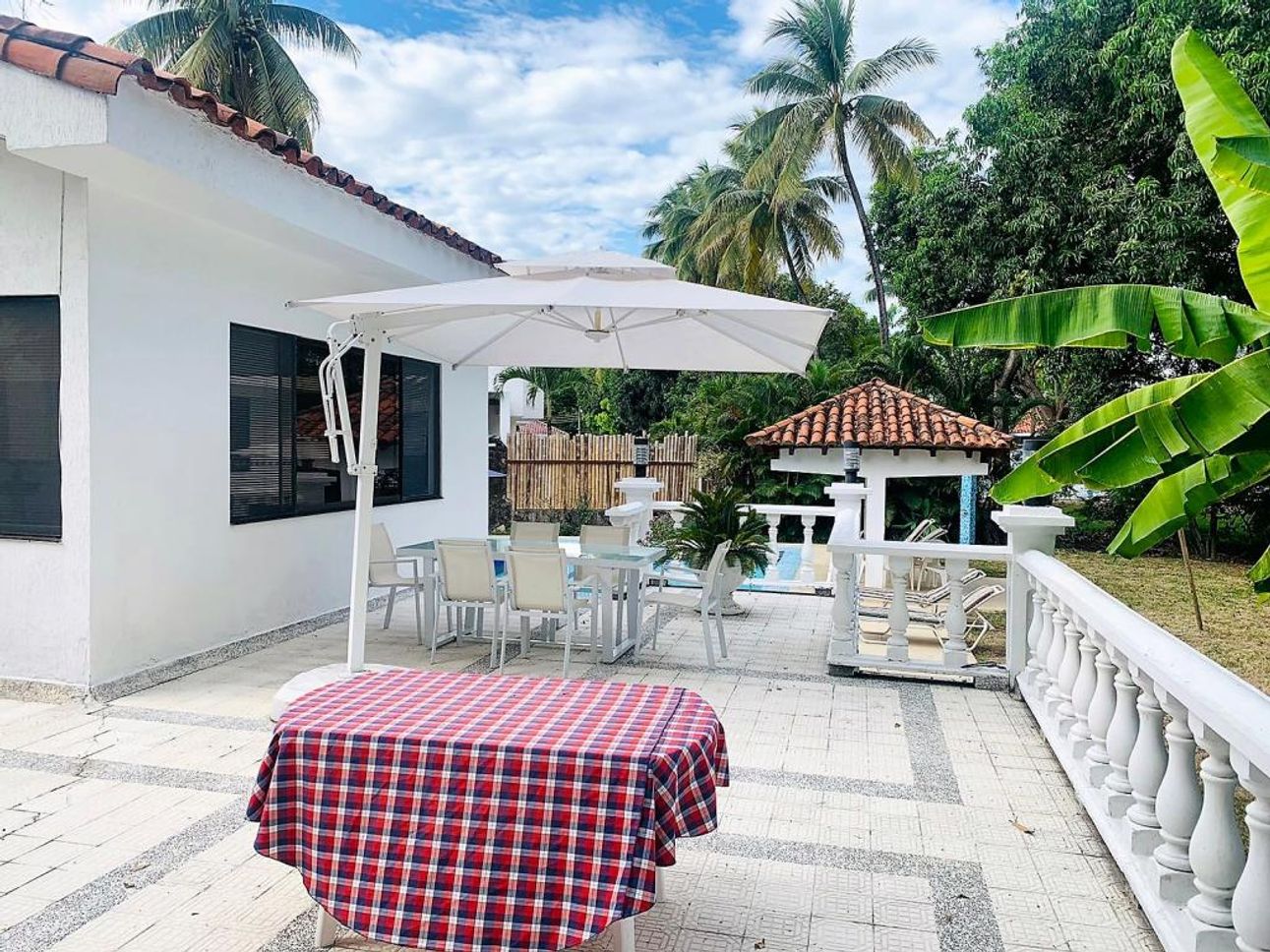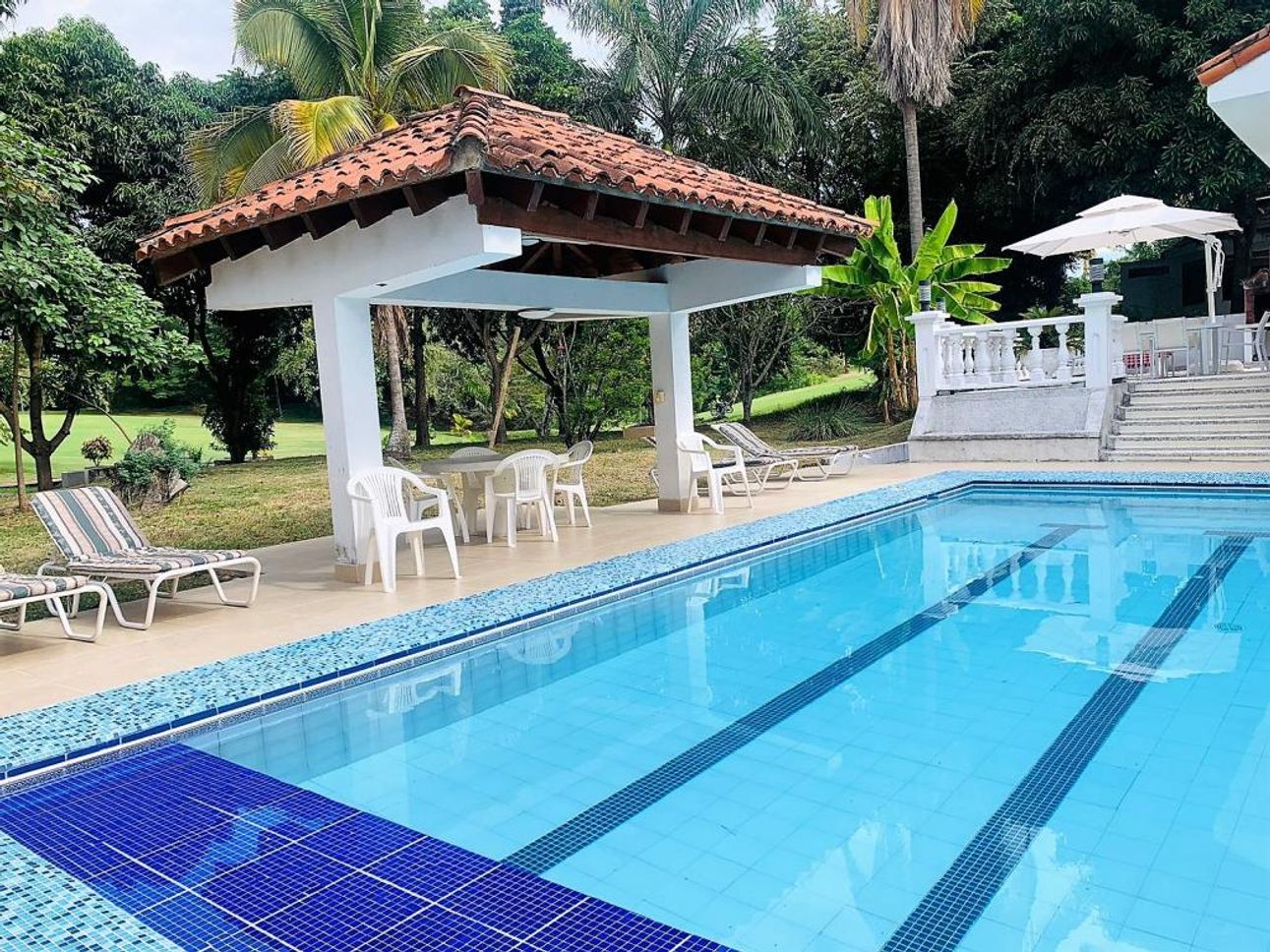 La casa tiene una amplia zona social con pisos en cerámica y una excelente iluminación natural y ventilación, con acceso directo a su linda piscina con terraza, su cocina es abierta y equipada con lo necesario.