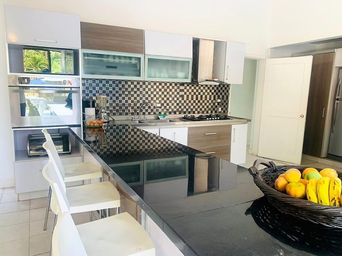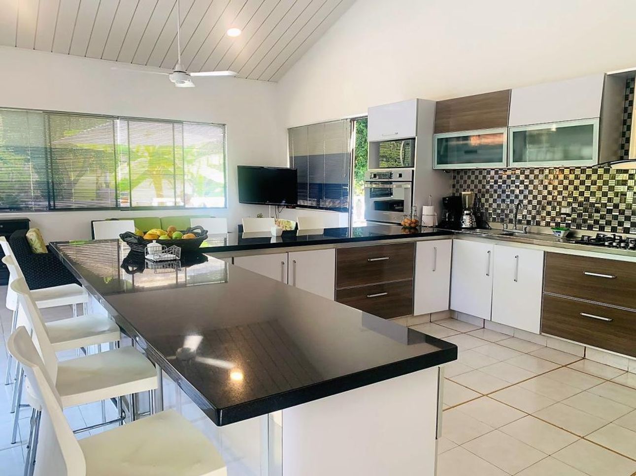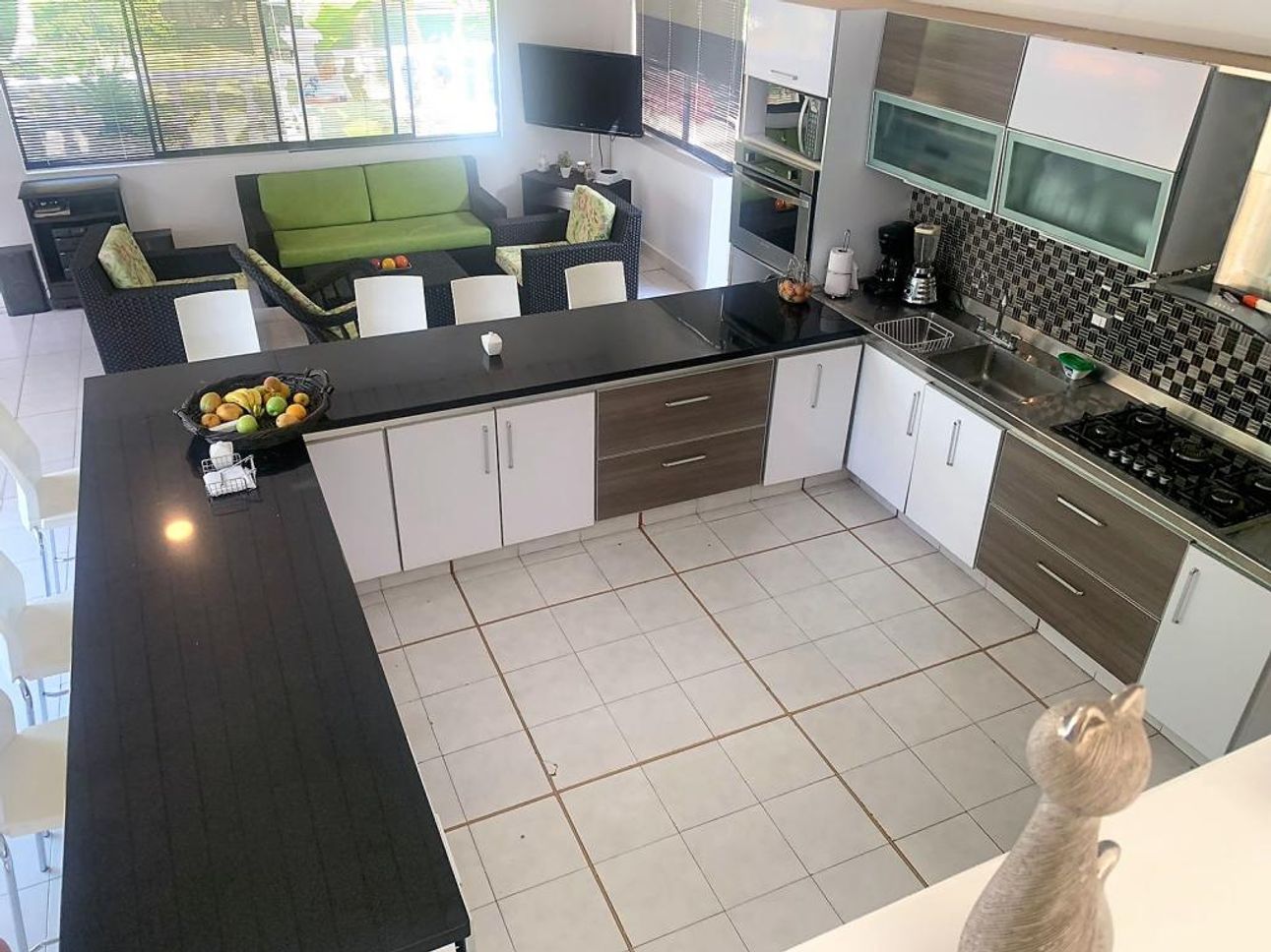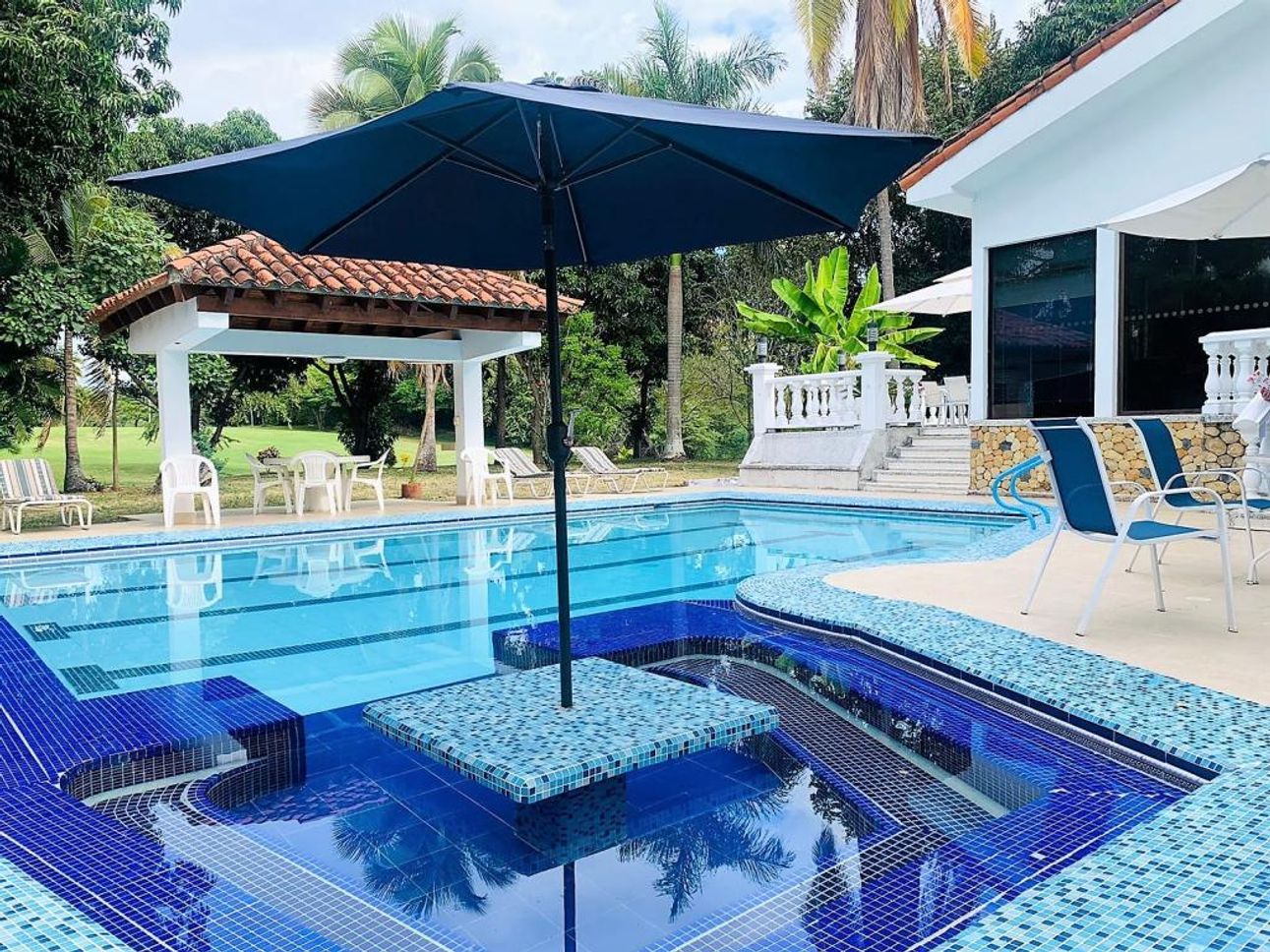 La casa tiene una amplia zona social con pisos en cerámica y una excelente iluminación natural y ventilación, con acceso directo a su linda piscina con terraza, su cocina es abierta y equipada con lo necesario.