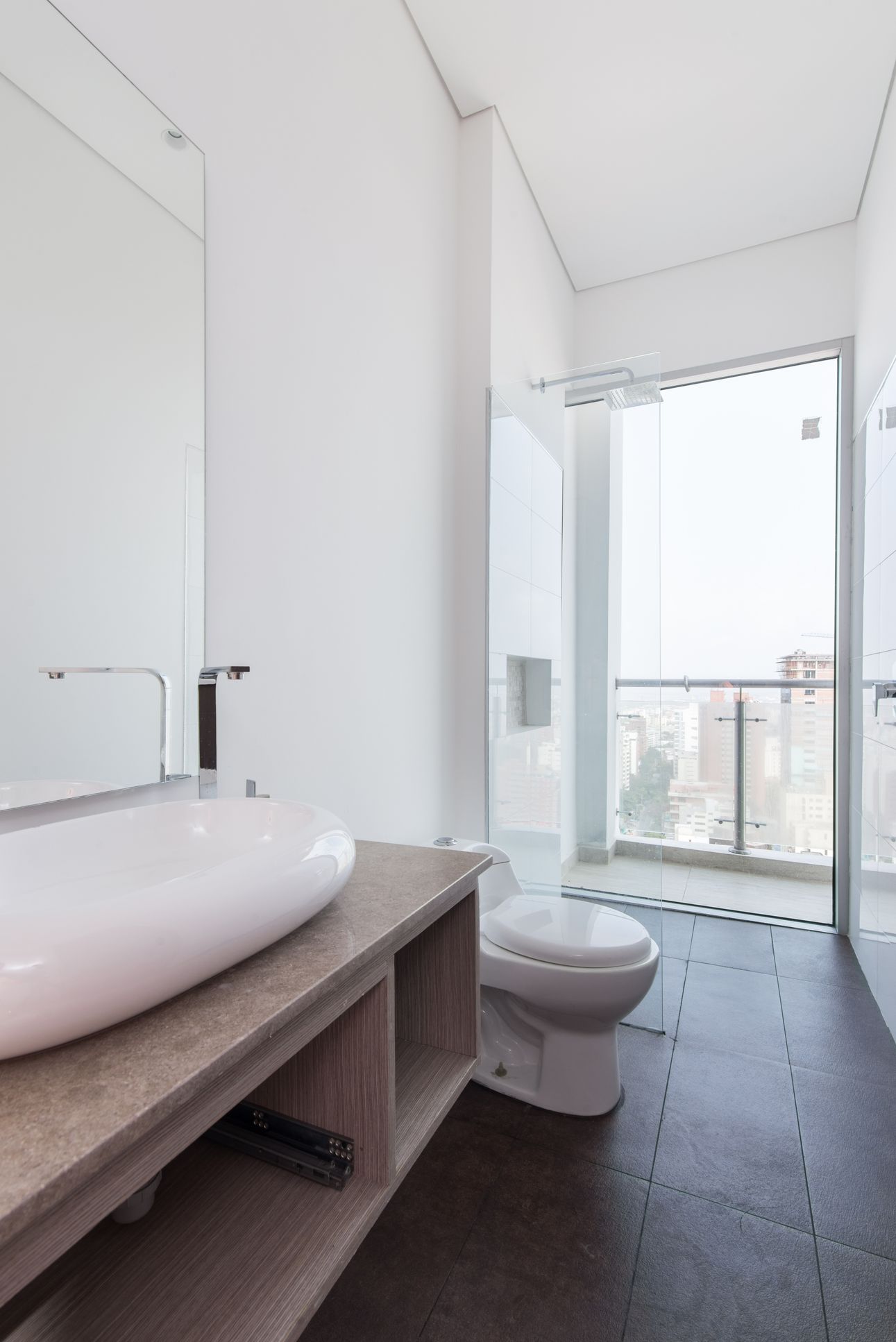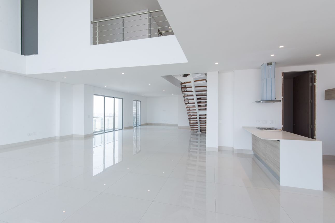 Su ingreso es mediante el área social donde te vas a encontrar con una generosa sala-comedor con altura doble, con excelente entrada de luz natural gracias a sus ventanales desde los cuales también hay acceso a un balcón con vista a la ciudad, cuenta también con una cocina abierta y baño social.