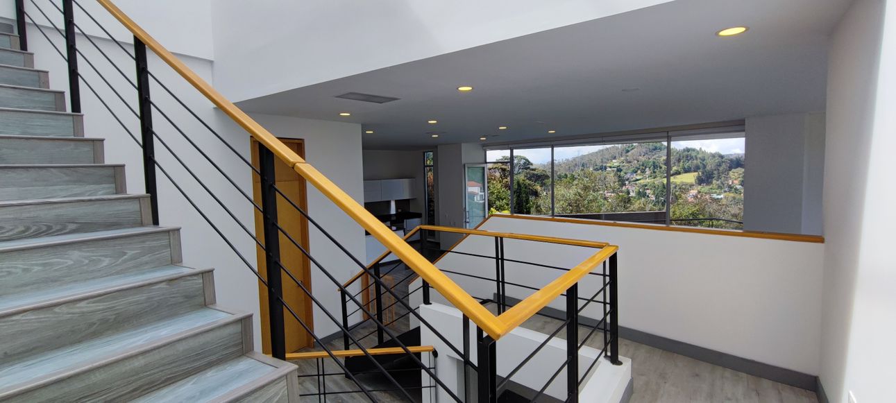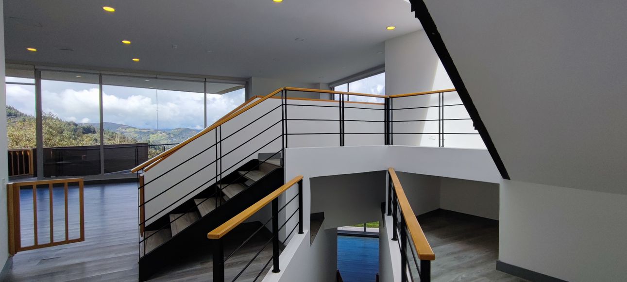 Ofrecemos esta bella casa que sorprende en cada rincón, desafiando la monotonía de los trazos convencionales en el diseño arquitectónico; nos encontramos con esta casa de 370m2, que juega con la geometría creando espacios llenos de dinamismo y efectismo visual, dejando que quien la habite juegue con sus estancias para configurar un sin fin de posibilidades al complementar con la decoración y el amueblamiento. La luz natural y los ángulos protagonizan las escenas y la belleza del paisaje que irrumpe por las ventanas; hacen de esta, la perfecta combinación entre modernidad y diseño. Cuenta además con varias terrazas en ángulo y toda la casa coquetea con la figura triangular y con un minimalismo rebelde. Con 1484 m2, ofrece también un jardín precioso y vistas maravillosas que impactan y relajan; todo escondido detrás de una fachada sobria que no nos da pista de la aventura que viene a continuación.