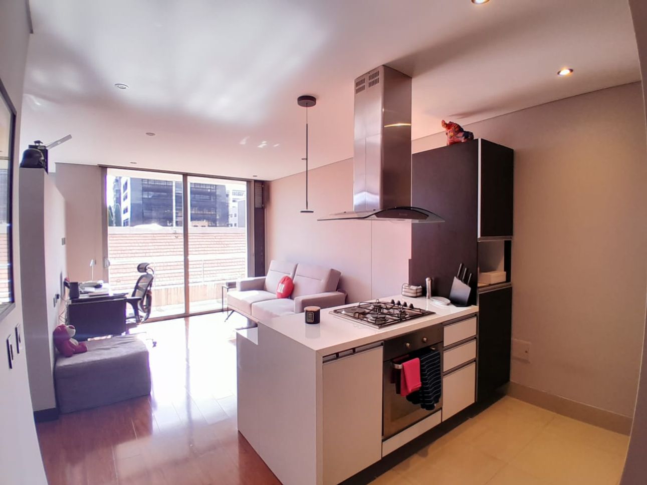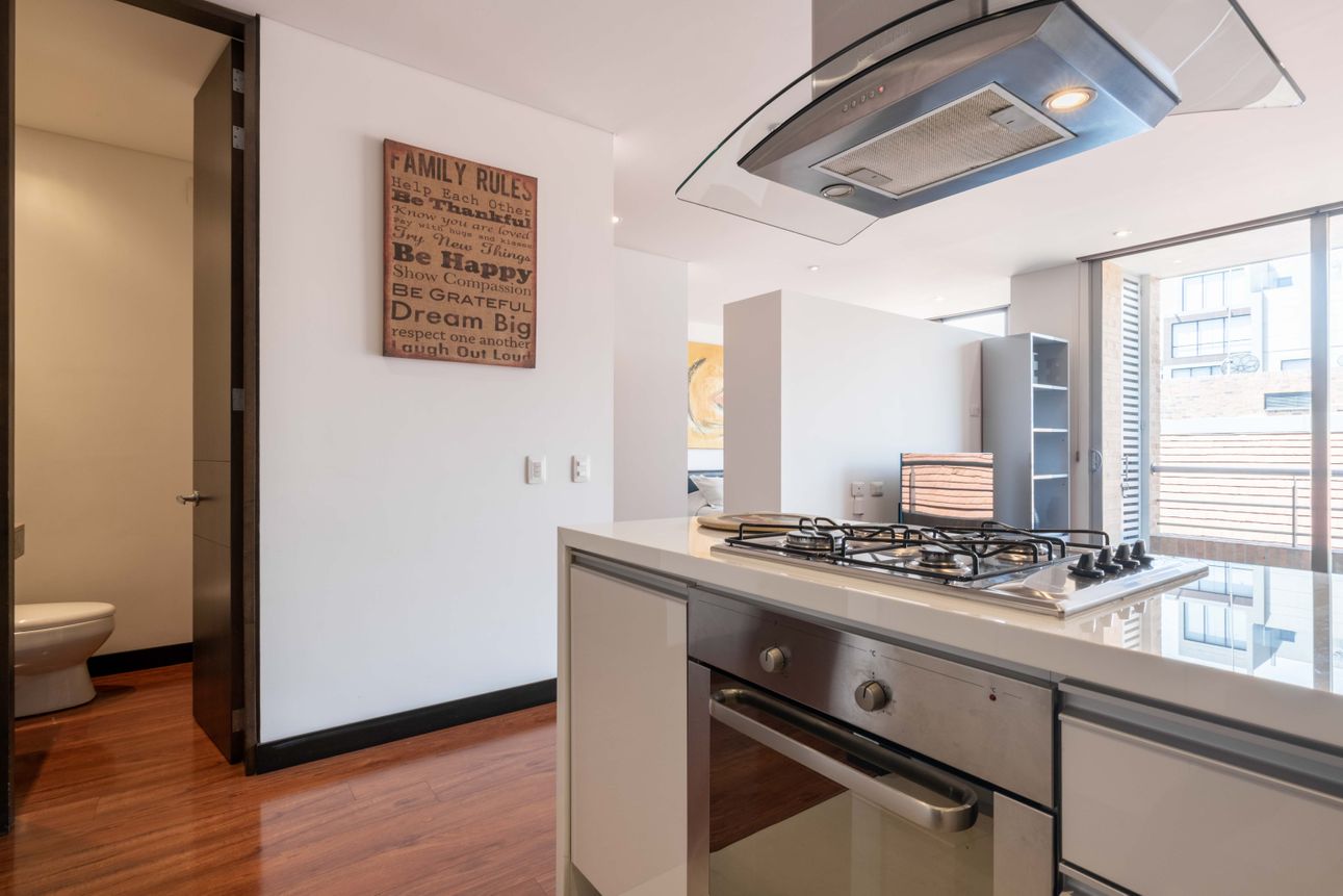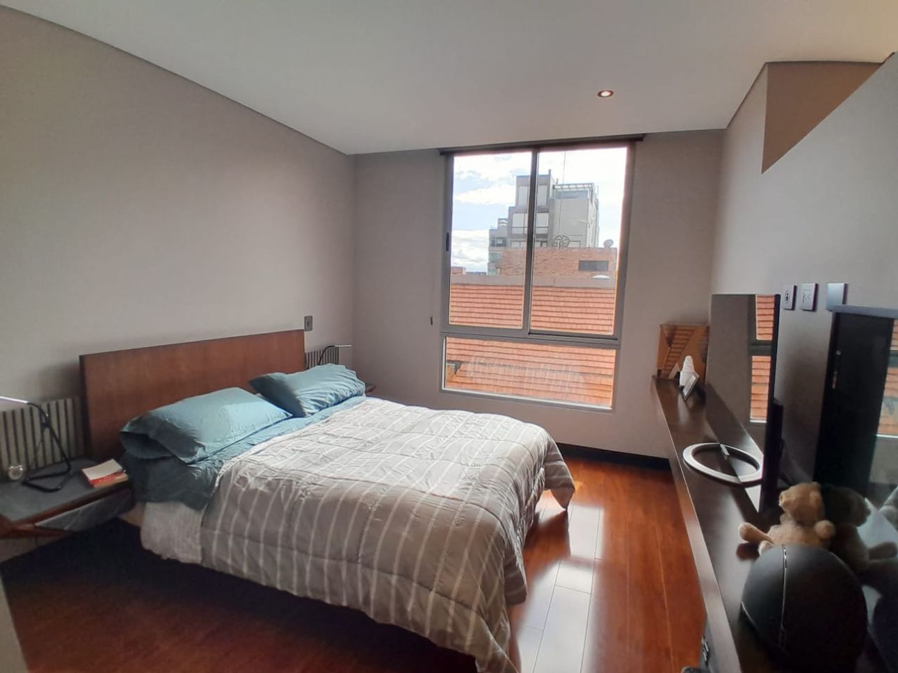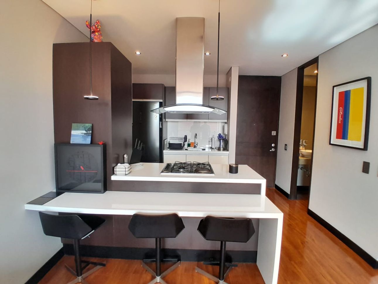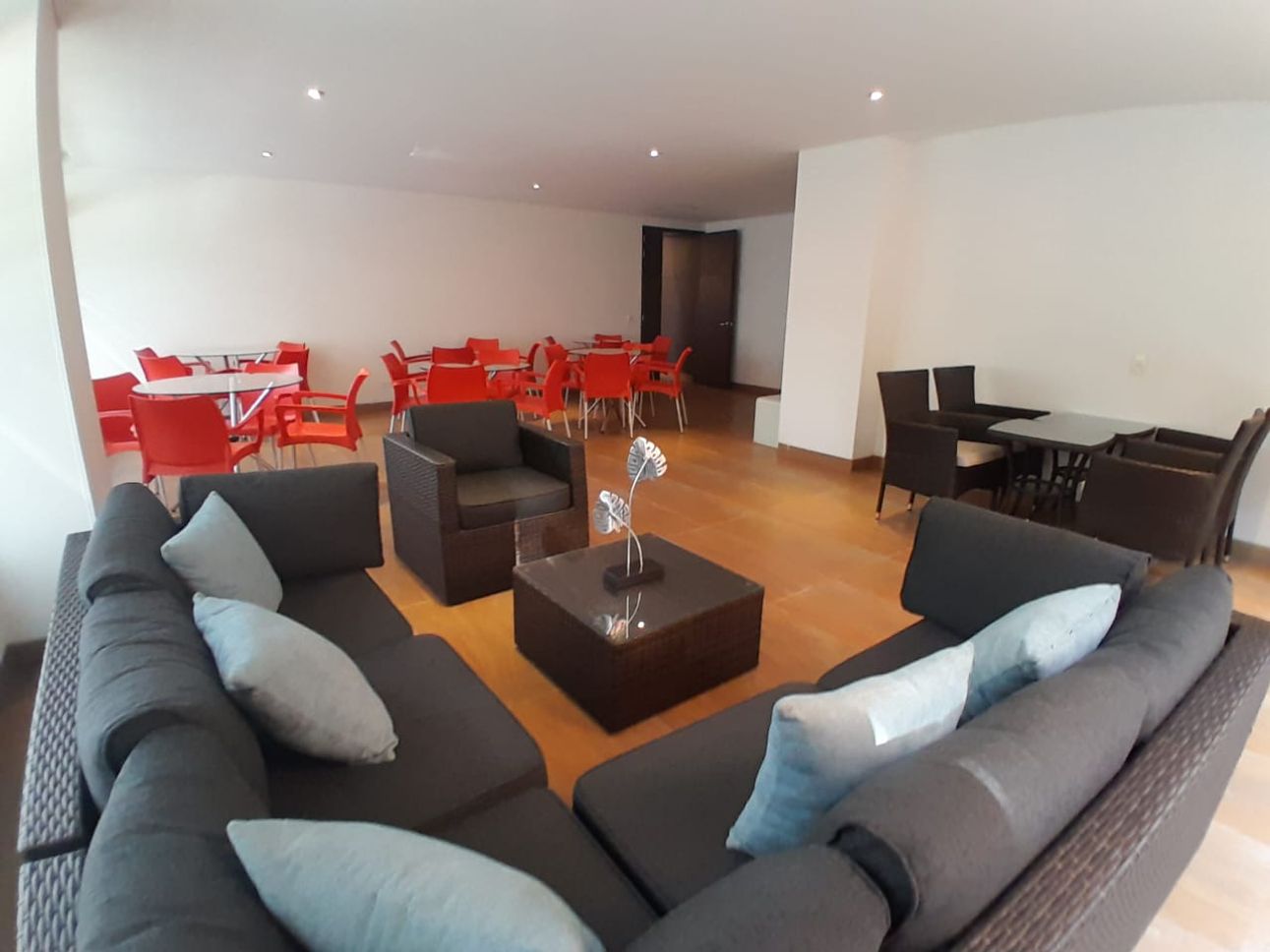 Te ofrecemos en arriendo un apartamento espectacular amoblado con un gusto exquisito y en perfecto estado, ubicado en Chicó Norte, un sector exclusivo, residencial con múltiples vías de acceso, opciones de transporte, parques e iglesias. Cerca de Centros Comerciales, restaurantes, clínicas y hoteles, vista interior, iluminación natural, óptima distribución, zona social amplia con balcón, cocina abierta con barra auxiliar. Habitación con baño privado y vestier, zona de lavandería independiente, baño social y parqueadero cubierto en sótano,
