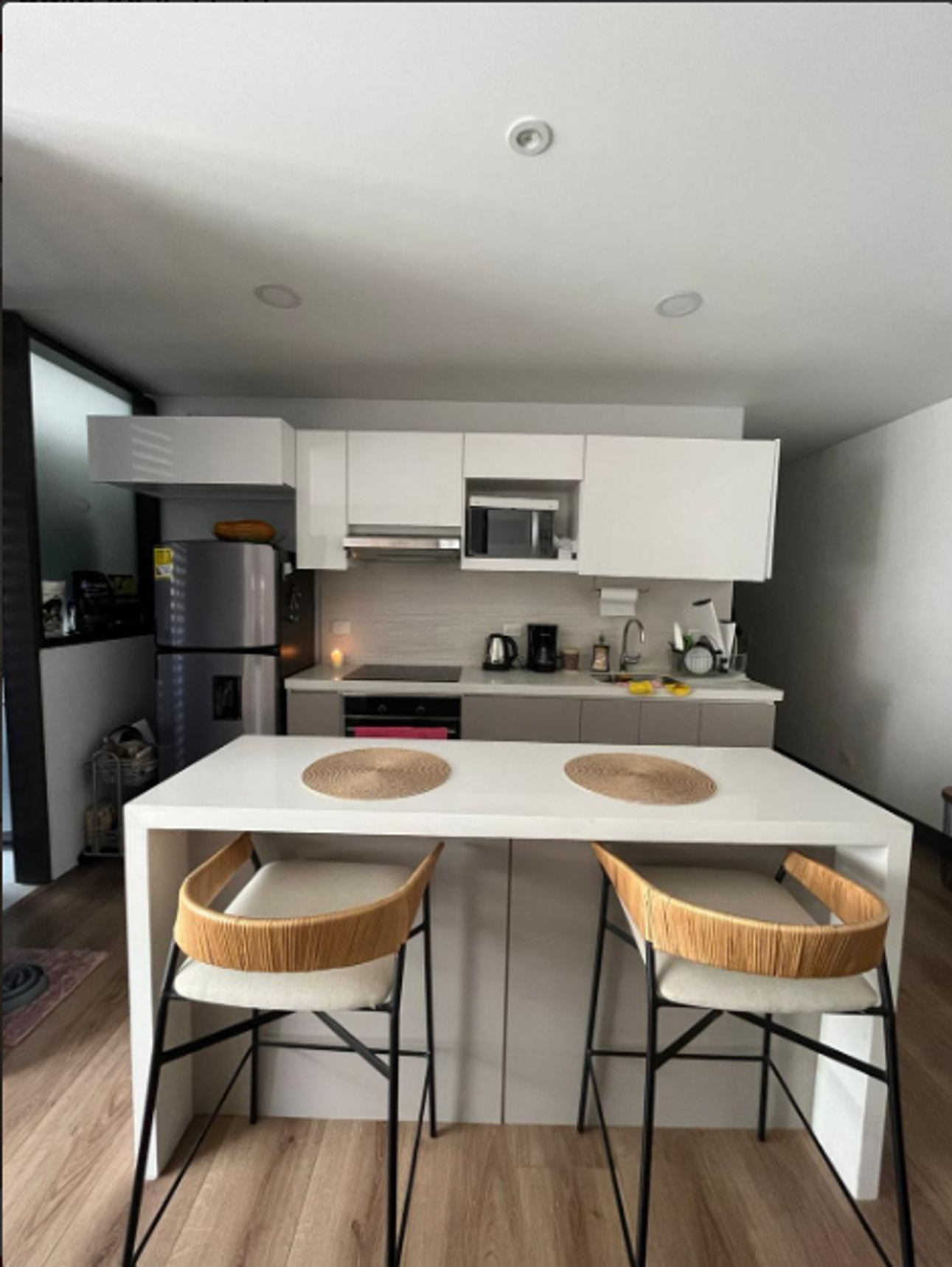 El apartamento cuenta con una acogedora zona social con chimenea a gas, ventaneria piso a techo, cocina de estilo americano con isla y comedor auxiliar, perfecta para los amantes de la gastronomía y para aquellos que disfrutan dejando fluir sus dotes de chef mientras comparten con sus invitados. Además, dispone de un baño social y área de lavandería.