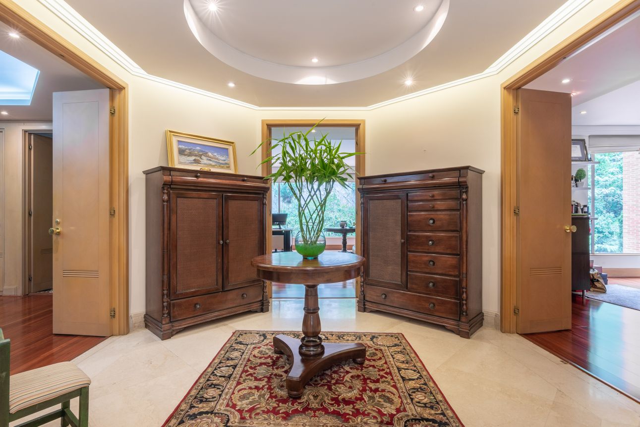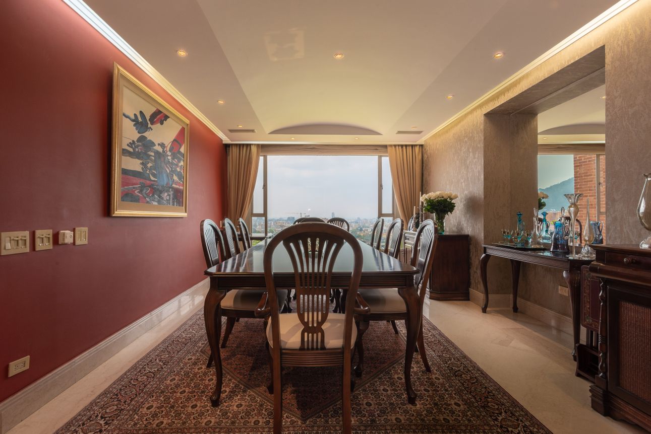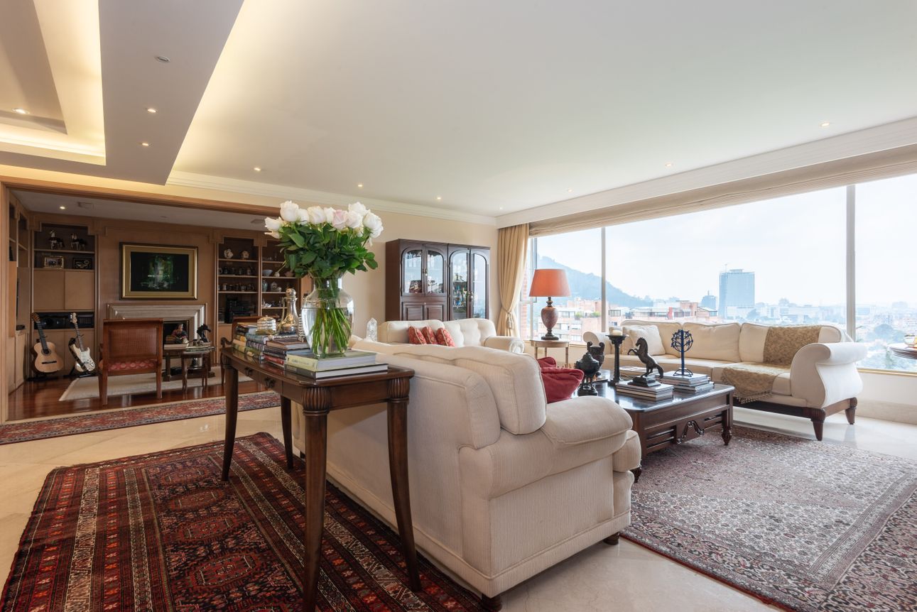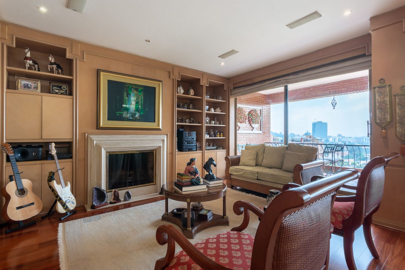 El apartamento, sin amoblar, cuenta con una cocina cerrada de diseño práctico. Incluye también una zona de lavandería e integrados al confort del hogar, un cuarto de servicio y un espacio adicional de almacenamiento. El salón comedor no podría ser más acogedor, con su chimenea de leña, perfecta para esas noches bogotanas. Y por si eso fuera poco, el piso de madera laminada le da un toque sofisticado y hogareño.