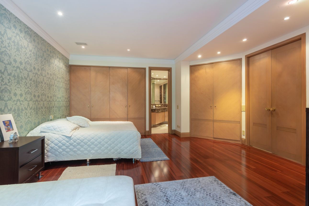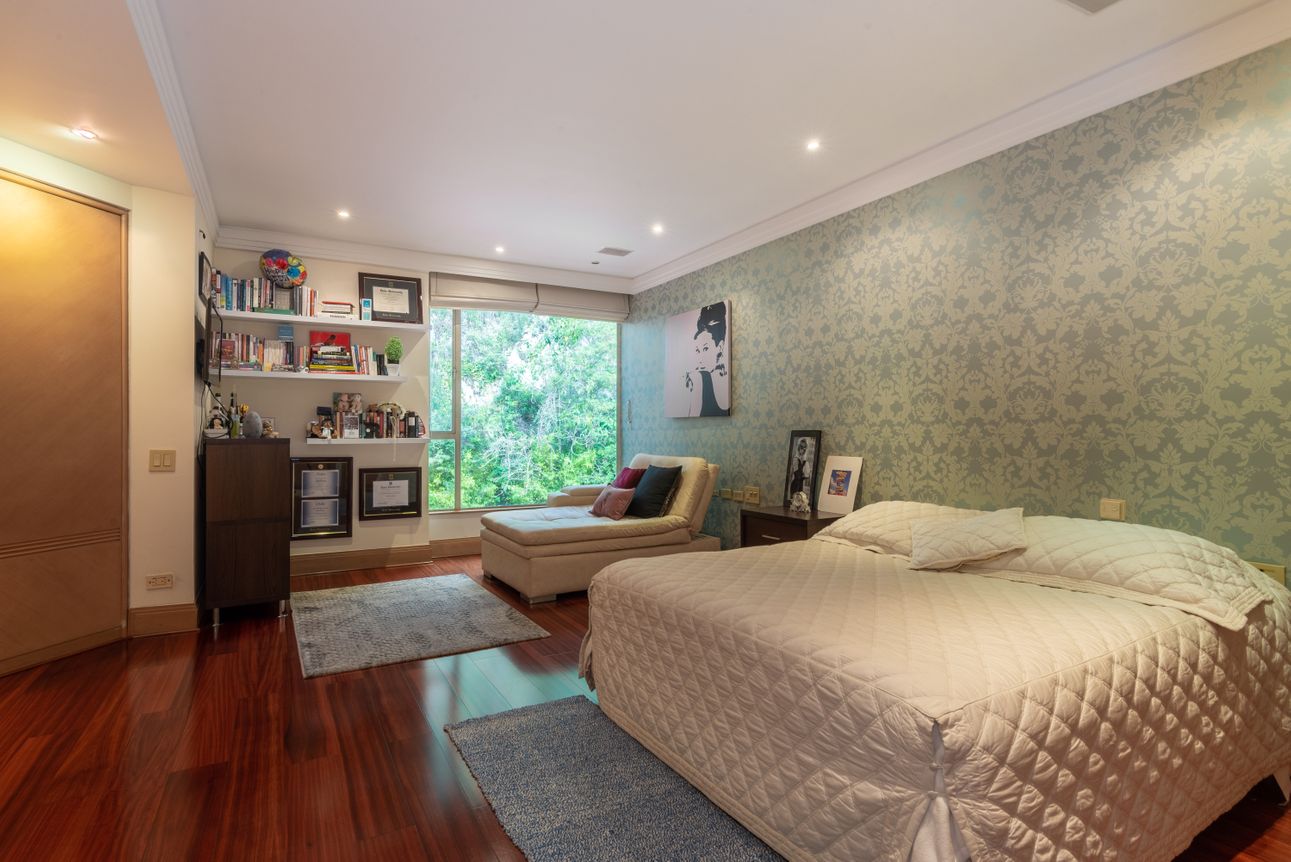 En términos de comodidades, el edificio no se queda atrás. Cuenta con áreas recreativas como un parque infantil y un gimnasio. También ofrece total seguridad con vigilancia las 24 horas, CCTV y un área de espera para guardaespaldas. Este apartamento también ofrece cuatro parqueaderos individuales.