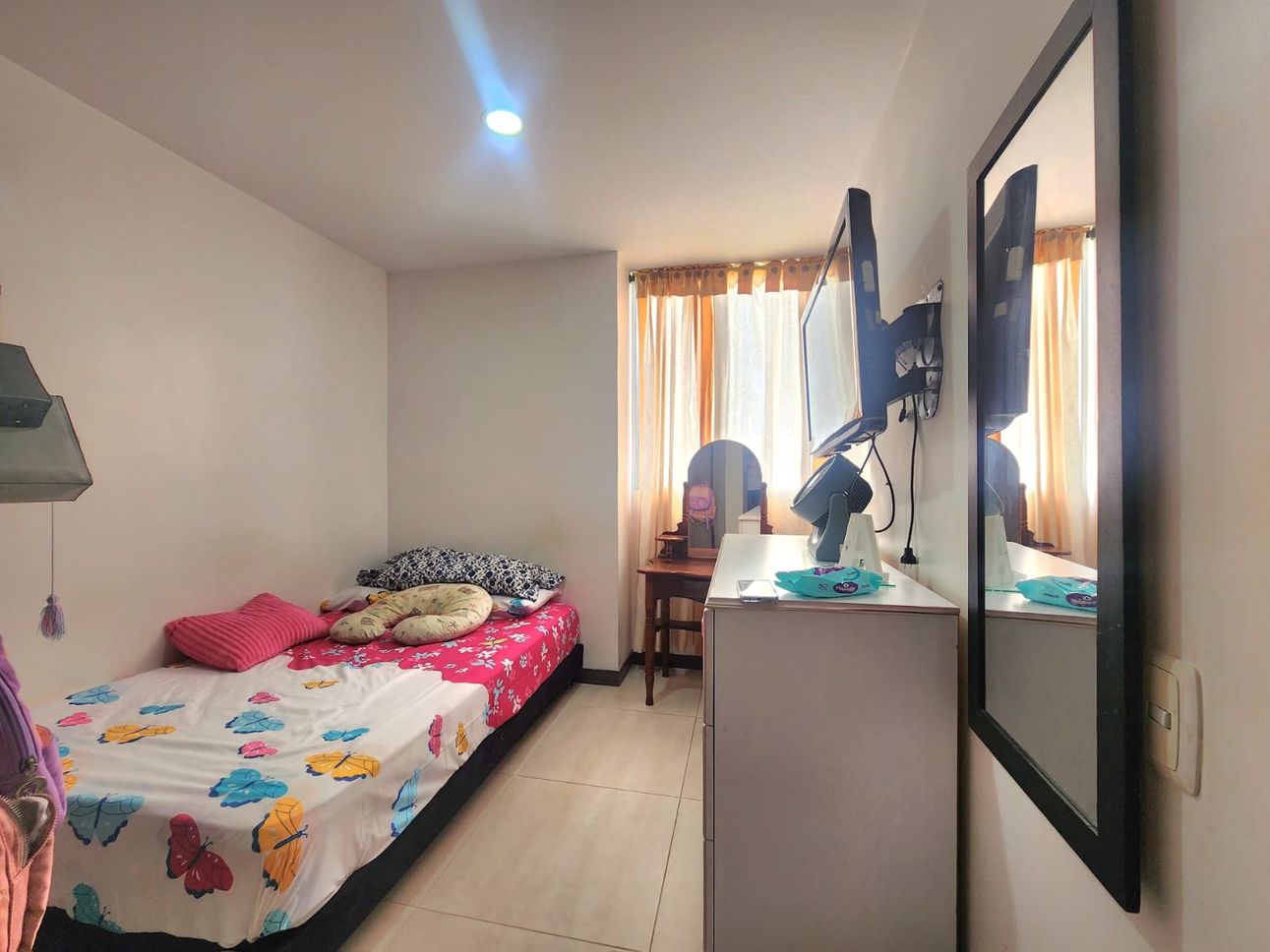Este hermoso apartamento se encuentra localizado en Sabaneta, uno de los municipios más atractivos del departamento de Antioquia. Con una area total de 81.4 M2, este inmueble ofrece un ambiente amplio y cómodo perfecto para vivir en familia o compartir con amigos. Su área privada es de 81.4 M2, lo que permite una distribución eficiente del espacio y ofrece una sensación de amplitud en cada una de sus habitaciones. Cuenta con 2 baños y 1 garaje y 2 balcones brindando comodidad y facilidad en tu día a día. Si tienes una mascota, no tienes que preocuparte, ya que este apartamento admite la presencia de animales de compañía. Además, podrás disfrutar de las vistas panorámicas desde su balcón, ideal para relajarte. En su interior, encontrarás una barra estilo americano, perfecta para preparar tus recetas, clósets para organizar tus pertenencias y una cocina integral . Otras comodidades internas incluyen un depósito para almacenar tus pertenencias, suelos de cerámica para un limpieza, y una zona de lavandería para mayor conveniencia. La cocina tipo americano y la despensa son ideales para aquellos que disfrutan cocinando y necesitan un espacio de almacenamiento adicional. Además, este apartamento cuenta zona humedad, perfectos para relajar el cuerpo y la mente después de un largo día de trabajo. ¡Todo lo que necesitas está aquí mismo! En su entorno externo, encontrarás un acceso pavimentado y un área social para disfrutar de reuniones al aire libre con tus vecinos. También tiene ascensor para facilitar el transporte de compras o muebles. Su ubicación privilegiada te permite estar a pocos minutos de centros comerciales, colegios y universidades de renombre, además de contar con un circuito cerrado de TV y una portería/recepción para tu seguridad y tranquilidad. El apartamento se encuentra en una urbanización cerrada con vigilancia las 24 horas, ofreciendo ambiente seguro para ti y tu familia. . ¿Estás en busca de un lugar tranquilo y cómodo para vivir? ¡Este es tu nuevo hogar! Contáctanos para más información y agenda una visita hoy mismo.