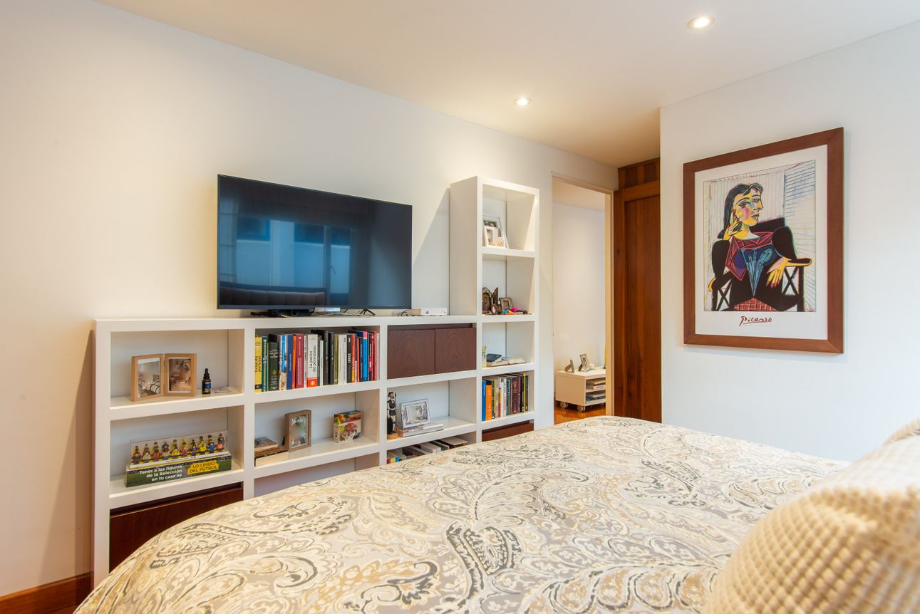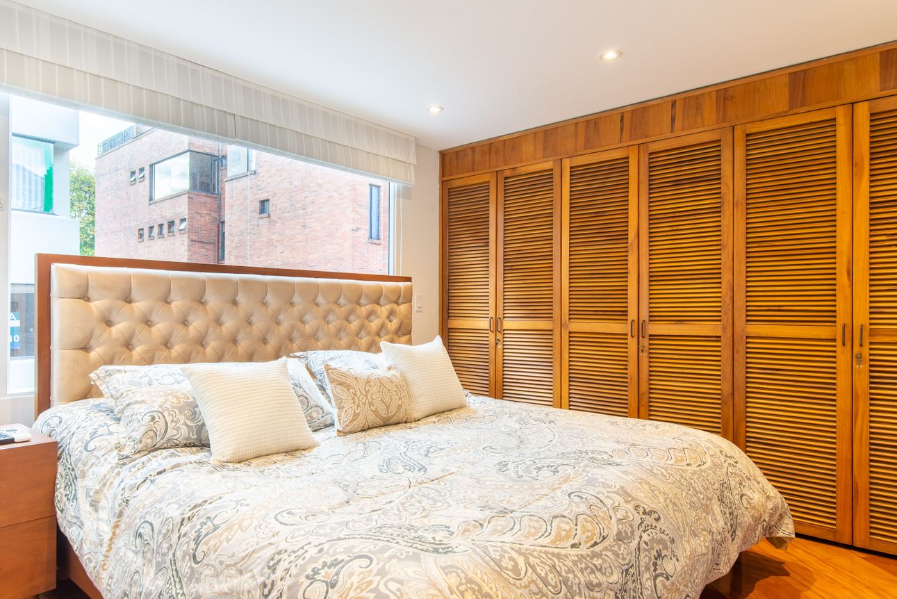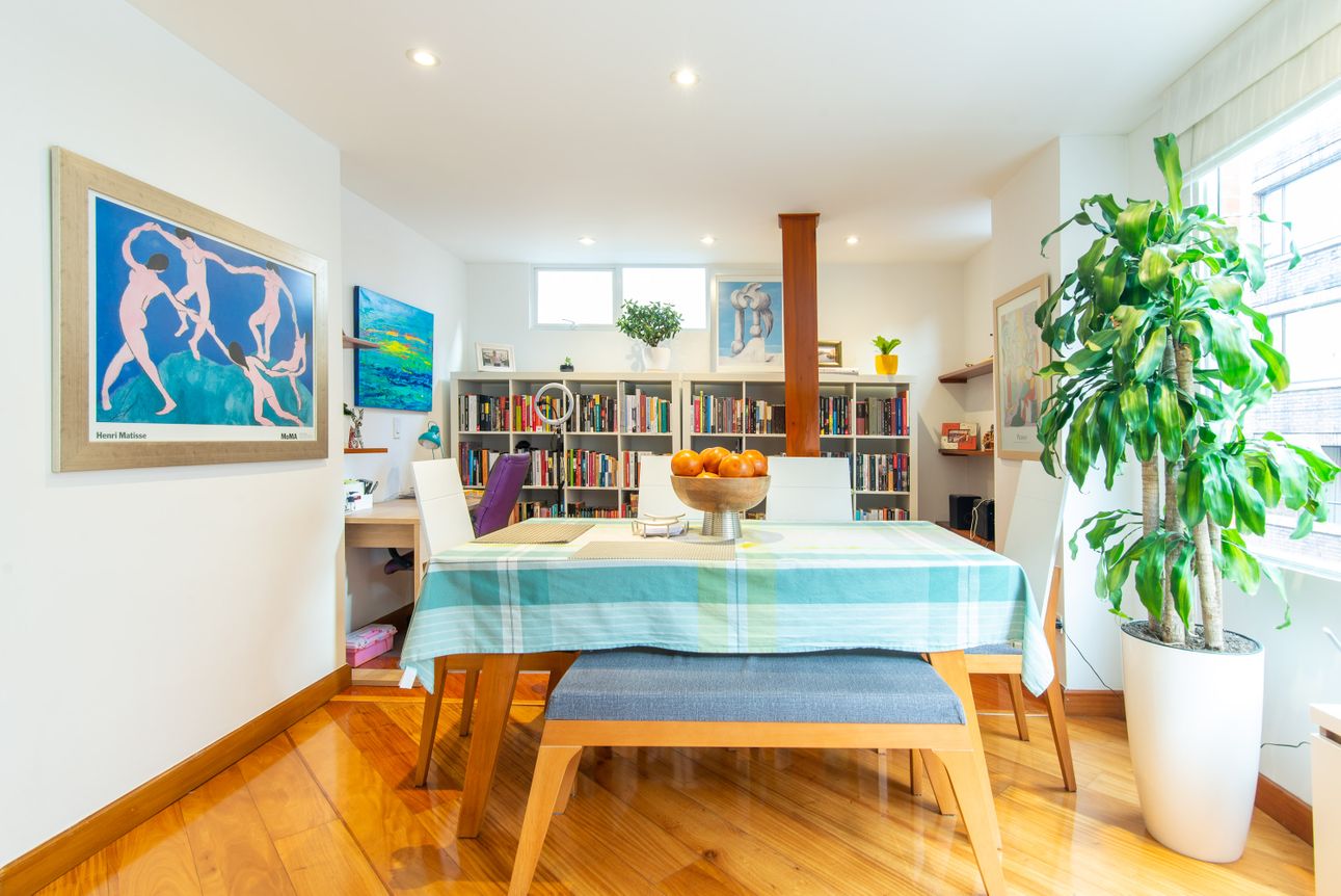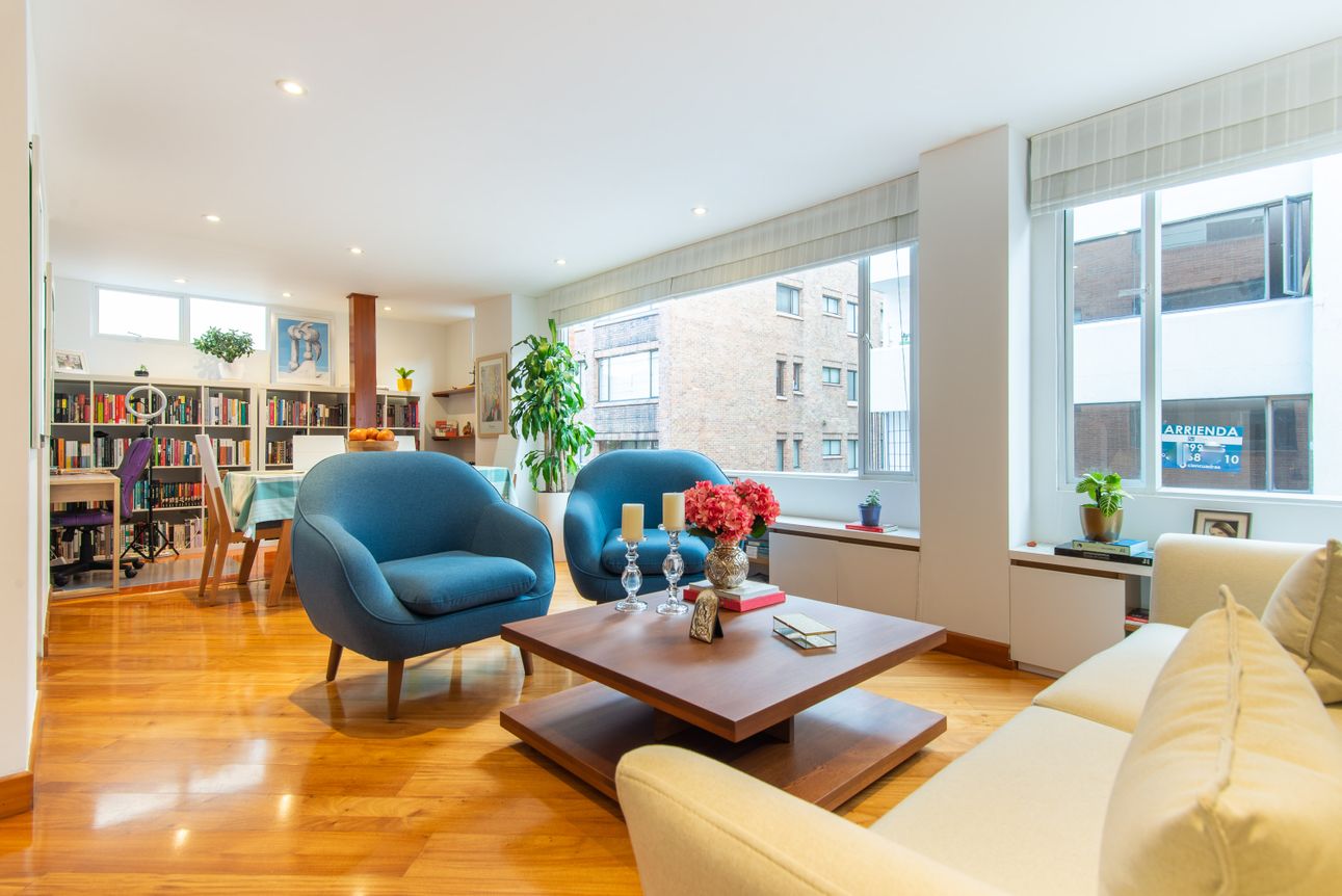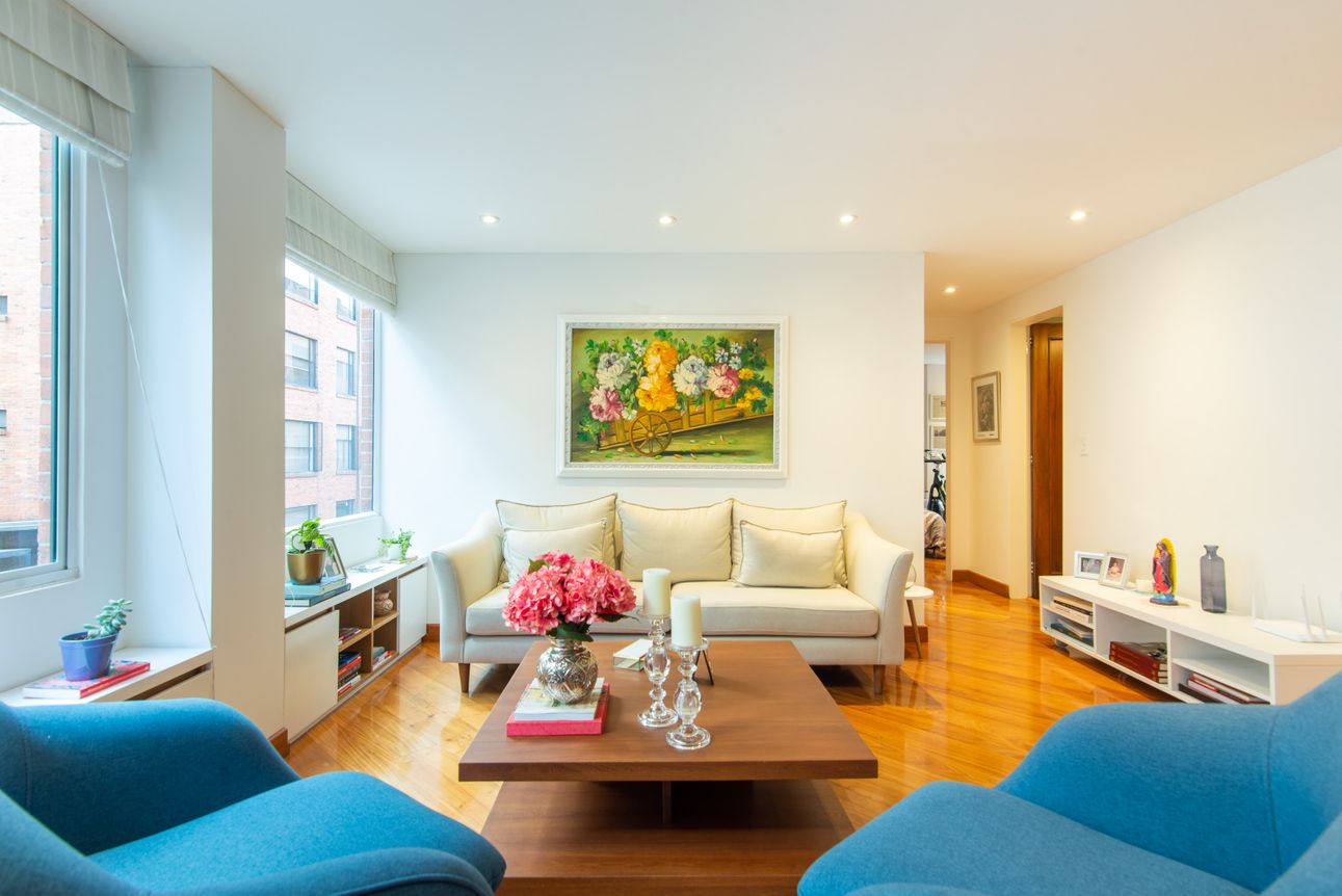 Ofrecemos en venta o arriendo este hermoso apartamento de 2 habitaciones y dos baños, ubicado en un edificio clásico, con ascensor, en el Chicó. Cuenta con una distribución amplia que incluye una sala-comedor, cocina cerrada y espacios para almacenamiento.