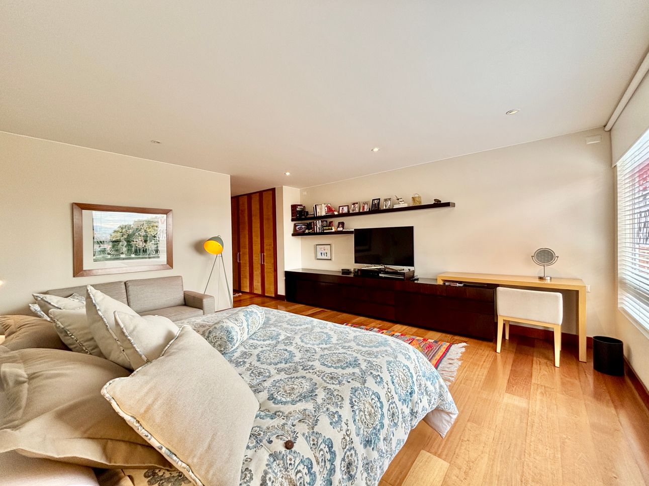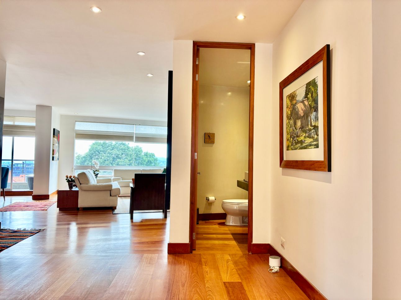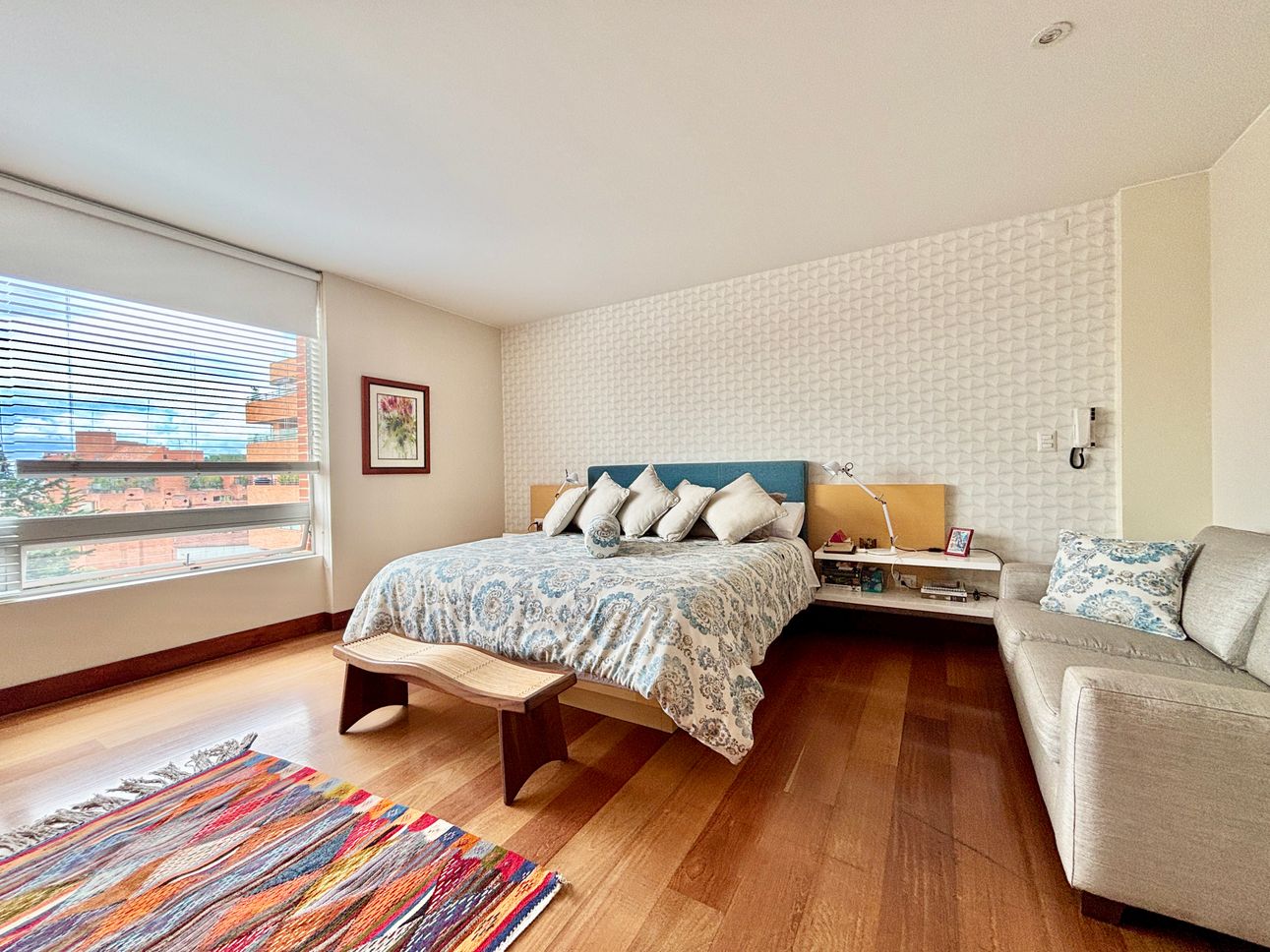 Amplitud, iluminación, distribución y excelentes acabados definen a este destacado inmueble ubicado en Rosales en la zona de la Embajade de Rusia. La imponente zona social tiene vista a la ciudad, chimenea y balcón. El comedor independiente con balcón, se integra con una cocina impecable de diseño moderno. Zona de lavandería muy amplia con baño de servicio, baño social. Zona de alcobas con estar de TV, alcoba principal muy amplia con vestier y gran baño. Segunda alcoba con baño. Magnífica ubicación, frente a parque a 3 cuadras de la Kr7a. Edificio de  16 apartamentos,  5 parqueaderos de visitantes, salón comunal, gimnasio, salón de juegos para niños y parque. 3 garajes independientes y depósito. Qué esperas para conocerlo? agenda tu cita ahora! AMC++