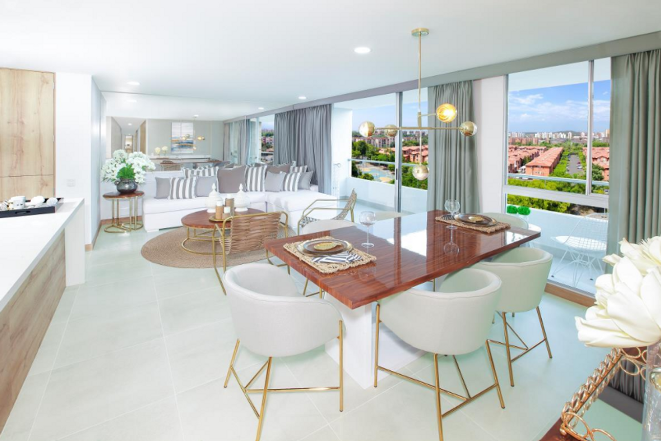 Ideal para aquellos en busca de comodidad, amplias áreas con acabados contemporáneos y un ambiente seguro y conveniente por la cercanía a clínicas, centros comerciales, comercio en general entre otros. Los acabados de calidad y excepcionales zonas comunes hacen de este condominio un encantador sitio para vivir. El apto con un área de 127 mts2 dispone de amplia sala comedor, cocina y zona de ropas, un baño social, estudio, depósito interno en el apto, balcón tipo terraza, tres habitaciones con baño y la principal con vestier y dos garajes en sótano, en sus zonas comunes encontrará un área para reuniones al aire libre tipo BBQ, un salón de juegos y un espacio de juegos infantiles. Además, sauna, turco, sala de cine, gimnasio, salón social comunal con cocineta y baños, dos salas de negocios para actividades profesionales, piscinas para adultos y niños, parque de mascotas y senderos peatonales y seguridad 24/7. Entregas a partir de octubre 2025.