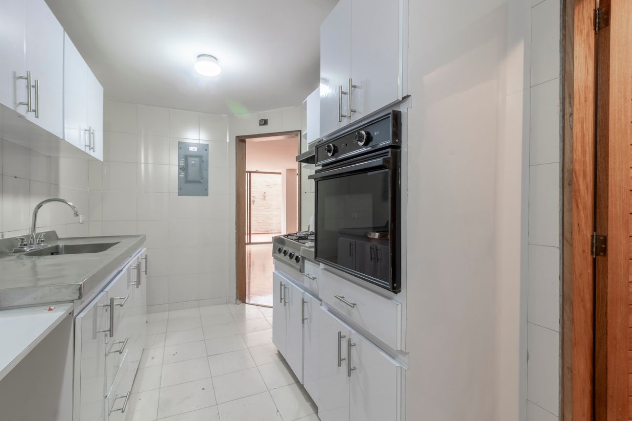 La cocina es cerrada y cuenta con muy buenos espacios.
