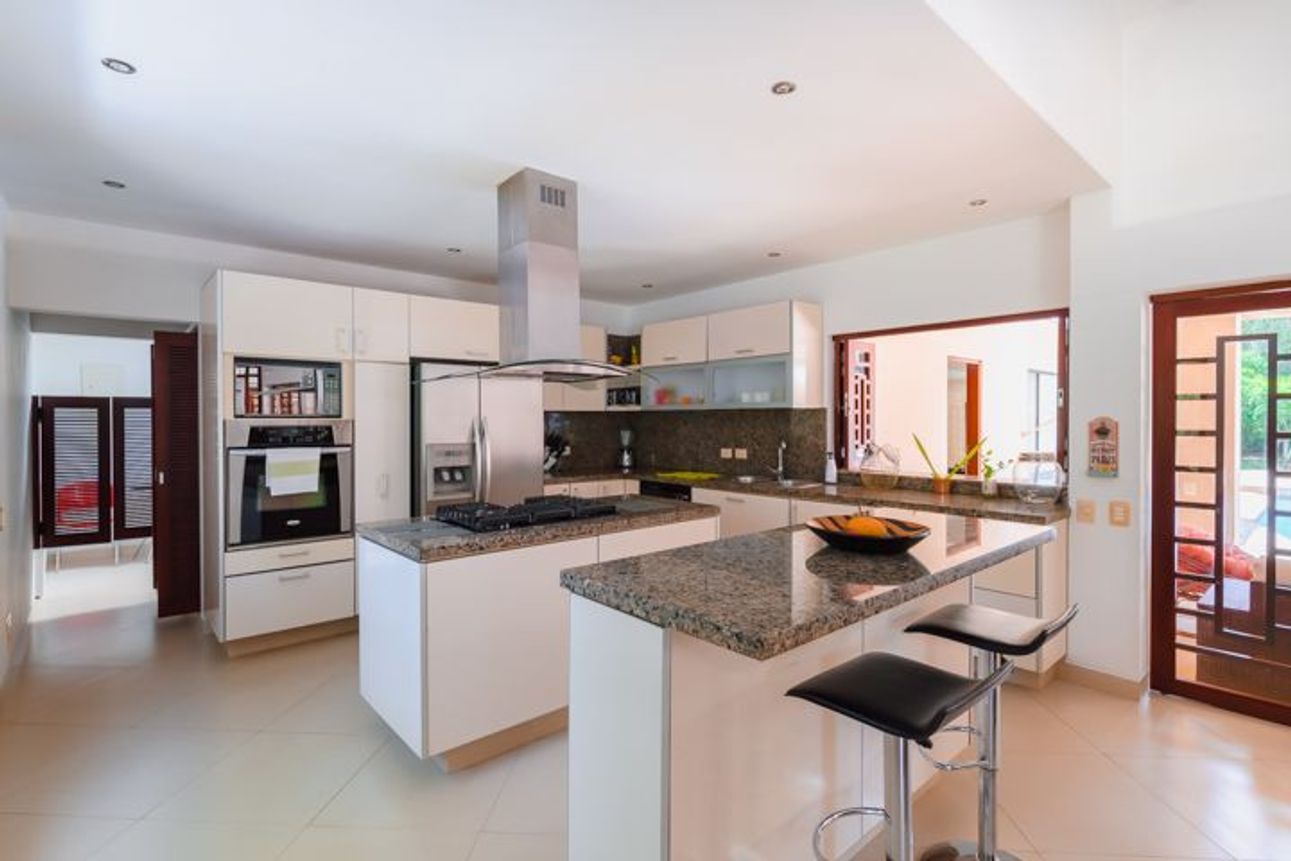 Además, la casa ofrece baño de visitas, cuatro garajes cubiertos, jacuzzi, zona BBQ techada con comedor en mampostería y piscina privada con playa.