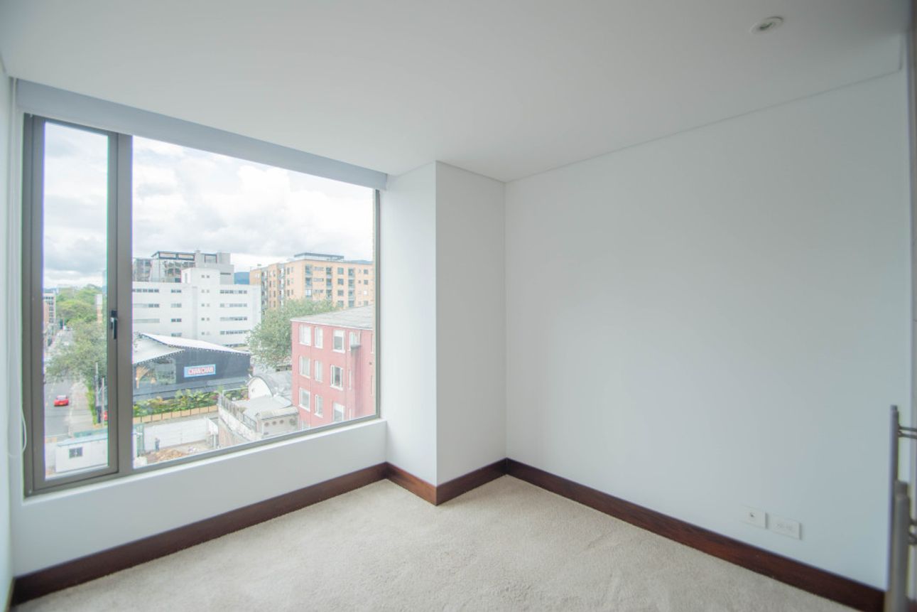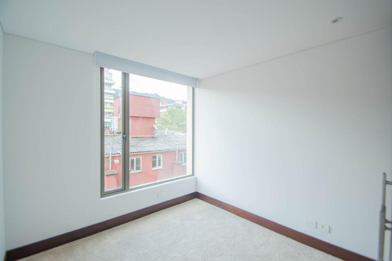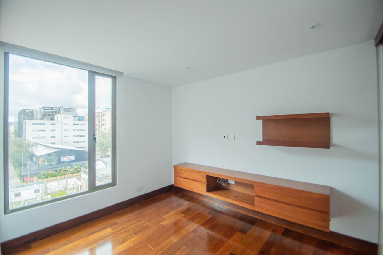 Ubicado en sector residencial (Chico), Cuenta con cómodos y amplios espacios, iluminación natural, alcoba con baño privado, cocina abierta, estudio y sala comedor con pisos de madera maciza y balcón amplio. Edificio con gimnasio, lobby, salón de juegos y reuniones, parqueo de visitantes. Cercano a Parques: Parque de la 93, El Virrey, Museo del Chico, Centros Comerciales: Andino y Retiro, Almacenes: D1, Metro, Éxito, Farmatodo, Pepe Ganga, y Restaurantes de la zona del Parque de la 93,Zona T y Zona financiera Cll 100.