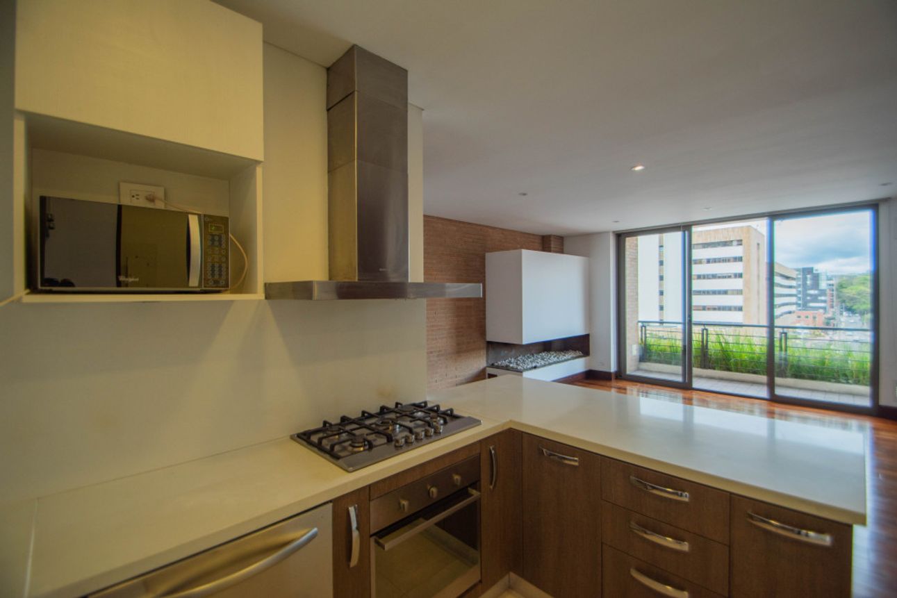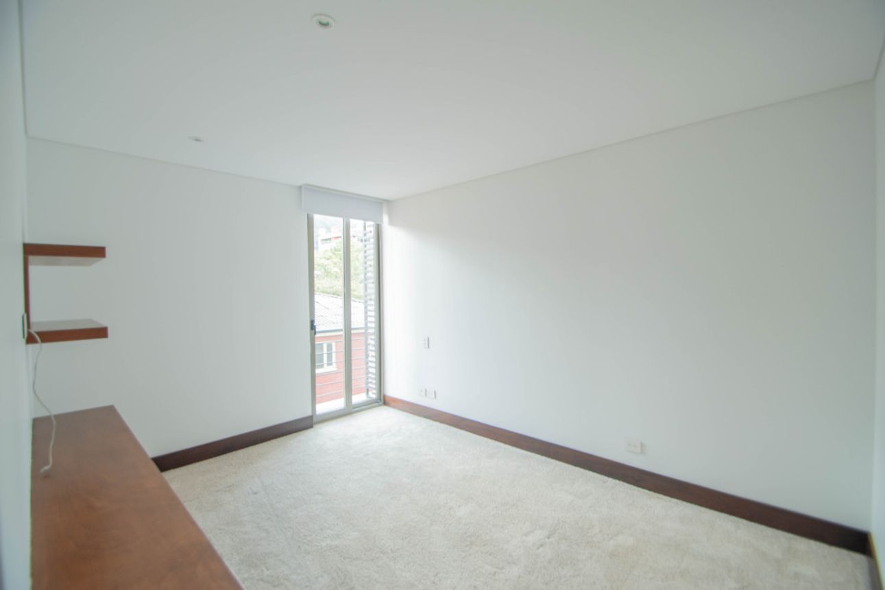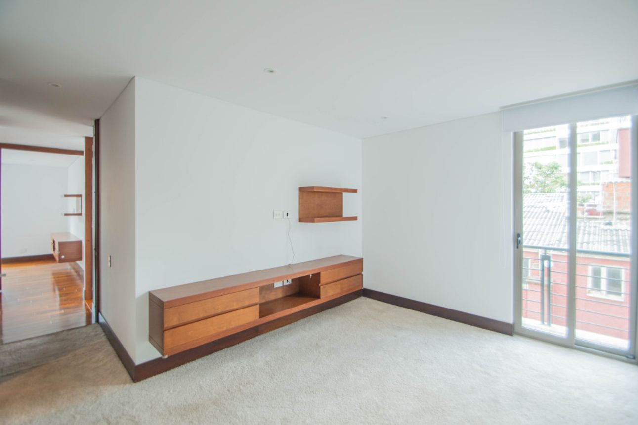 Ubicado en sector residencial (Chico), Cuenta con cómodos y amplios espacios, iluminación natural, alcoba con baño privado, cocina abierta, estudio y sala comedor con pisos de madera maciza y balcón amplio. Edificio con gimnasio, lobby, salón de juegos y reuniones, parqueo de visitantes. Cercano a Parques: Parque de la 93, El Virrey, Museo del Chico, Centros Comerciales: Andino y Retiro, Almacenes: D1, Metro, Éxito, Farmatodo, Pepe Ganga, y Restaurantes de la zona del Parque de la 93,Zona T y Zona financiera Cll 100.