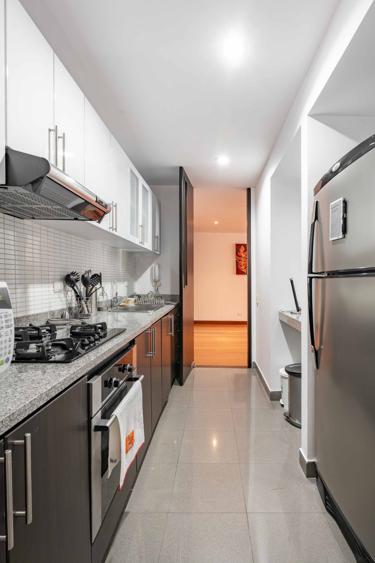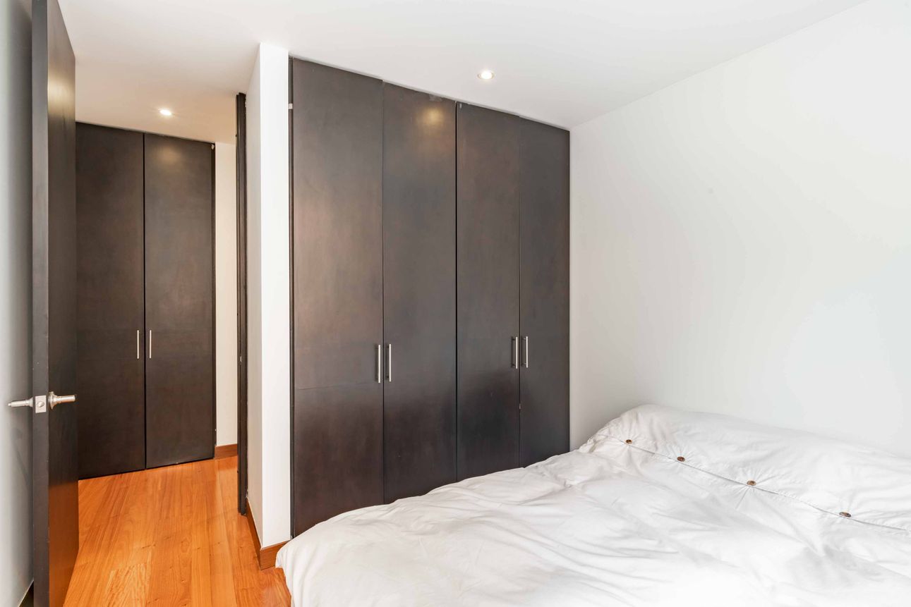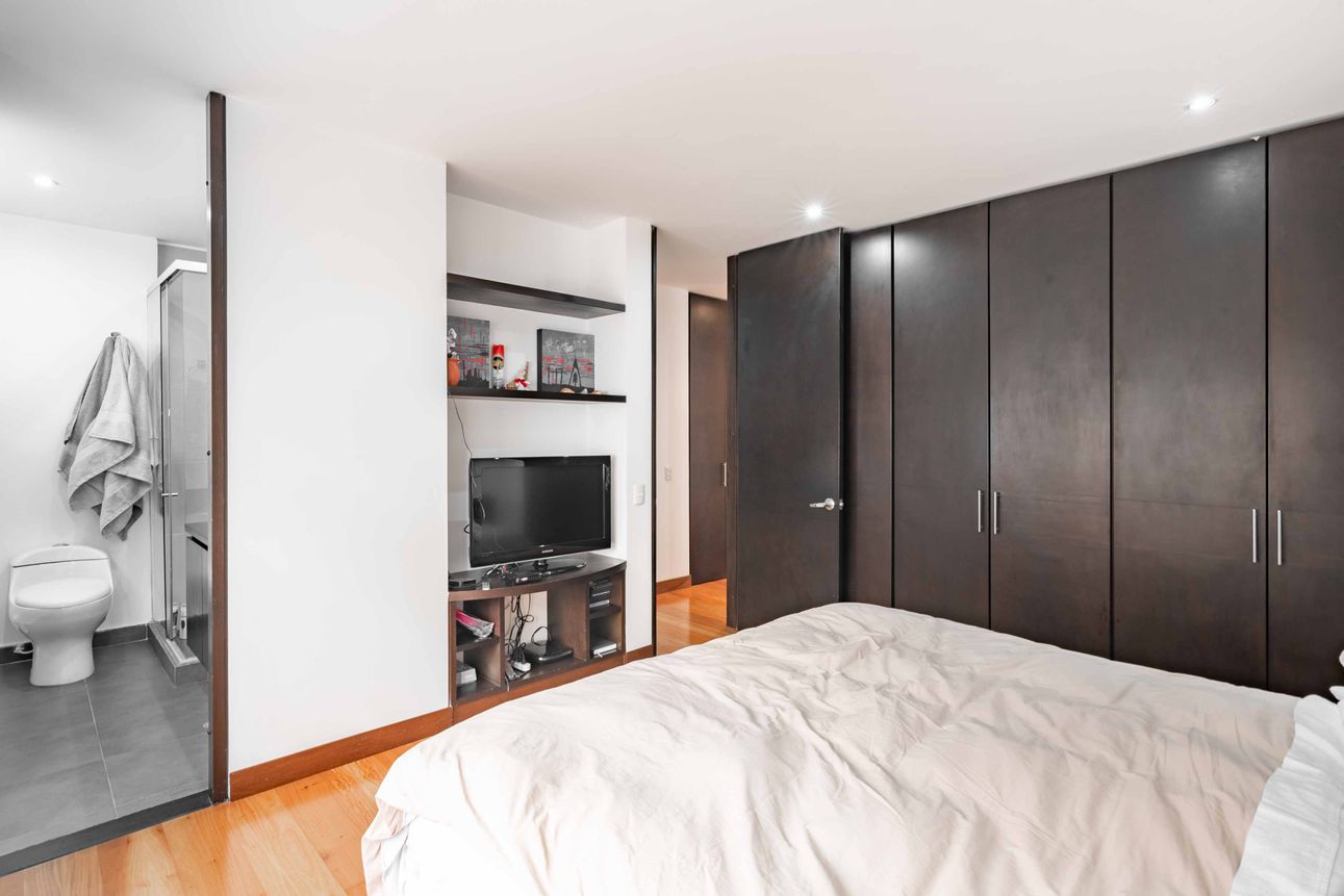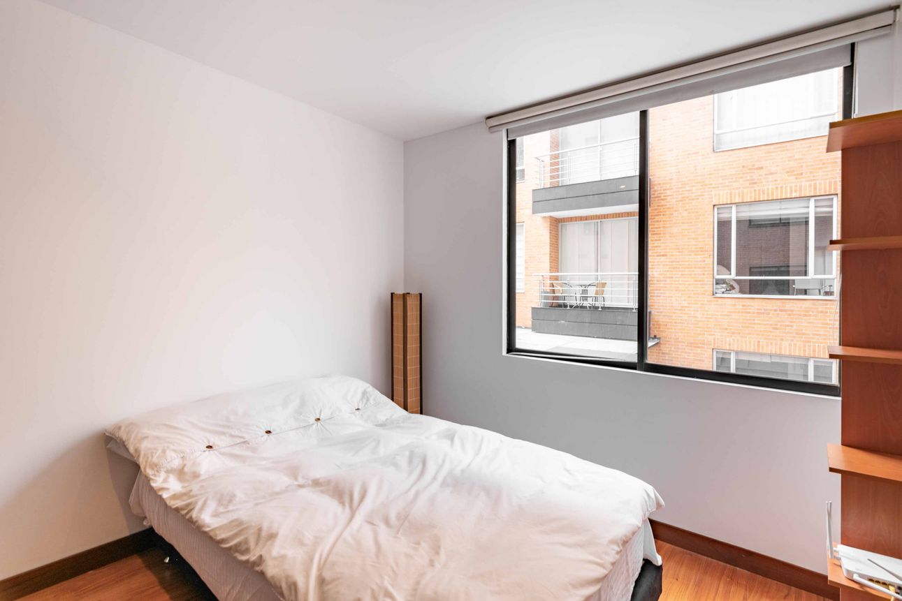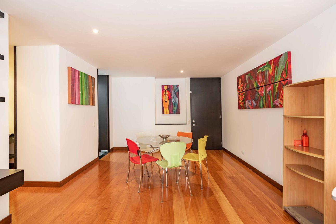 En el corazón de Chicó Navarra se encuentra este acogedor apartamento en arriendo. Ofrece la calidez de un hogar con piso de madera natural que abarca todo el espacio, aportando una atmósfera elegante y acogedora. La chimenea a leña es perfecta para disfrutar de las noches frías bogotanas, mientras que la iluminación y la ventilación natural hacen de cada rincón un espacio iluminado y agradable.