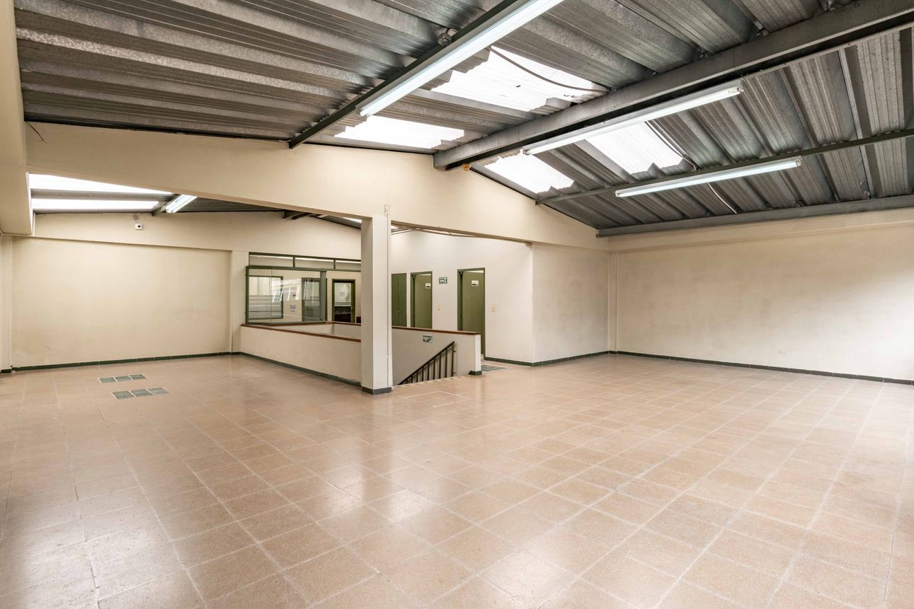 Este inmueble se distribuye en dos plantas, cuya altura es de 2,89 - 3,52 mts. En el primer piso encontramos un hall de ingreso que se conectan con amplios espacios abiertos, una oficina cerrada con baño y tres espacios cerrados que pueden ser remodelados para bodegaje o las necesidades que tu compañía requieran. En el piso 2 encontramos tres oficinas cerradas, dos baños y amplios corredores.