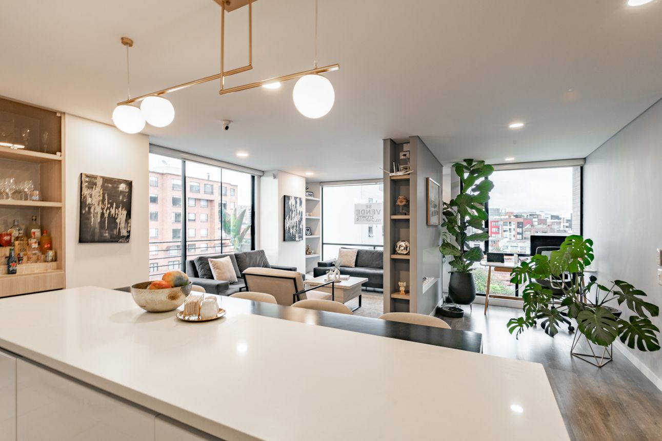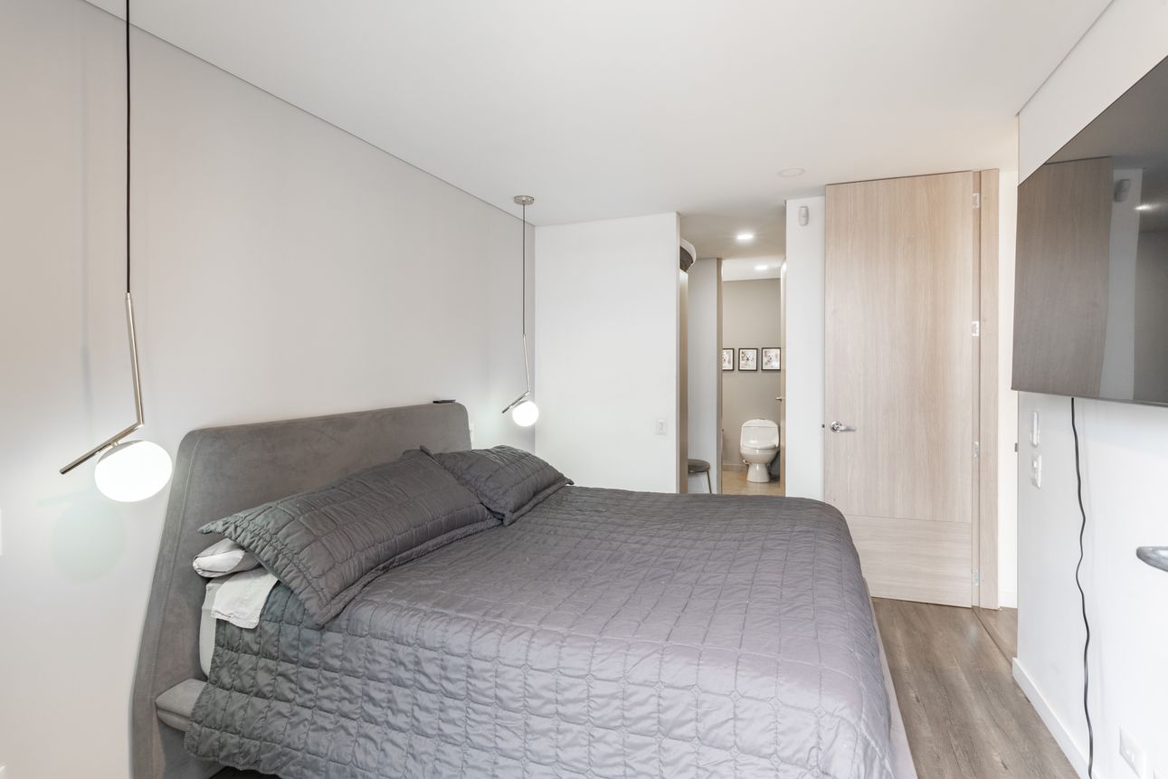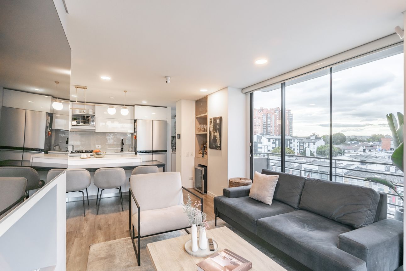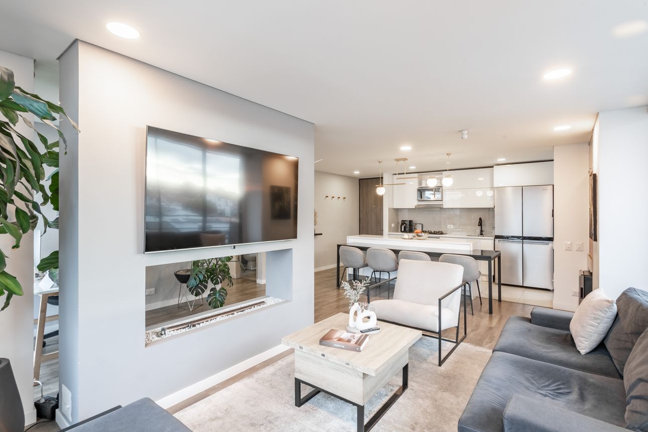 Este apartamento a la venta te ofrece una combinación perfecta de comodidad y seguridad. Con un diseño moderno y funcional, cuenta con dos habitaciones y una cocina americana que se integra armoniosamente al comedor, ideal para compartir momentos en familia o con amigos. La sala está equipada con una chimenea a gas que le da un toque acogedor. Además, desde el balcón podrás disfrutar de una espectacular vista panorámica de la ciudad y las montañas.