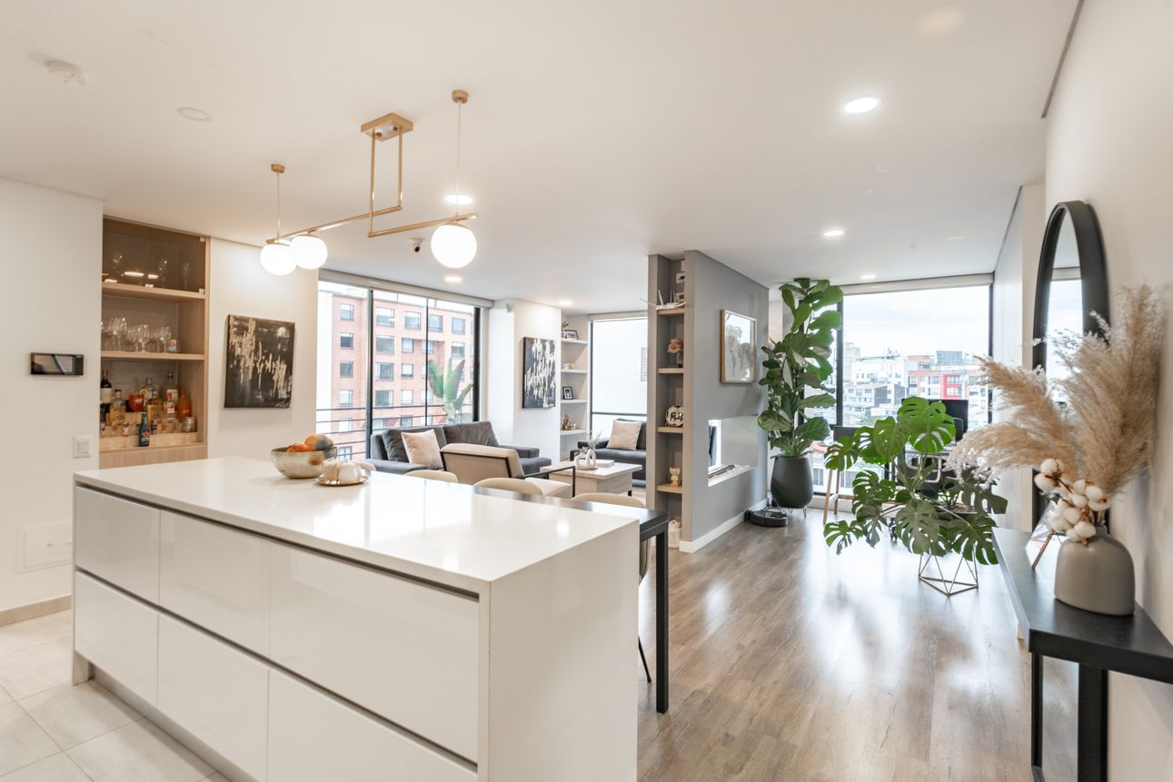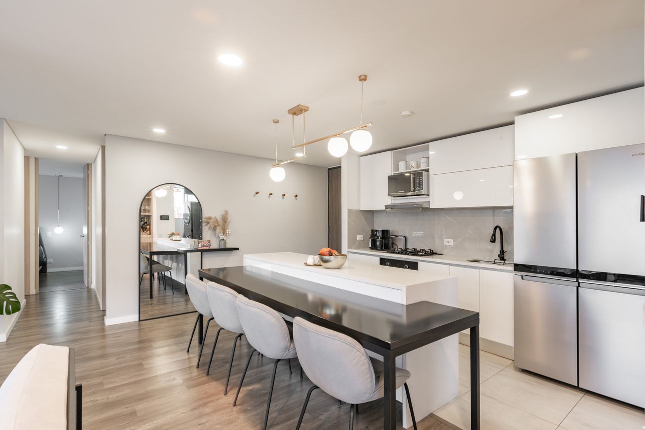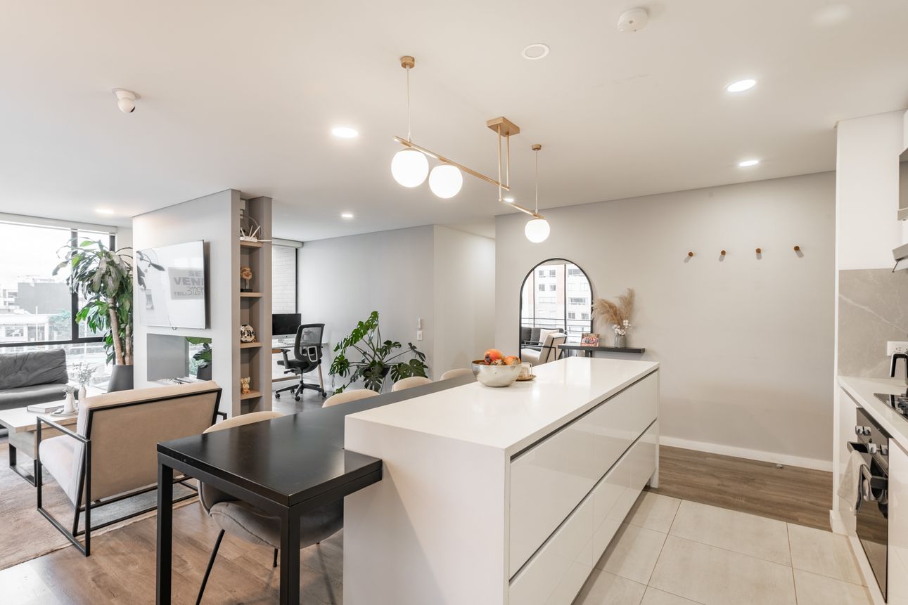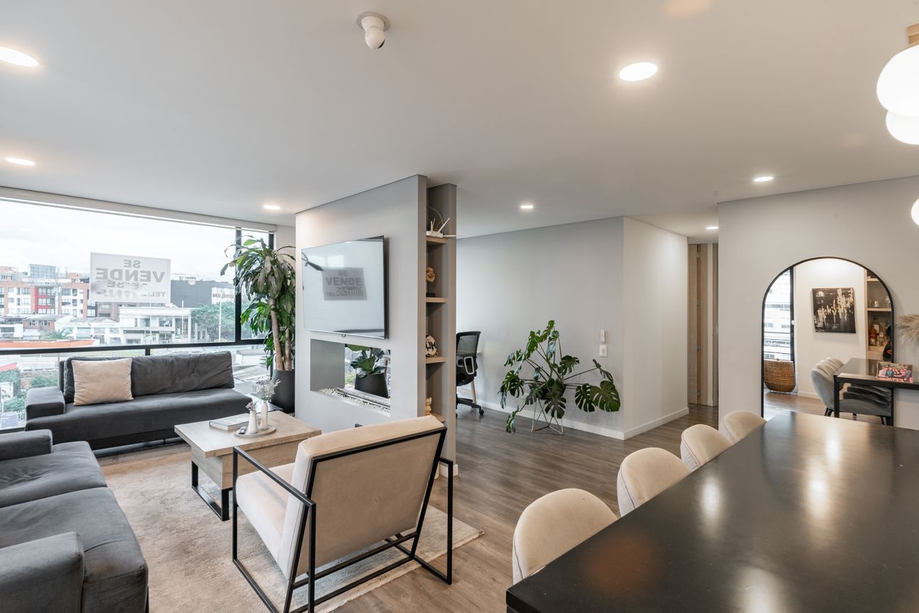 Este apartamento a la venta te ofrece una combinación perfecta de comodidad y seguridad. Con un diseño moderno y funcional, cuenta con dos habitaciones y una cocina americana que se integra armoniosamente al comedor, ideal para compartir momentos en familia o con amigos. La sala está equipada con una chimenea a gas que le da un toque acogedor. Además, desde el balcón podrás disfrutar de una espectacular vista panorámica de la ciudad y las montañas.