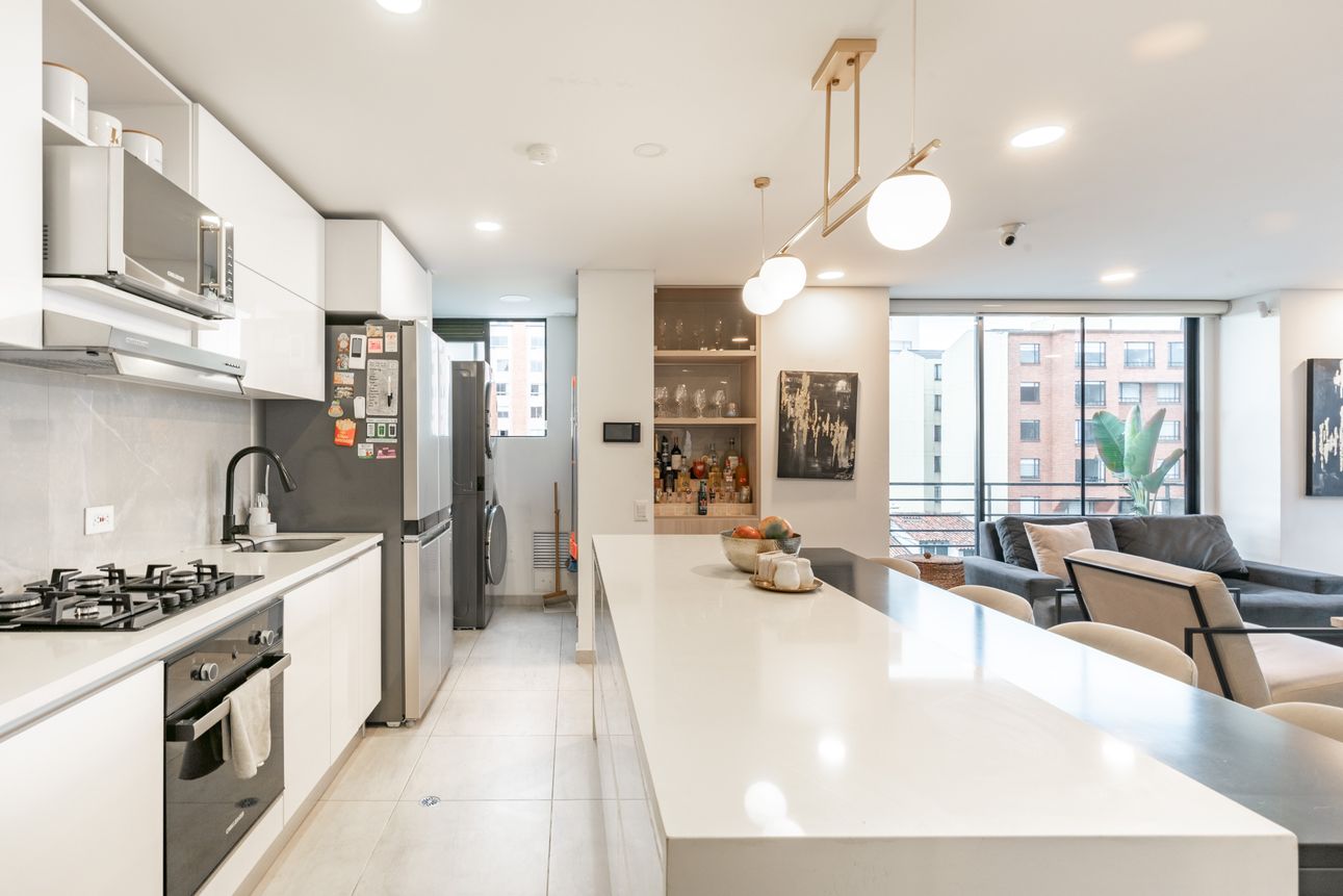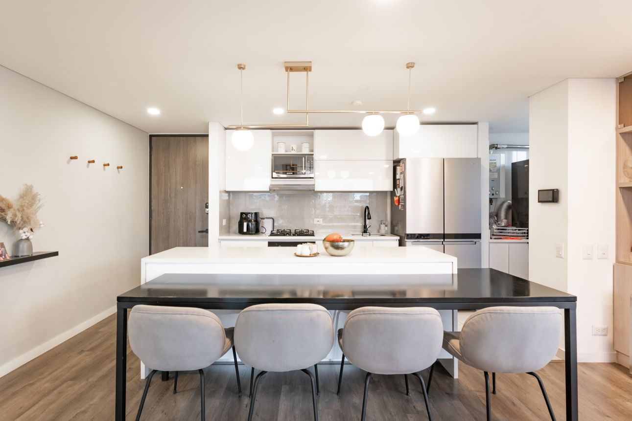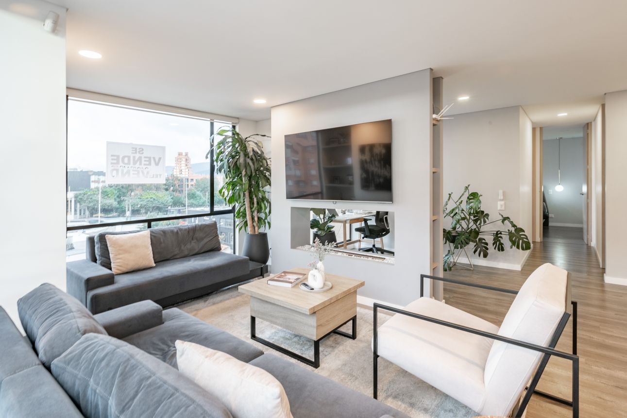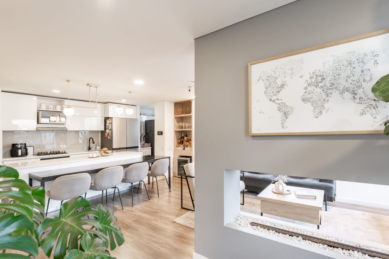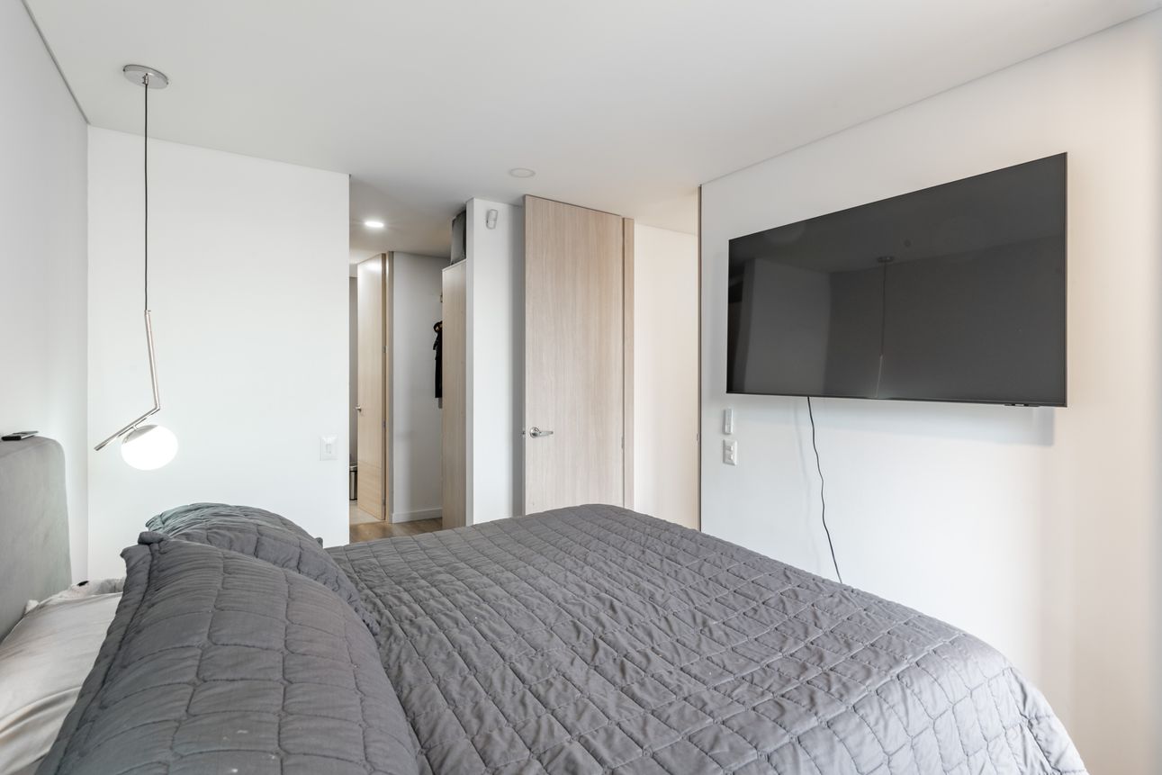 Este apartamento a la venta te ofrece una combinación perfecta de comodidad y seguridad. Con un diseño moderno y funcional, cuenta con dos habitaciones y una cocina americana que se integra armoniosamente al comedor, ideal para compartir momentos en familia o con amigos. La sala está equipada con una chimenea a gas que le da un toque acogedor. Además, desde el balcón podrás disfrutar de una espectacular vista panorámica de la ciudad y las montañas.
