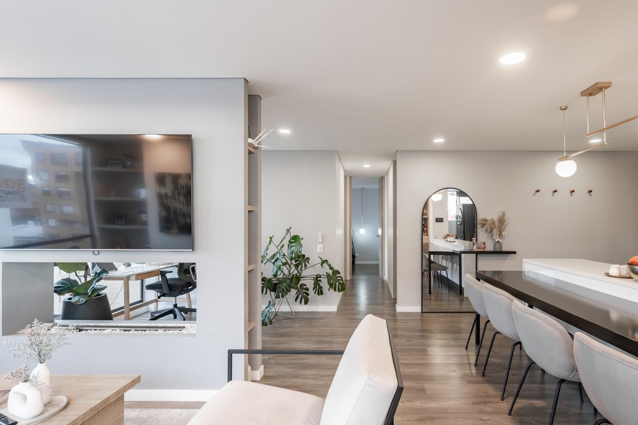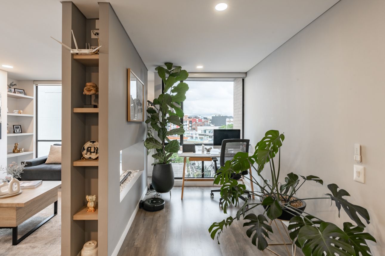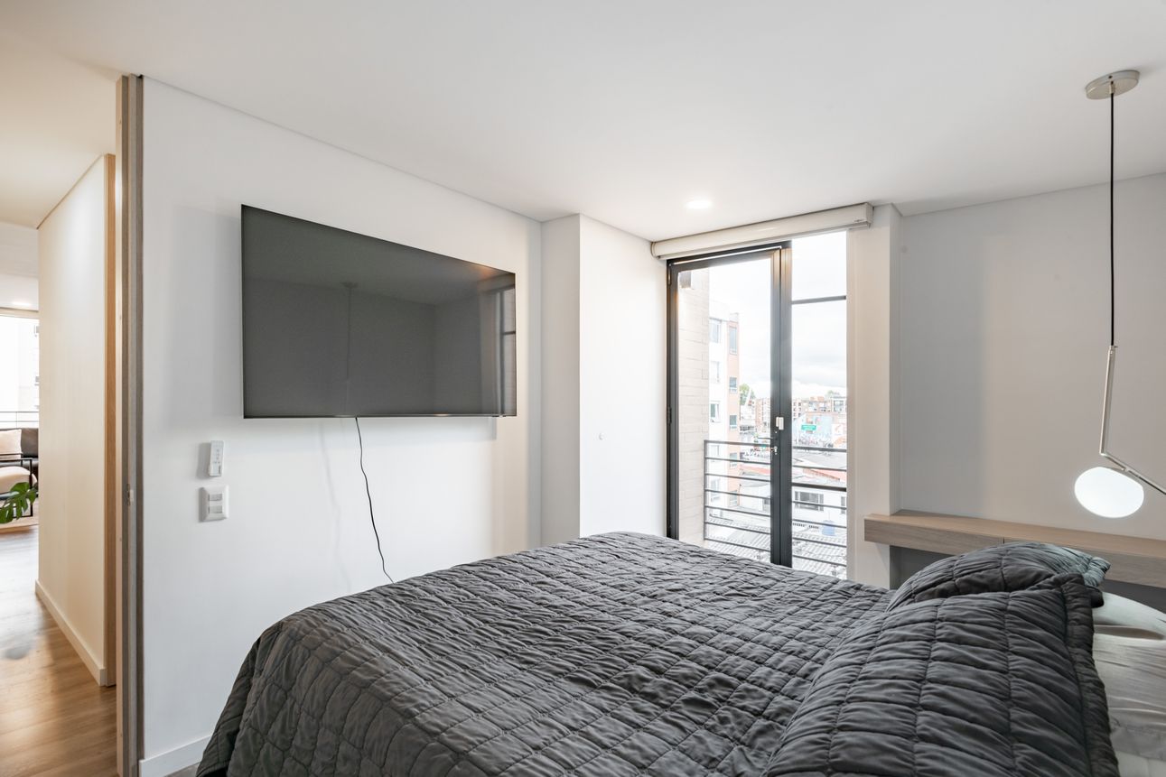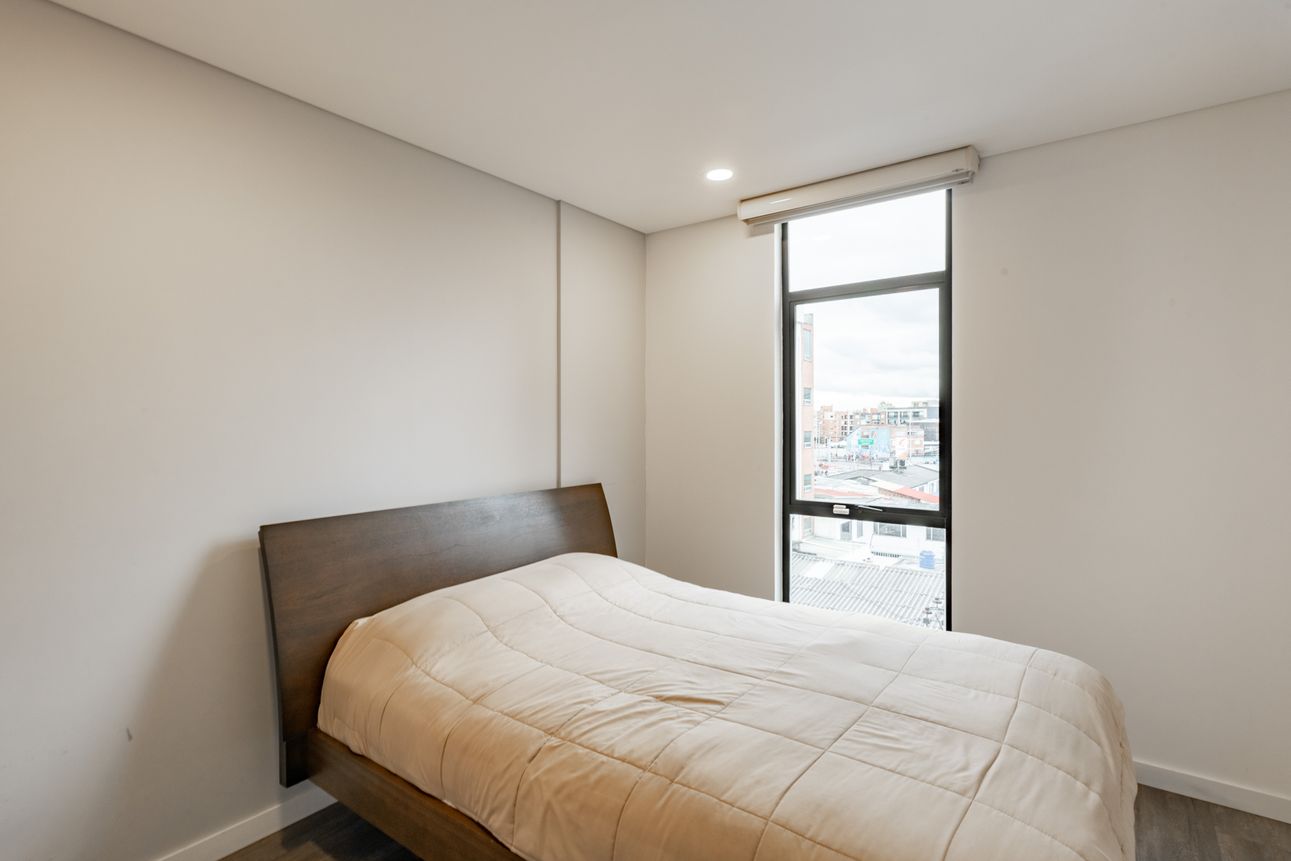 Este apartamento a la venta te ofrece una combinación perfecta de comodidad y seguridad. Con un diseño moderno y funcional, cuenta con dos habitaciones y una cocina americana que se integra armoniosamente al comedor, ideal para compartir momentos en familia o con amigos. La sala está equipada con una chimenea a gas que le da un toque acogedor. Además, desde el balcón podrás disfrutar de una espectacular vista panorámica de la ciudad y las montañas.