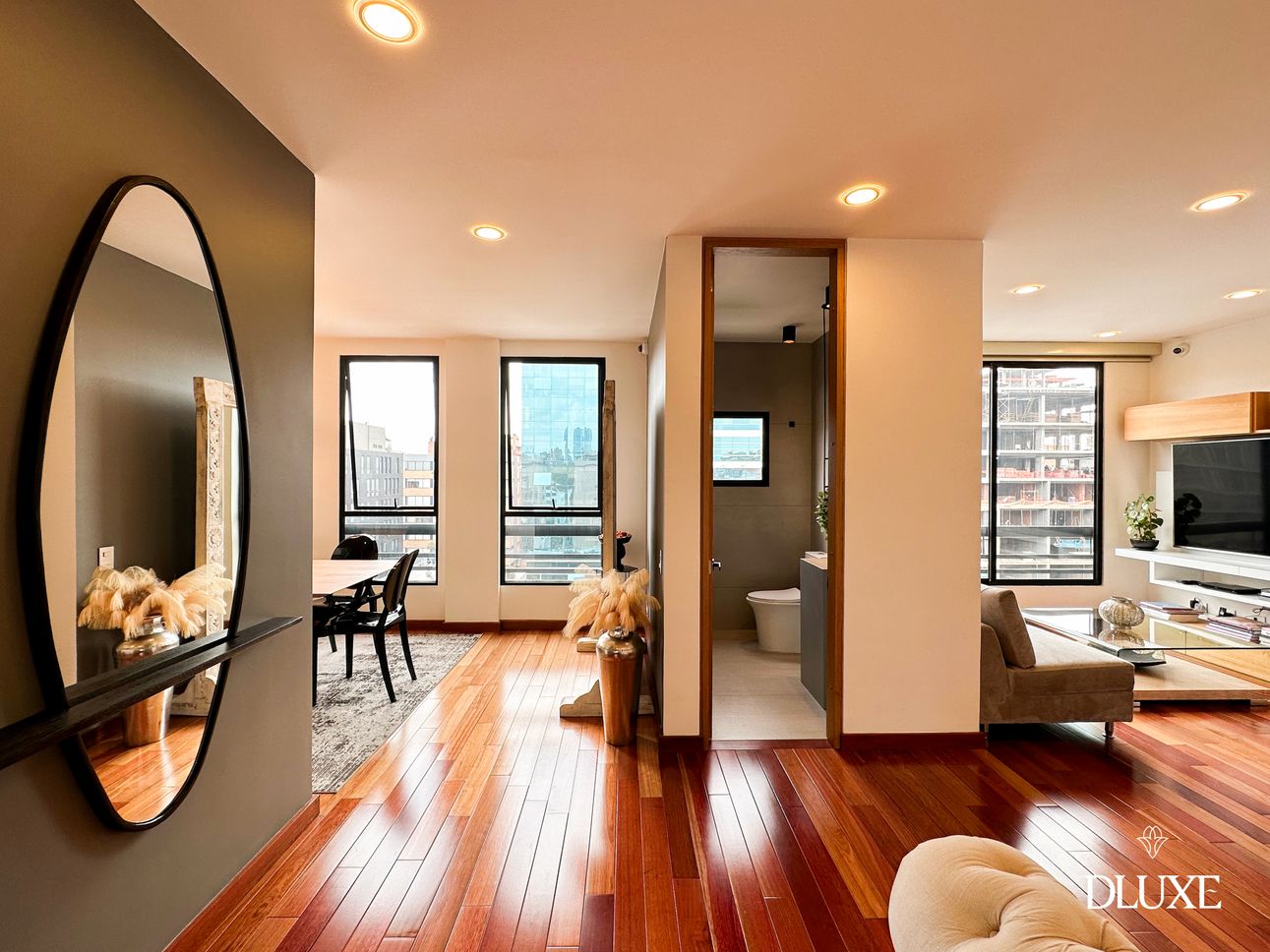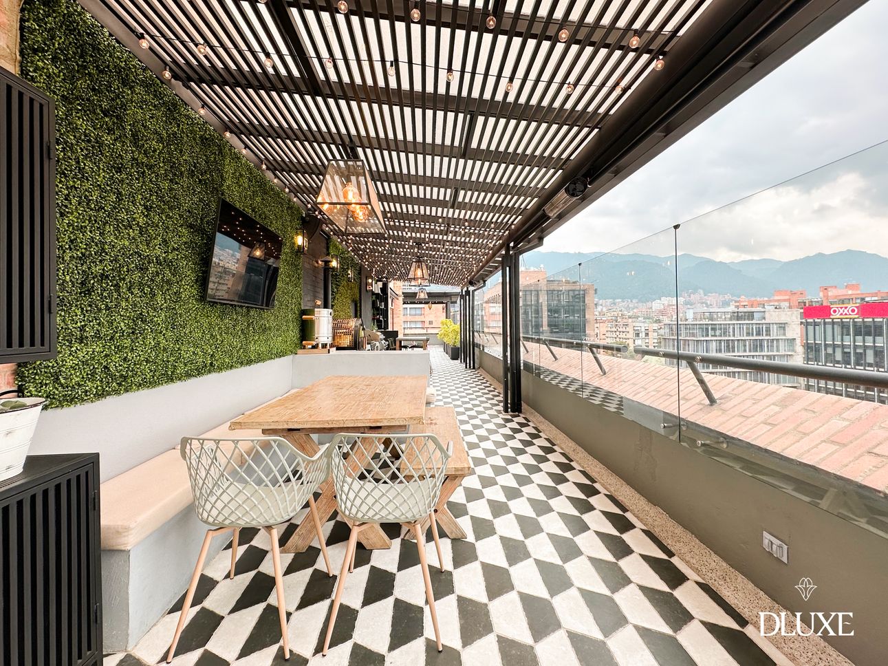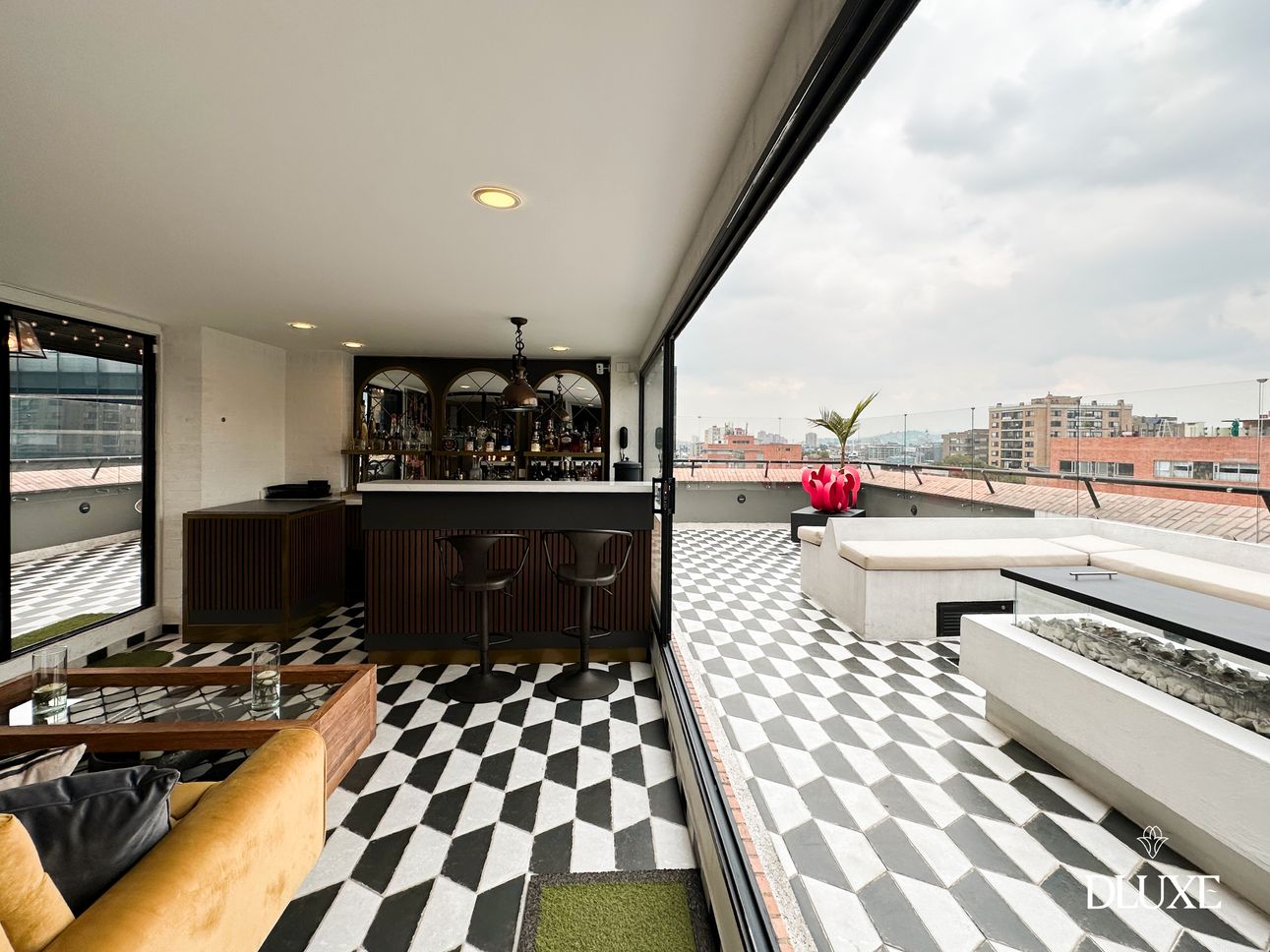 Dluxe te presenta Impresionante penthouse dúplex de 360 m² con 150 m² de terraza. Ha sido diseñado para ofrecer una distribución funcional y cómoda. Cuenta con una amplia sala que se conecta de manera fluida con el comedor independiente su cocina abierta. Además, dispone de una cava de vinos, dos estar sociales y tres habitaciones, todas con baño privado, destacando la habitación principal que incluye un generoso walking closet. Cuenta con un estudio versátil que puede adaptarse como una cuarta alcoba, ya que dispone de baño privado. En el segundo nivel, se encuentra un elegante espacio social cubierto con una estación de café que conecta con la espectacular terraza de 360 grados. En la terraza, los espacios están pensados para el disfrute y la comodidad: una zona de gimnasio, un área gastronómica con horno de pizza, teppanyaki y BBQ, un gran comedor, así como un espectacular bar privado. Para completar esta experiencia, una chimenea exterior se integra a la perfección con el bar.