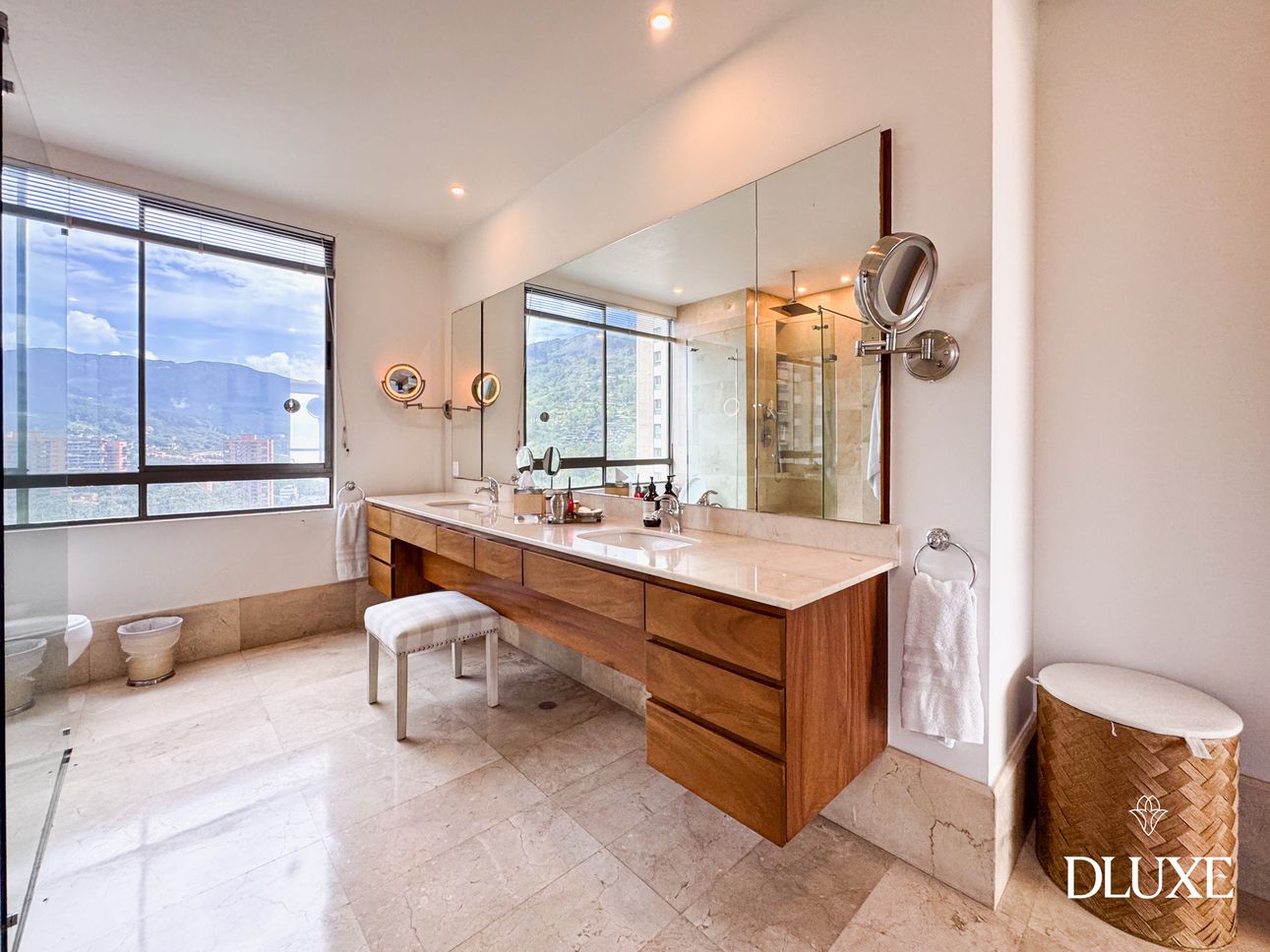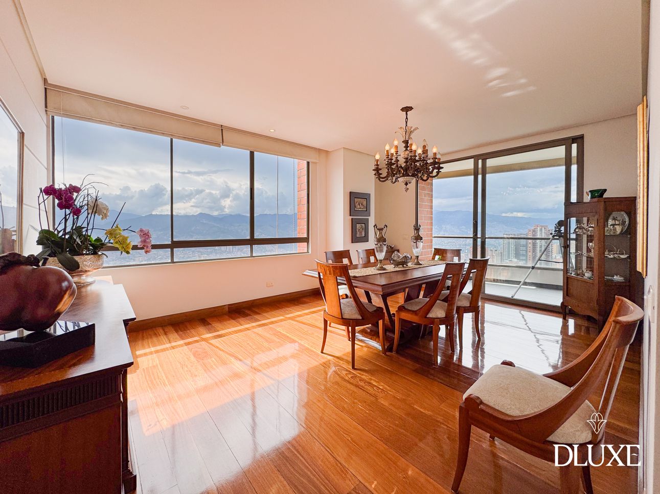 Ubicado en el exclusivo sector de El Poblado, Medellín, este impresionante apartamento en venta ofrece una vista panorámica de 360 grados de la ciudad. Con 450 metros cuadrados y una altura de 2.70 metros, es un espacio que no solo es amplio sino también luminoso y acogedor. Consta de 4 habitaciones, incluyendo la principal con dos vestieres, baño y balcón privado. La cocina es cerrada y bien equipada.