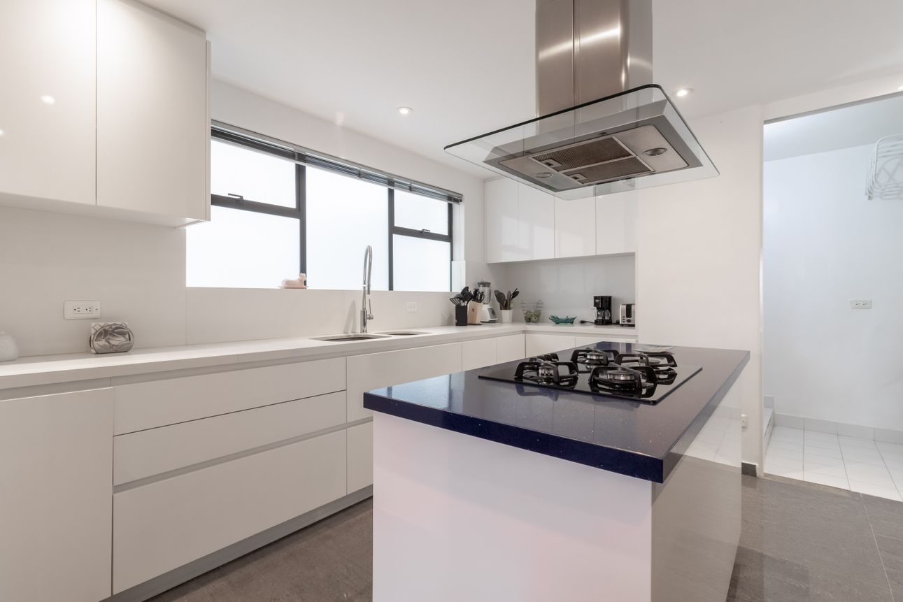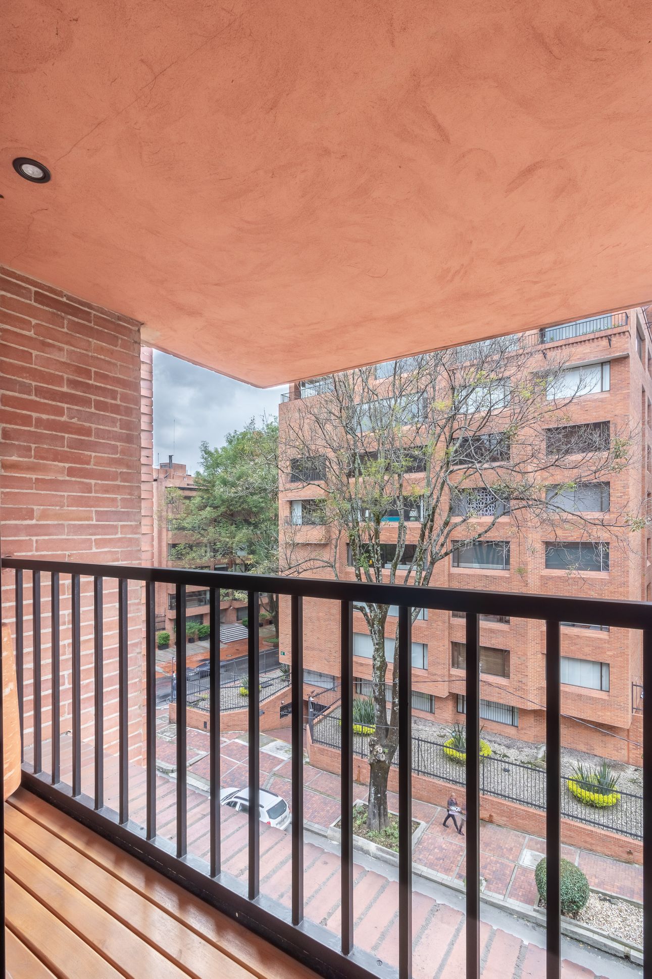 El apartamento, situado en un piso quinto, está totalmente remodelado, y cuenta con sala y comedor independiente, chimenea a gas en la sala, balcón exterior en el comedor, cocina abierta con puerta corrediza e isla, zona de lavandería, estudio, estar de alcobas, y tres habitacioes, dos de ellas con baño en suite y la principal con walking closet. Pisos en madera maciza, excelente iluminación natural, y lindos y modernos acabados. Además cuenta con ascensor privado, puerta de seguridad, dos parqueaderos independientes y depósito.