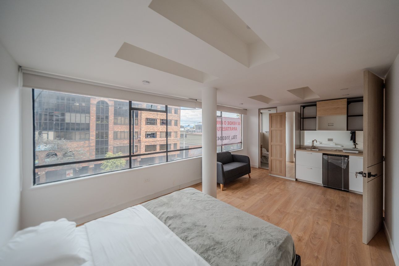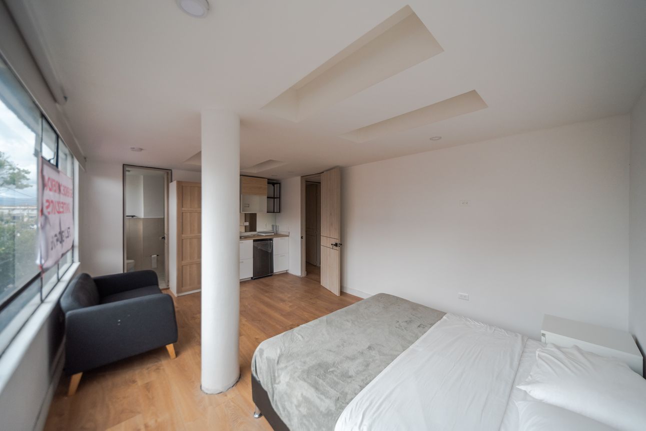 Apartaestudio amoblado recien remodelado con excelentes acabados cuenta con baño privado. El apartamento cuenta con cama, nevera, sofa, televisor, estufa, microondas, blackouts. Los servicios públicos se encuentran incluidos dentro del canon de arrendamiento.