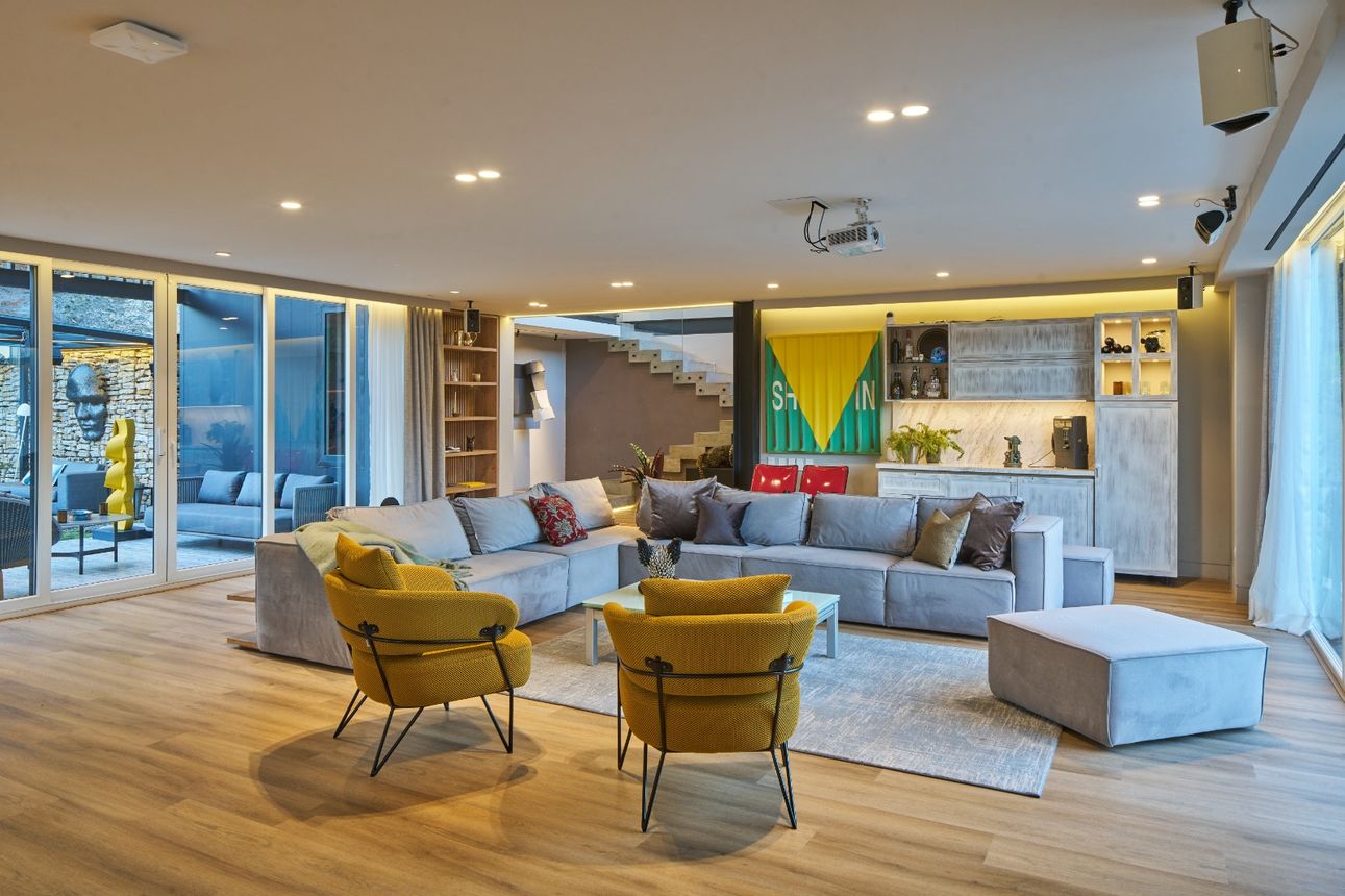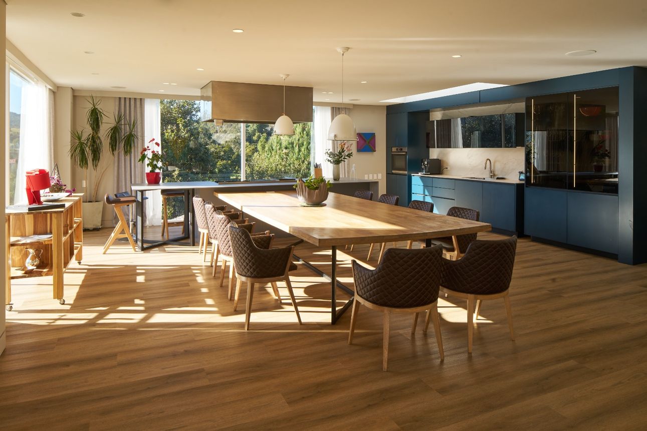 Gracias a su diseño bioclimático, esta casa mantiene una temperatura interior constante, sin necesidad de los calefactores. Construida en un lote de 3.500m2, posee 620m2 de área privada, 286m2 de terrazas, 2 parqueaderos cubiertos y 4 descubiertos.