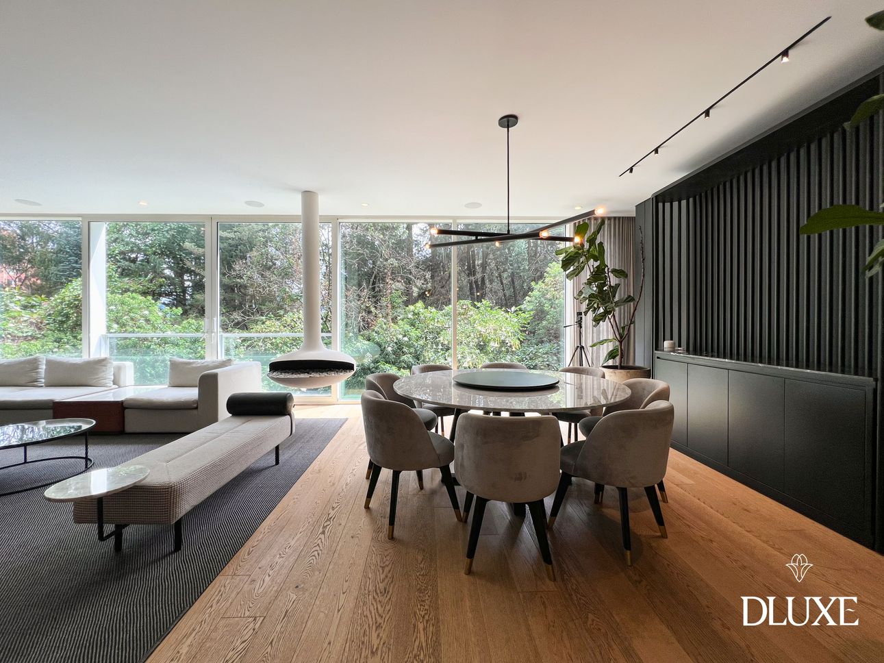 Amplia zona social, con sala, comedor y cocina integrada de diseño moderno.