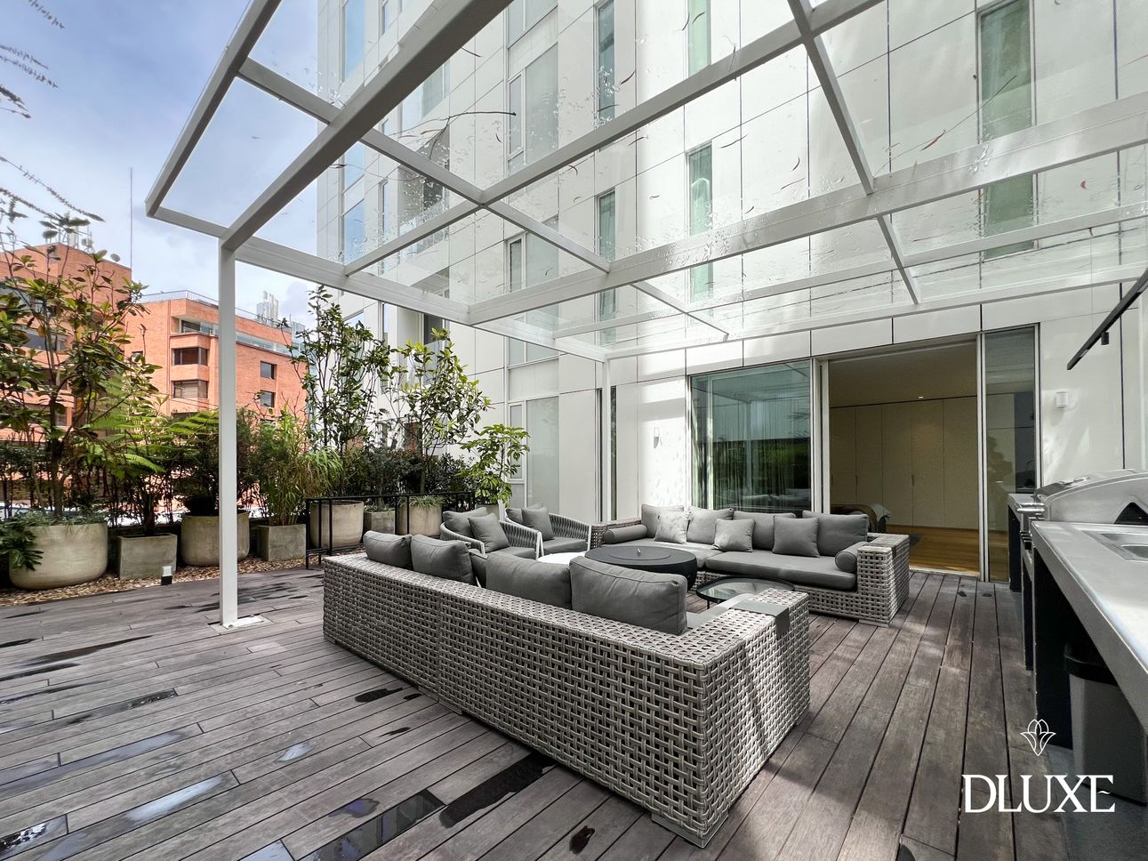 Terraza privada de 100 m², ideal para disfrutar de espacios al aire libre, reuniones o simplemente relajarse con una vista privilegiada.