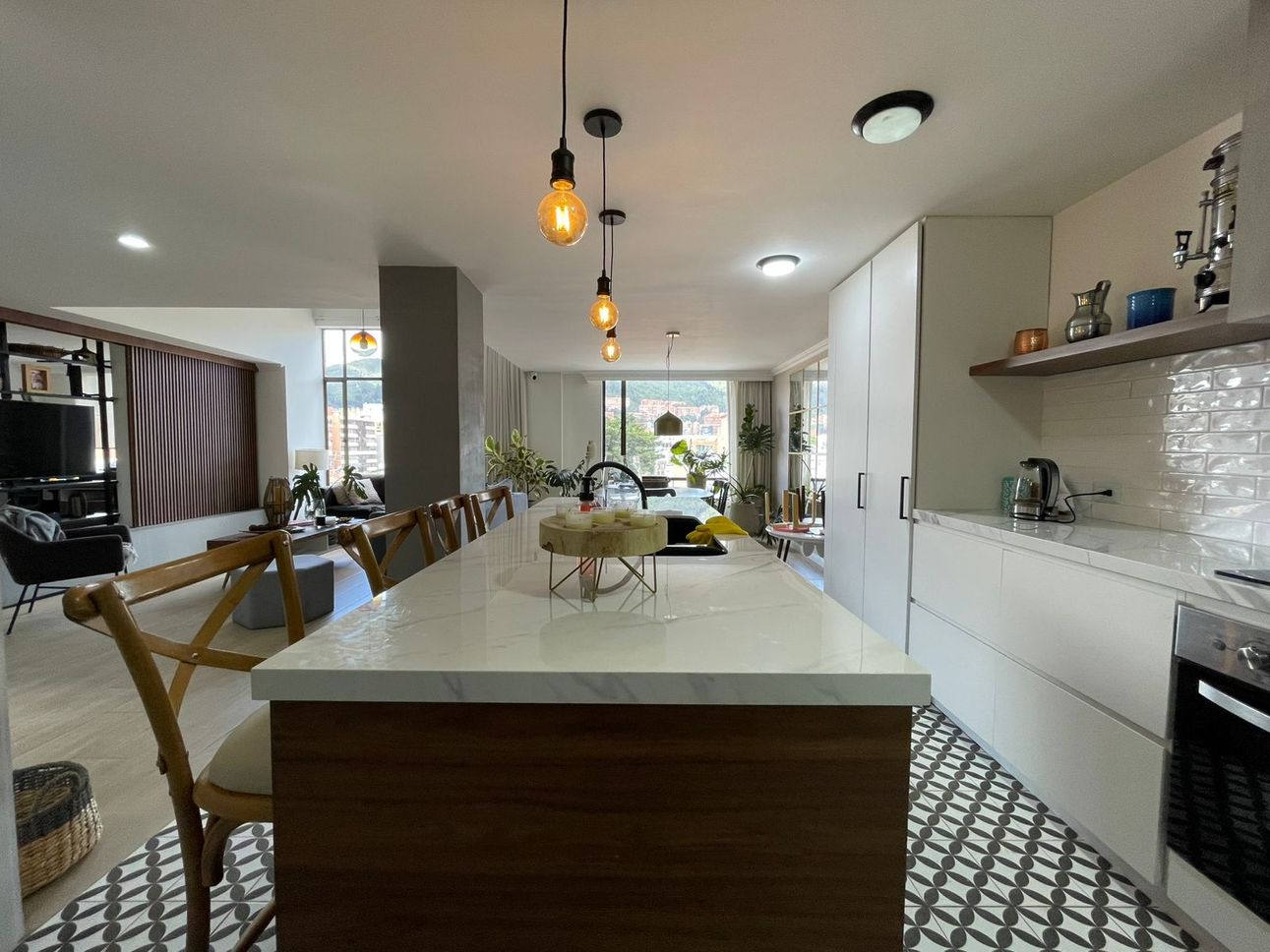 Te presentamos un excelente apartamento completamente remodelado, duplex interior con vista al oriente en Santa Bárbara. Muy iluminado.