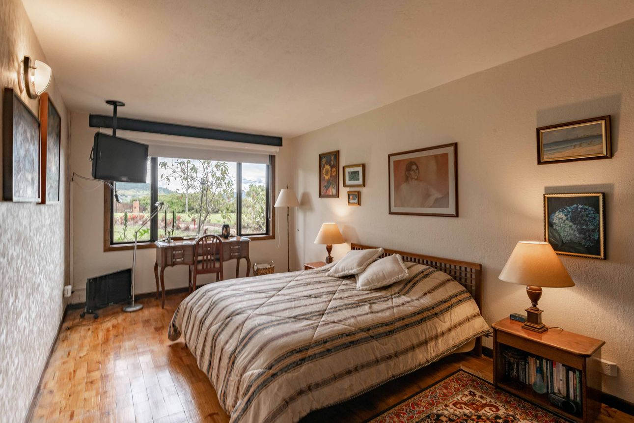 Esta joya con estilo rústico colonial, evoca a los tradicionales ranchos mexicanos. En La Calera, encuentra esta bella casa campestre, dónde disfrutarás de la tranquilidad y la belleza de la vida rural a pocos minutos del pueblo y a 1hr de Bogotá. Con una zona social amplia, cocina abierta y gran chimenea tradicional. Alcobas en primer piso y luego; alcoba principal con terraza, walking closet y enorme baño con tina en el segundo piso para total privacidad. Una casa preciosa, llena de madera, con esa esencia de hacienda norteña, que la hace tan especial. Cuenta con calefacción verde, 12 cámaras de seguridad y alarma. También cuarto de herramientas, amplias zonas verdes y zonas de parqueo. Disfrute de la vida que usted y su familia se merecen. ¡Ah! y cuenta con kiosco para asados, tanque de agua y todo lo que una casa necesita, pero al estilo totalmente campestre; con espacios llenos de luz, tradición y belleza.