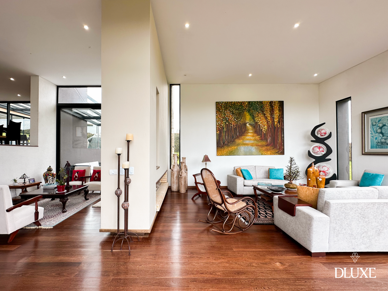 Dluxe presenta este exclusivo condominio Casa de Campo de La Calera, donde se encuentra esta propiedad de lujo que reúne la perfección de diseño, comodidad y estilo. Ubicada en un terreno de 3.650 metros cuadrados, esta residencia de 750 metros cuadrados de construcción es un verdadero refugio para aquellos que buscan la tranquilidad y la exclusividad.