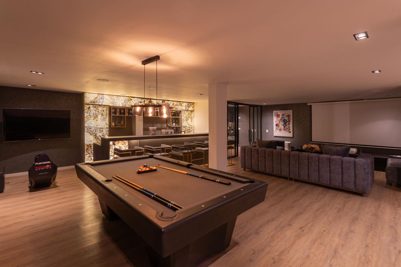 Ofrece áreas de entretenimiento únicas: cine, cava, billar, simulador de carreras, salón infantil y sistema de sonido Sonos. Para el bienestar, incluye sauna, turco, jacuzzi, gimnasio, sala de masajes y zona de descanso.