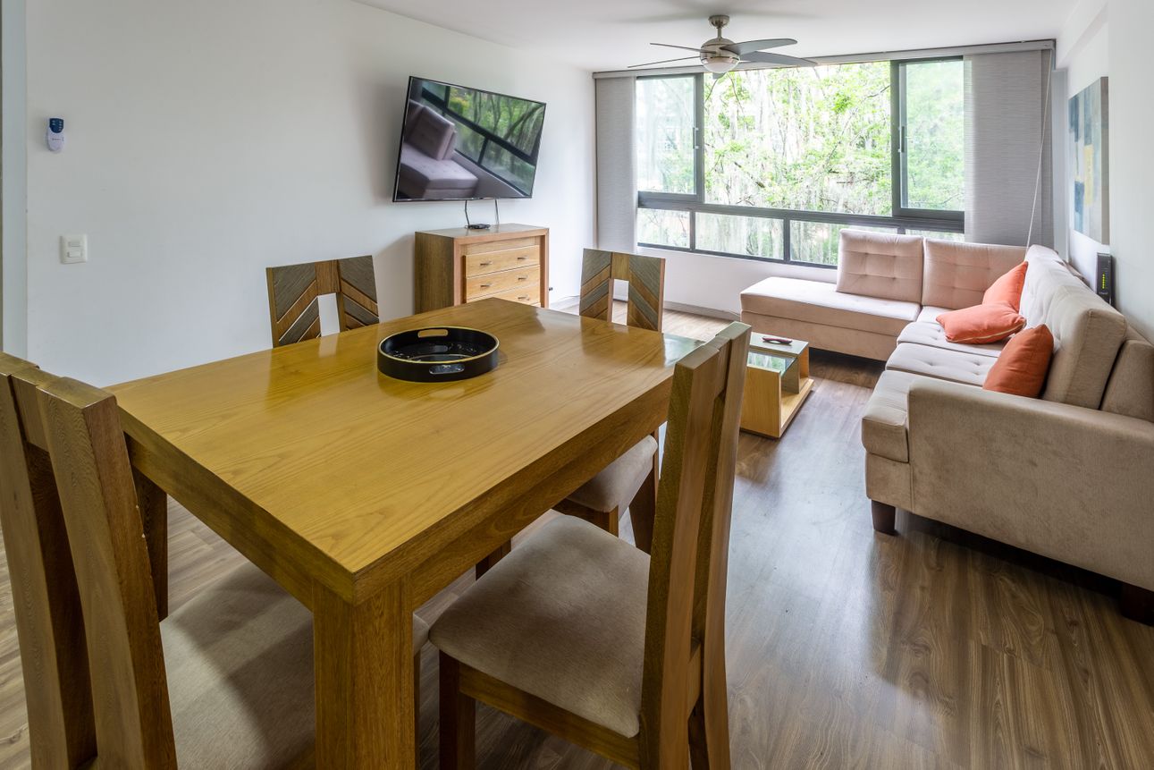 En venta se encuentra este apartamento en excelente ubicación via carulla Palmas, Medellín. Con una ubicación privilegiada, este apartamento amoblado cuenta con una tranquila vista verde y una fachada que da al exterior, asegurando una iluminación natural bonita.