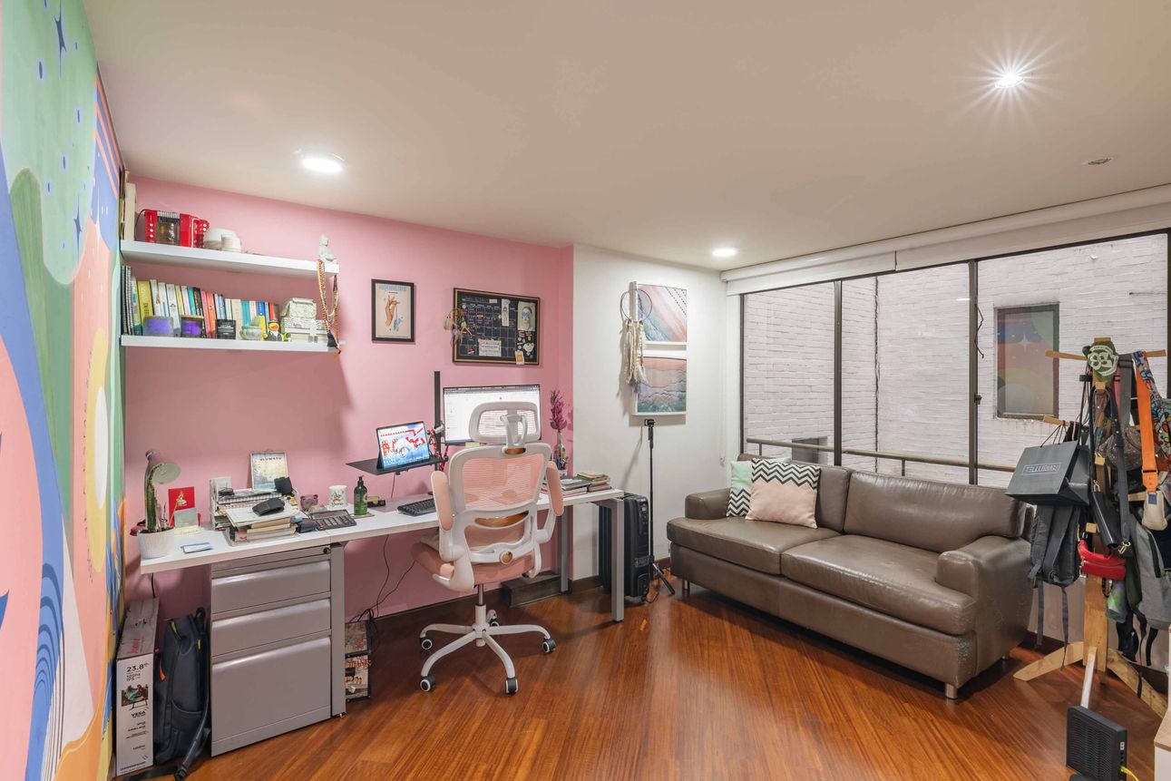 El apartamento, en el tercer piso de un edificio clásico del 98 de solo nueve apartamentos parqueaderos en linea cubiertos y con conexion para carga electrica, depósito para almacenamiento extra y área de lavandería.