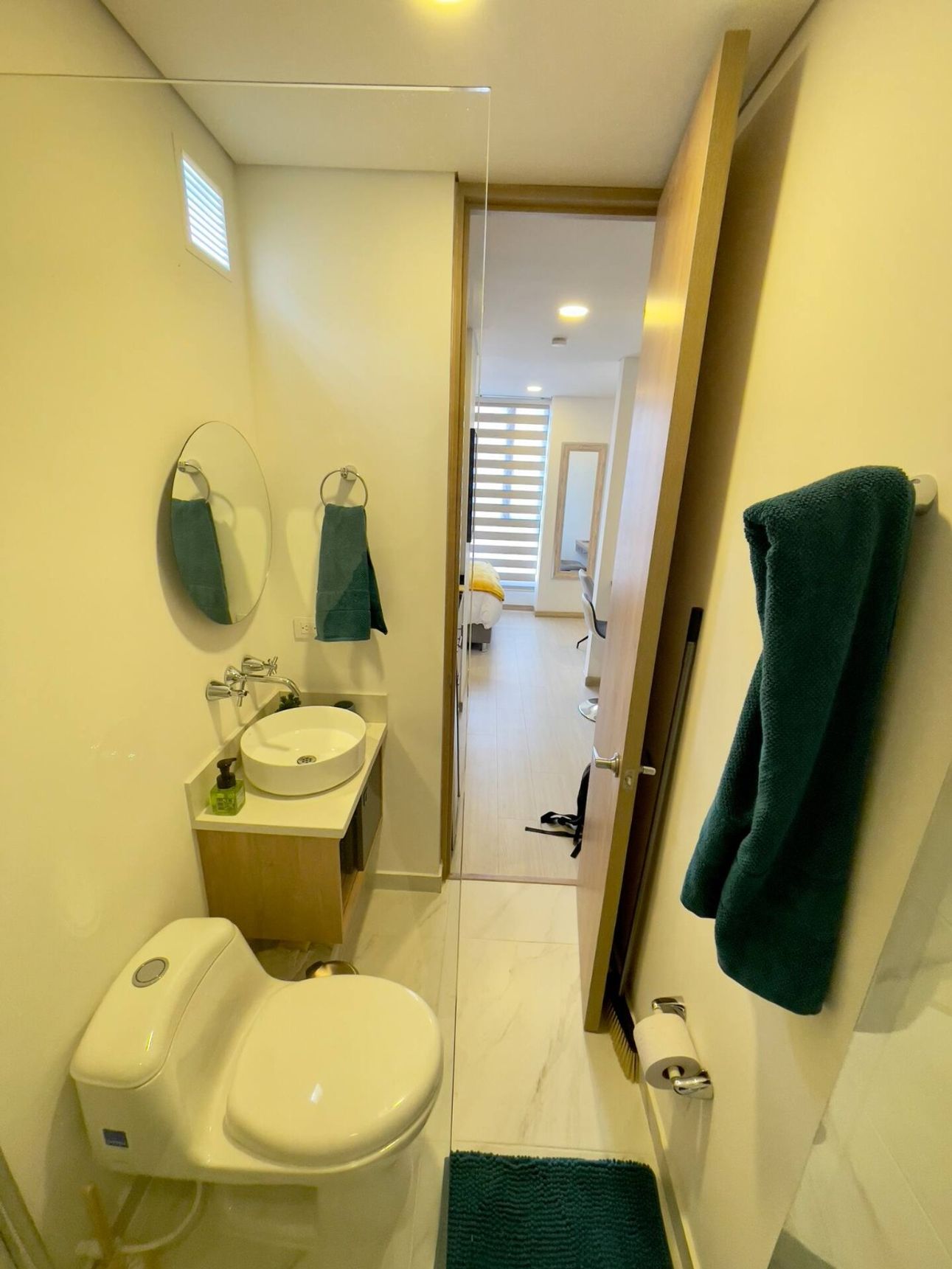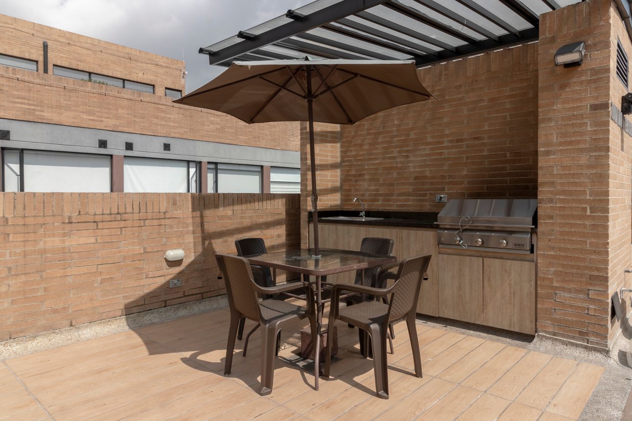 El edificio ofrece una variedad de amenidades que enriquecen tu estilo de vida, como piscina, gimnasio, sauna o turco, y una zona BBQ ideal para compartir con amigos. Además, cuenta con seguridad 24 horas y un salón comunal donde se pueden realizar diferentes actividades. La vista a la ciudad desde la terraza es simplemente espectacular, permitiéndote disfrutar de los atardeceres bogotanos en toda su gloria.