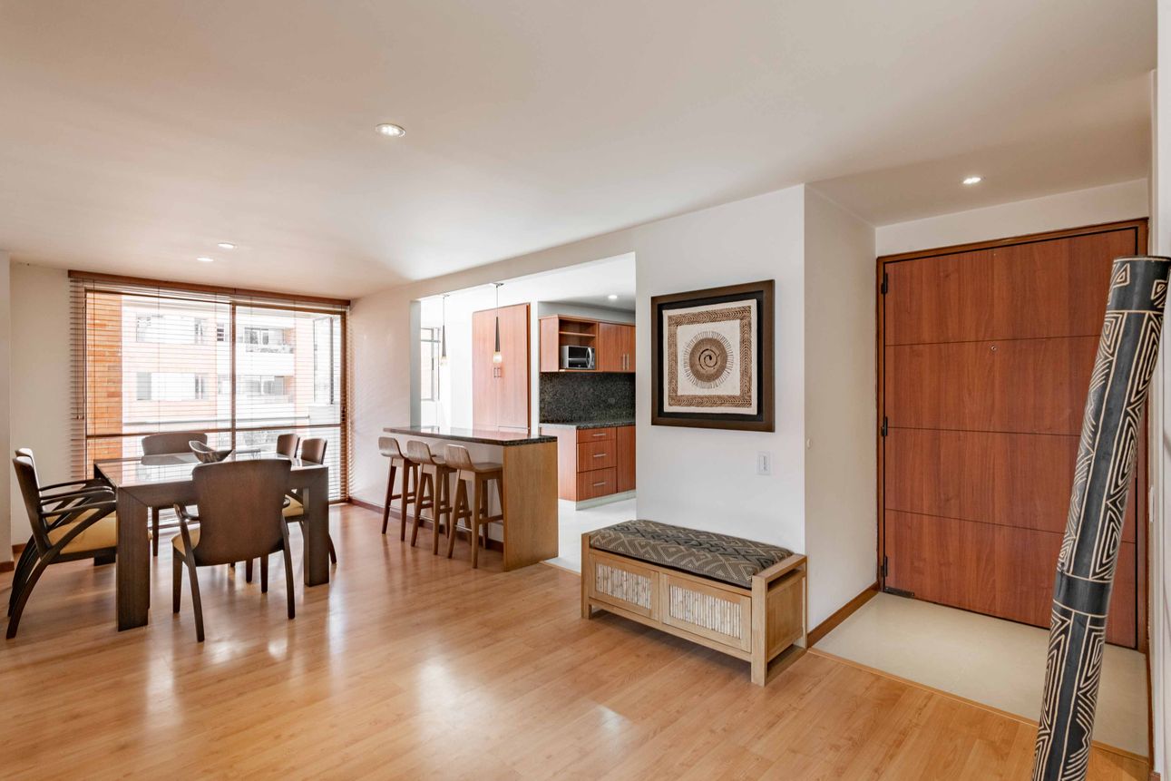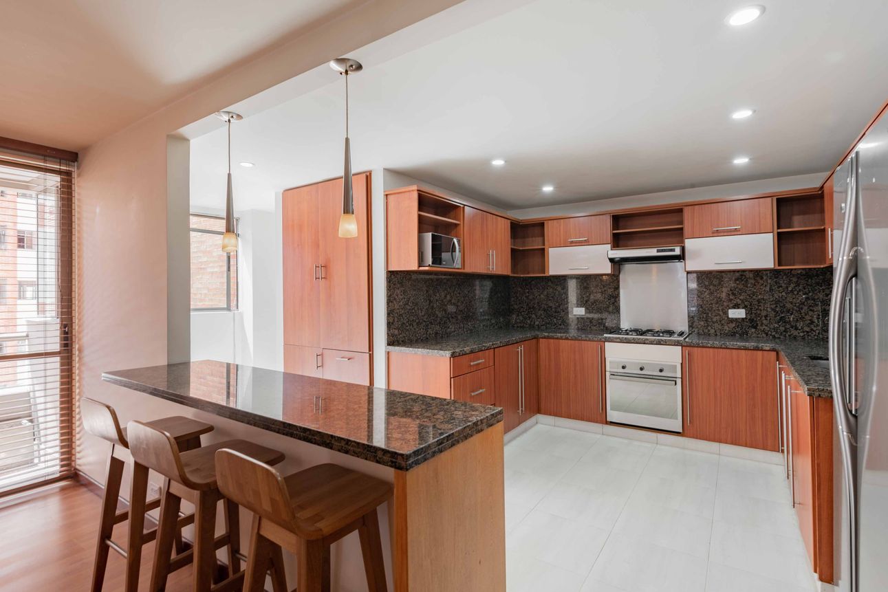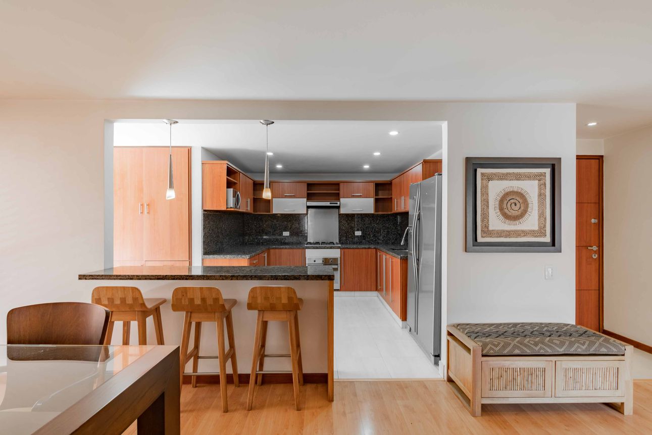 Ubicado en el corazón de Santa Ana Occidental, este apartamento amoblado es ideal para quienes buscan comodidad y estilo en un mismo lugar. Con tres habitaciones, 2 baños completos, un estar de alcobas y una vista espectacular a los cerros y la plazoleta interna del conjunto, este espacio en el séptimo piso promete momentos únicos. La zona social está compuesta de baño social, sala y comedor con acceso a dos balcones. En la zona de servicios encontramos la cocina abierta y moderna, equipada con una barra estilo americano, la zona de lavandería con luz y ventilación natural y el cuarto y baño del servicio. Dos garajes en línea y un depósito complementan la propiedad.