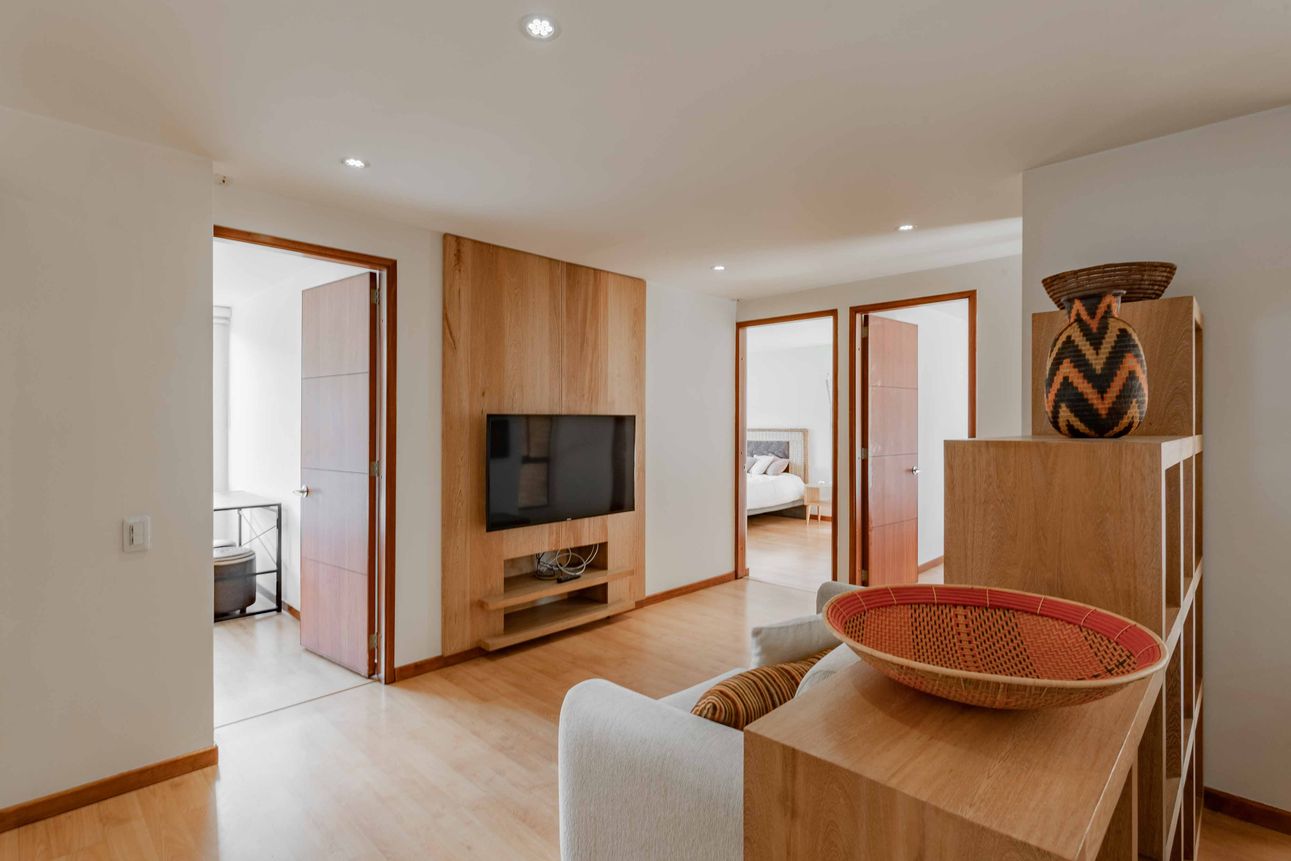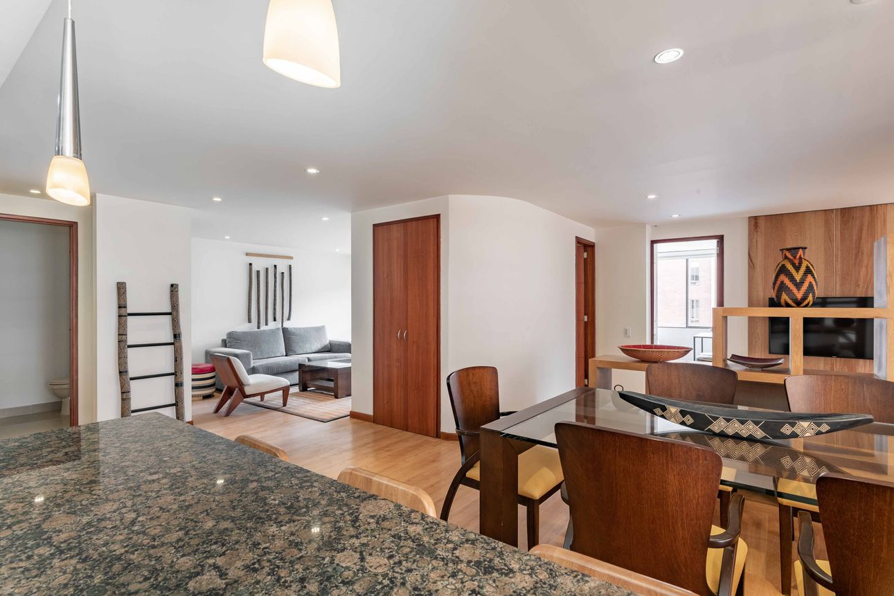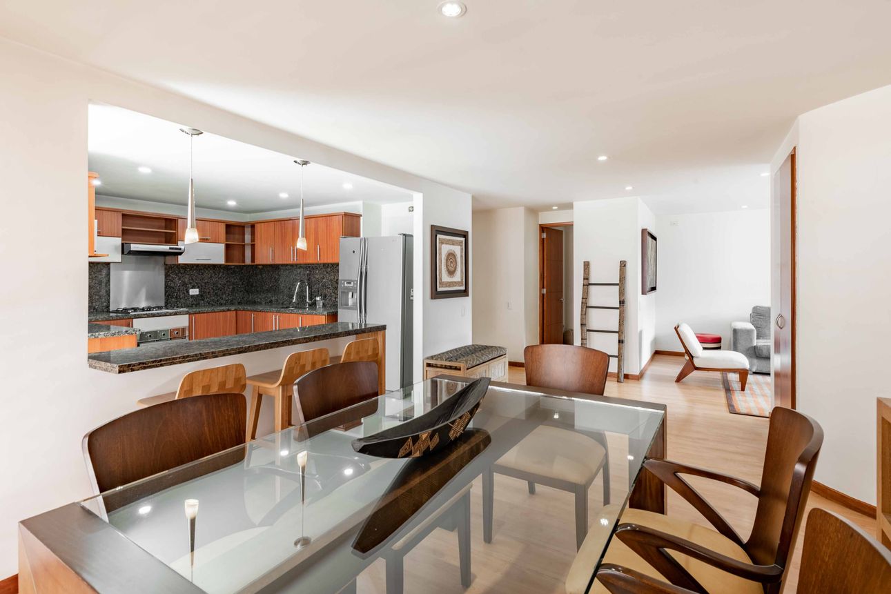 Ubicado en el corazón de Santa Ana Occidental, este apartamento amoblado es ideal para quienes buscan comodidad y estilo en un mismo lugar. Con tres habitaciones, 2 baños completos, un estar de alcobas y una vista espectacular a los cerros y la plazoleta interna del conjunto, este espacio en el séptimo piso promete momentos únicos. La zona social está compuesta de baño social, sala y comedor con acceso a dos balcones. En la zona de servicios encontramos la cocina abierta y moderna, equipada con una barra estilo americano, la zona de lavandería con luz y ventilación natural y el cuarto y baño del servicio. Dos garajes en línea y un depósito complementan la propiedad.