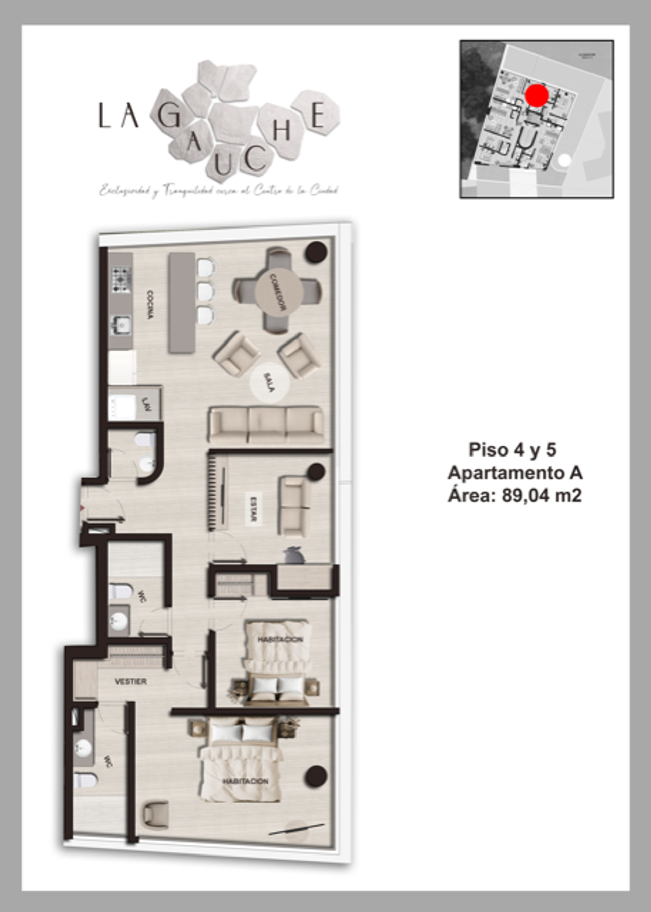 LA GAUCHE es un exclusivo proyecto de apartamentos de las más altas especificaciones, con una ubicación privilegiada dentro la mejor zona de Bosque Izquierdo.