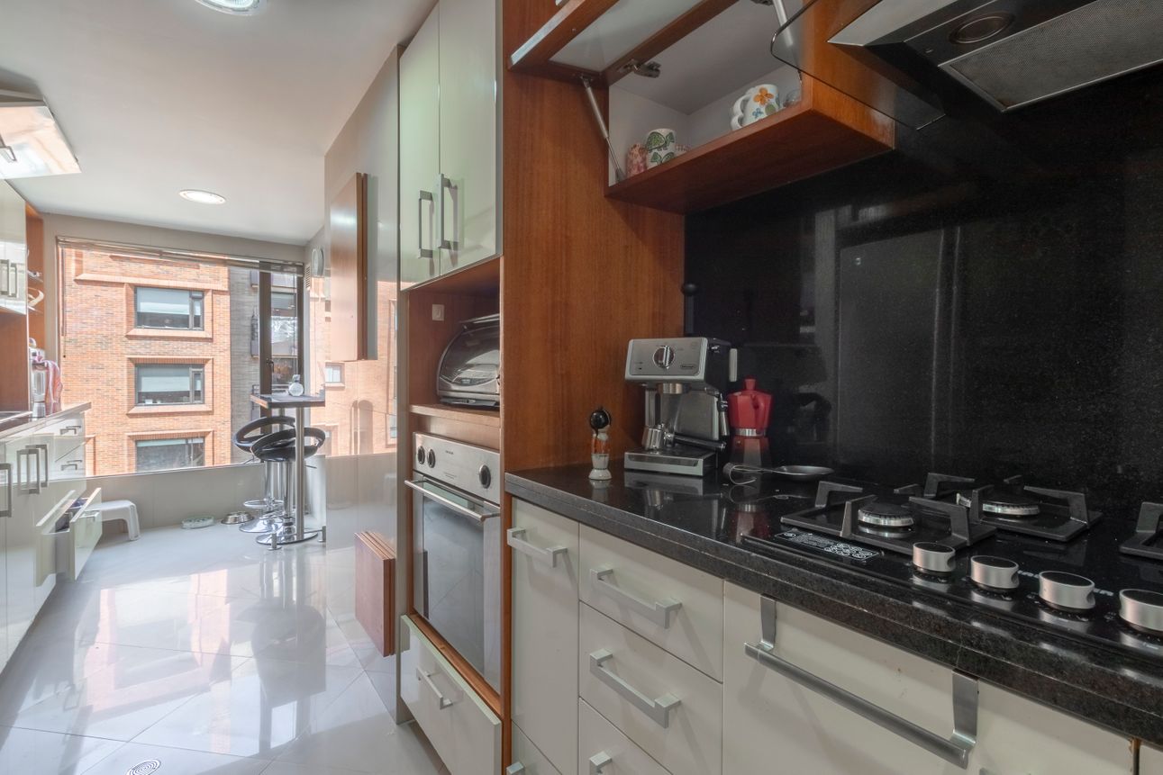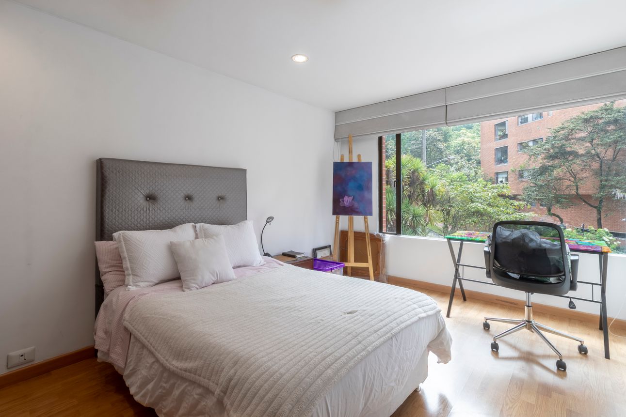 El apartamento en venta está ubicado en Rosales, ofreciéndote una mezcla perfecta de comodidad urbana y servicios exclusivos. Con tres habitaciones, todas con un amplio vestier, y espaciosos ambientes como la sala de TV y el estudio, es ideal para quienes valoran el espacio y el confort. La cocina cerrada con estufa a gas es perfecta para tus momentos culinarios, y la chimenea a gas añade calidez a tus tardes. Además, cuenta con cuarto y baño de servicio, resaltando la funcionalidad del espacio.