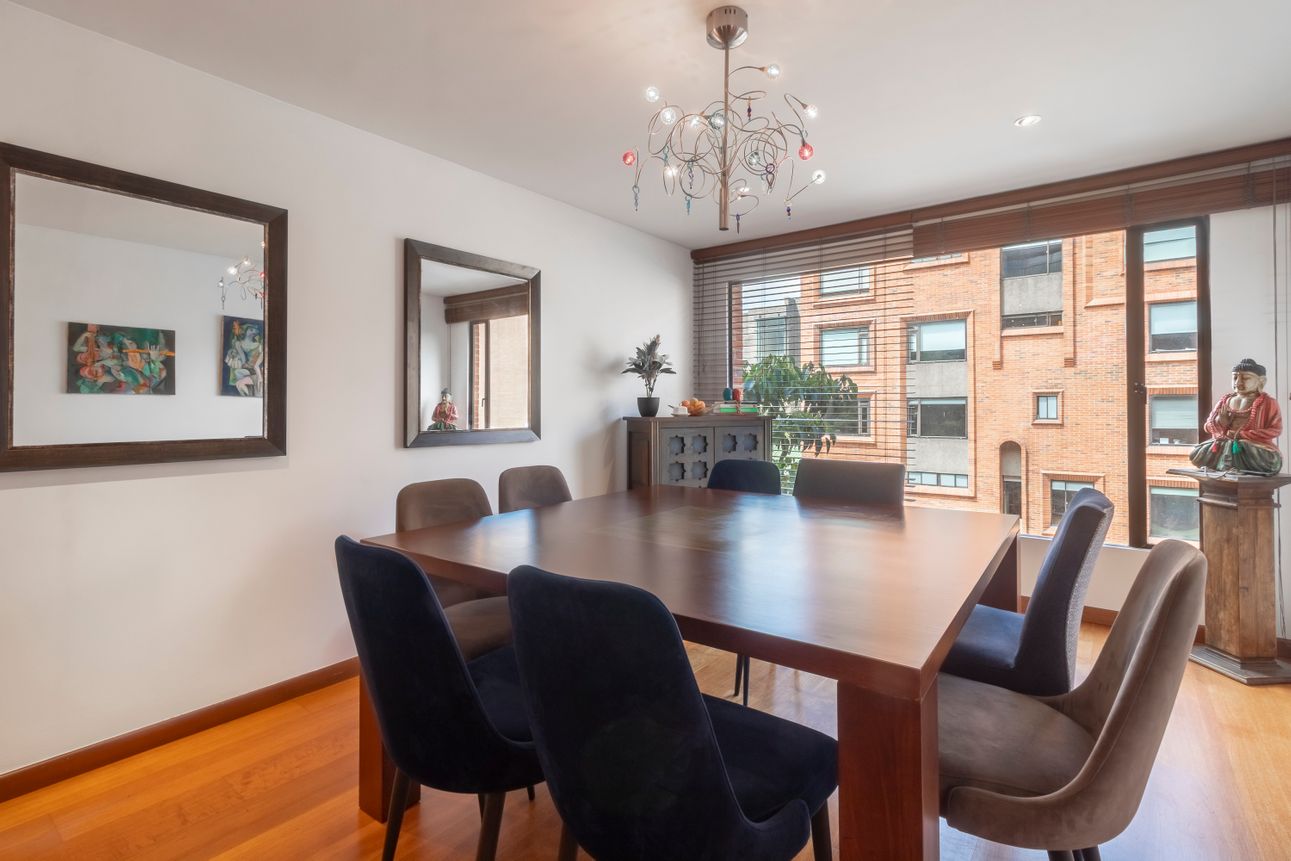 Dentro del edificio, disfruta de comodidades como el salón comunal, cancha de squash, área de juegos infantiles y un centro de negocios. La planta eléctrica total y la vigilancia garantizan seguridad y tranquilidad. La vista exterior al paisaje urbano de Bogotá es un regalo diario que no tiene precio. Posee parqueadero cubierto para tus vehículos, completando la experiencia de vivir en un espacio tan bien pensado.