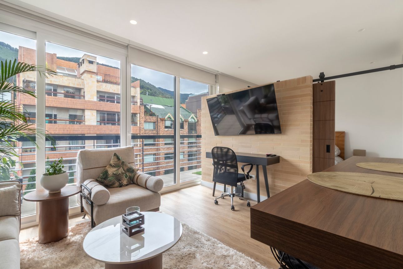 En el Chicó Reservado, encontramos un apartamento encantador y completamente amoblado ideal para quienes buscan comodidad y seguridad. Situado en el cuarto piso, el apartamento ofrece una vista increíble a las montañas que te hará sentir en calma. La cocina americana, abierta e integrada, es perfecta para preparar tus platos favoritos. El balcón, ideal para disfrutar de un café por la mañana, inunda de luz natural el espacio.