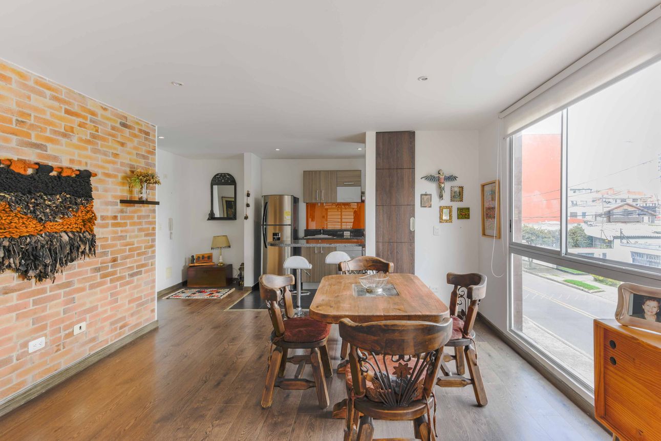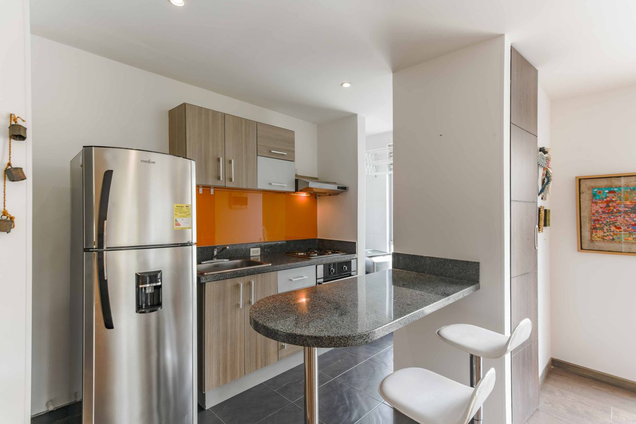 Apartamento en venta en Usaquén, Bogotá, perfecto para quienes buscan comodidad en un espacio acogedor. Ubicado en un segundo piso y contando con un dormitorio, es ideal para vivir solo o en pareja. Desde su balcón, puedes disfrutar de una vista encantadora de la ciudad que nunca decepciona. La cocina y la zona de lavandería son prácticas, con estufa y calentador a gas que aseguran el buen uso del espacio.