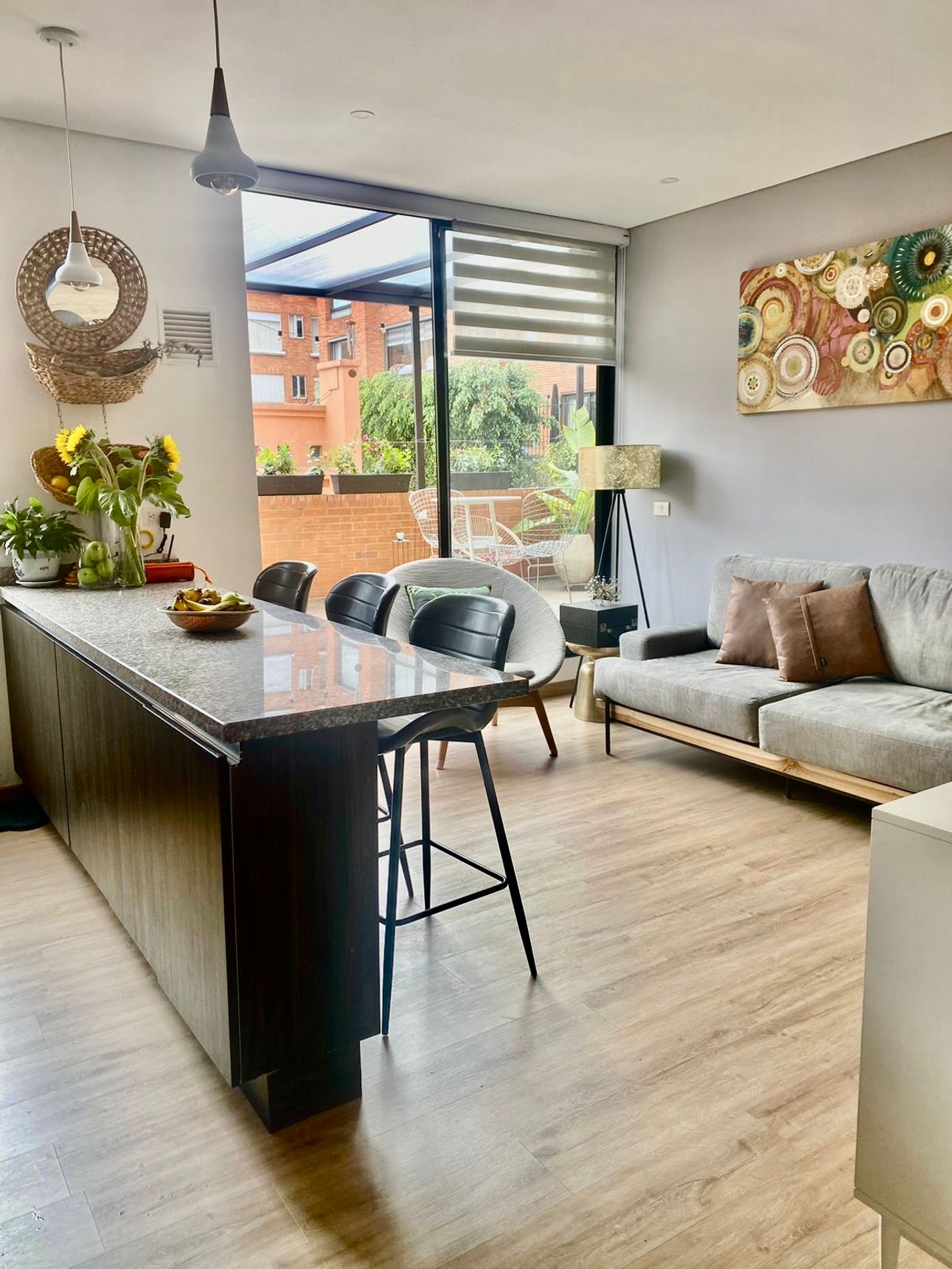 Descubre tu nuevo hogar en el corazón de Chicó Navarra, Bogotá. Este acogedor apartamento ofrece el balance perfecto entre comodidad y funcionalidad. Con una moderna cocina americana, se integra a la perfección con el área social, ideal para quienes aman recibir visitas. La terraza es el lugar perfecto para disfrutar un café mientras contemplas la vista a la ciudad.