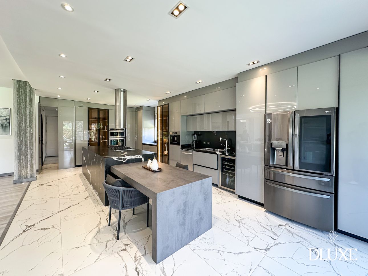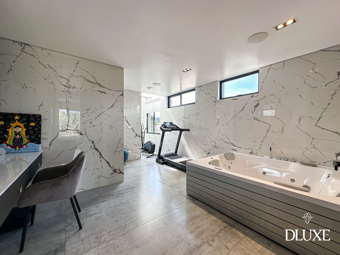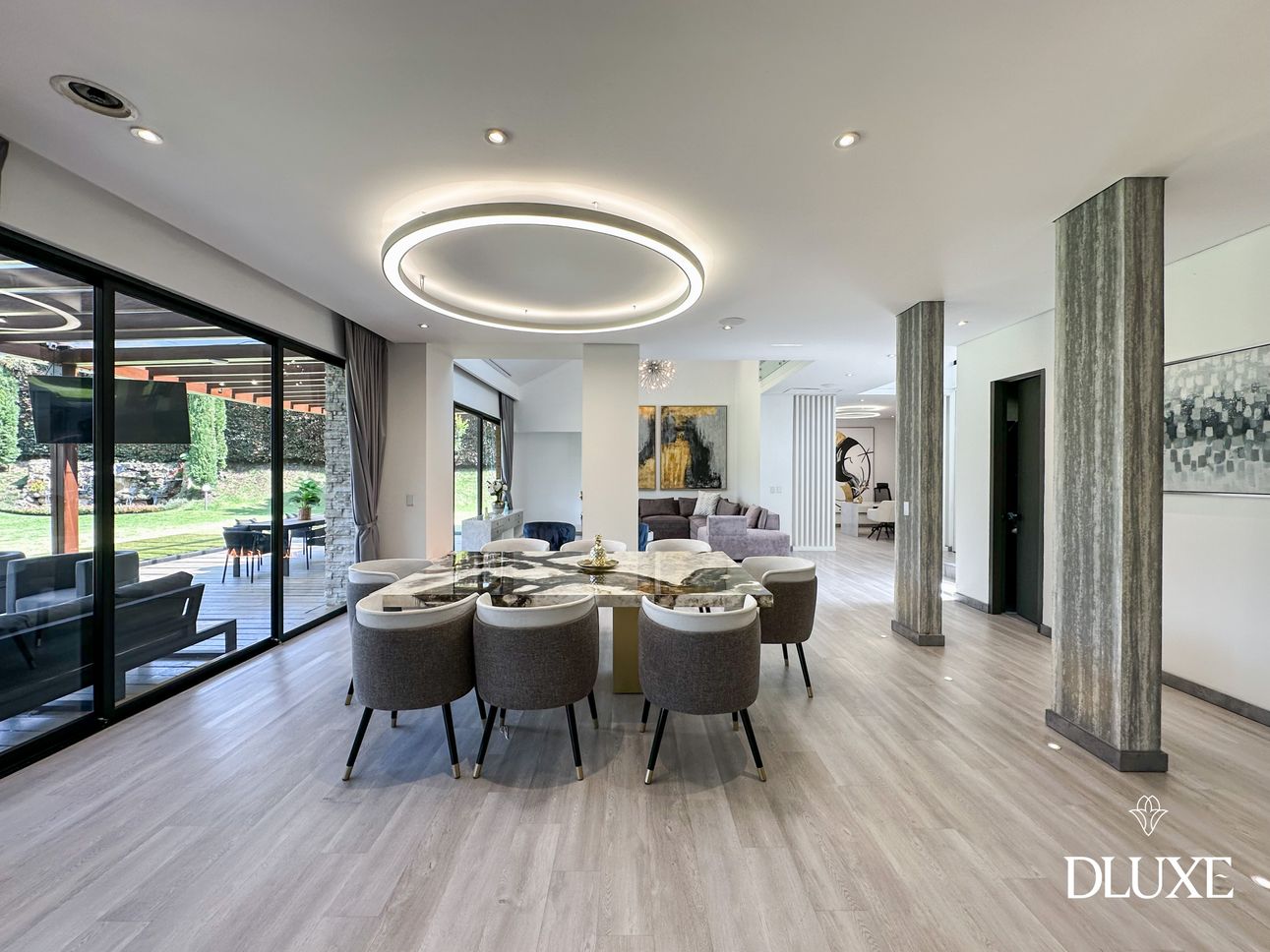 Además de sus generosos ambientes interiores, la propiedad se extiende con una terraza de 80 m2 y un terreno de 1643 m2, que incluye jardines con una cascada Zen. Espacios perfectos para el entretenimiento como una zona de juegos con billar y ping pong, así como una cancha de baloncesto privada, hacen de esta casa un sueño hecho realidad. ¿Y si buscas tranquilidad? Las vistas a las montañas y los senderos ecológicos alrededor ofrecen un respiro único.