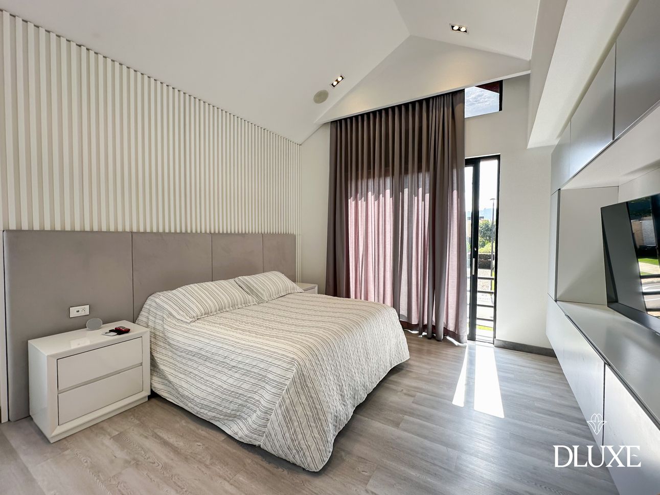 Ubicada en la tranquila y exclusiva zona de Sopó, Cundinamarca, encontramos esta espectacular casa unifamiliar que combina lujo y confort en un espacio de 370 m2 construidos. La propiedad ofrece 3 habitaciones, cada una con baño privado, y una habitación principal que deslumbra con un amplio vestier, jacuzzi y zona de ejercicios propia. Para los amantes de la tecnología, cuenta con un sistema domótico integrado que controla cortinas, iluminación, sonido y más.