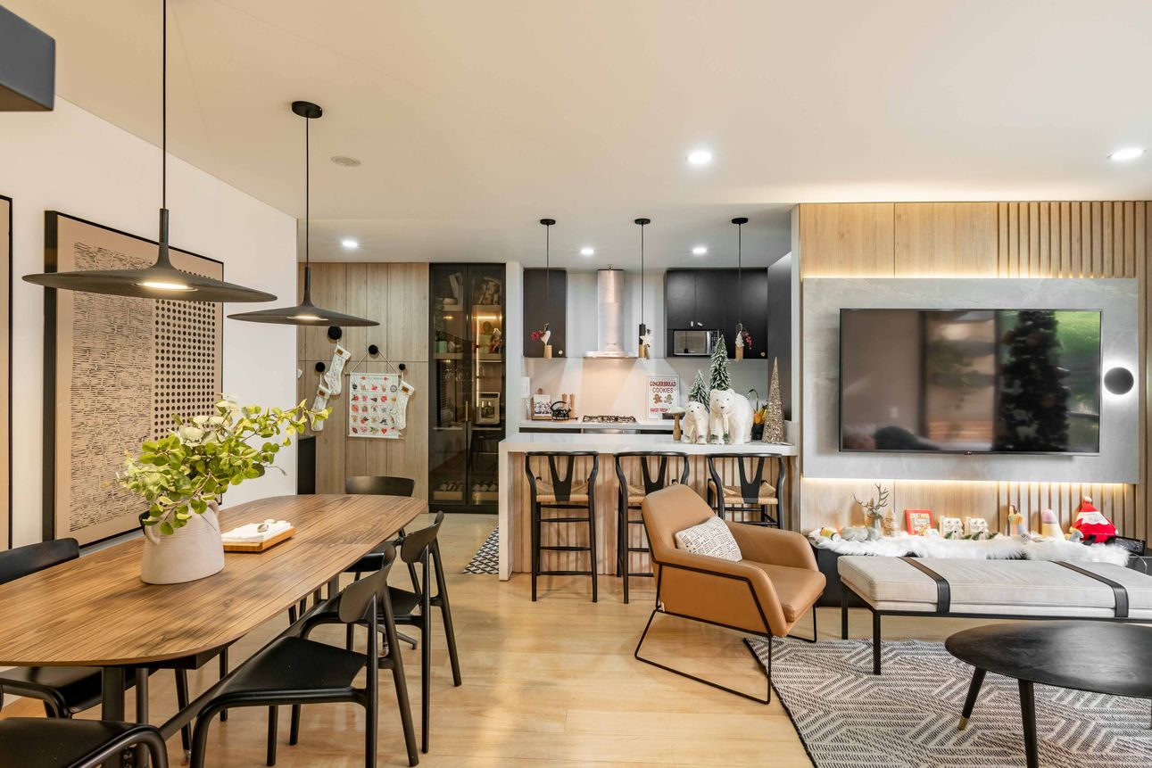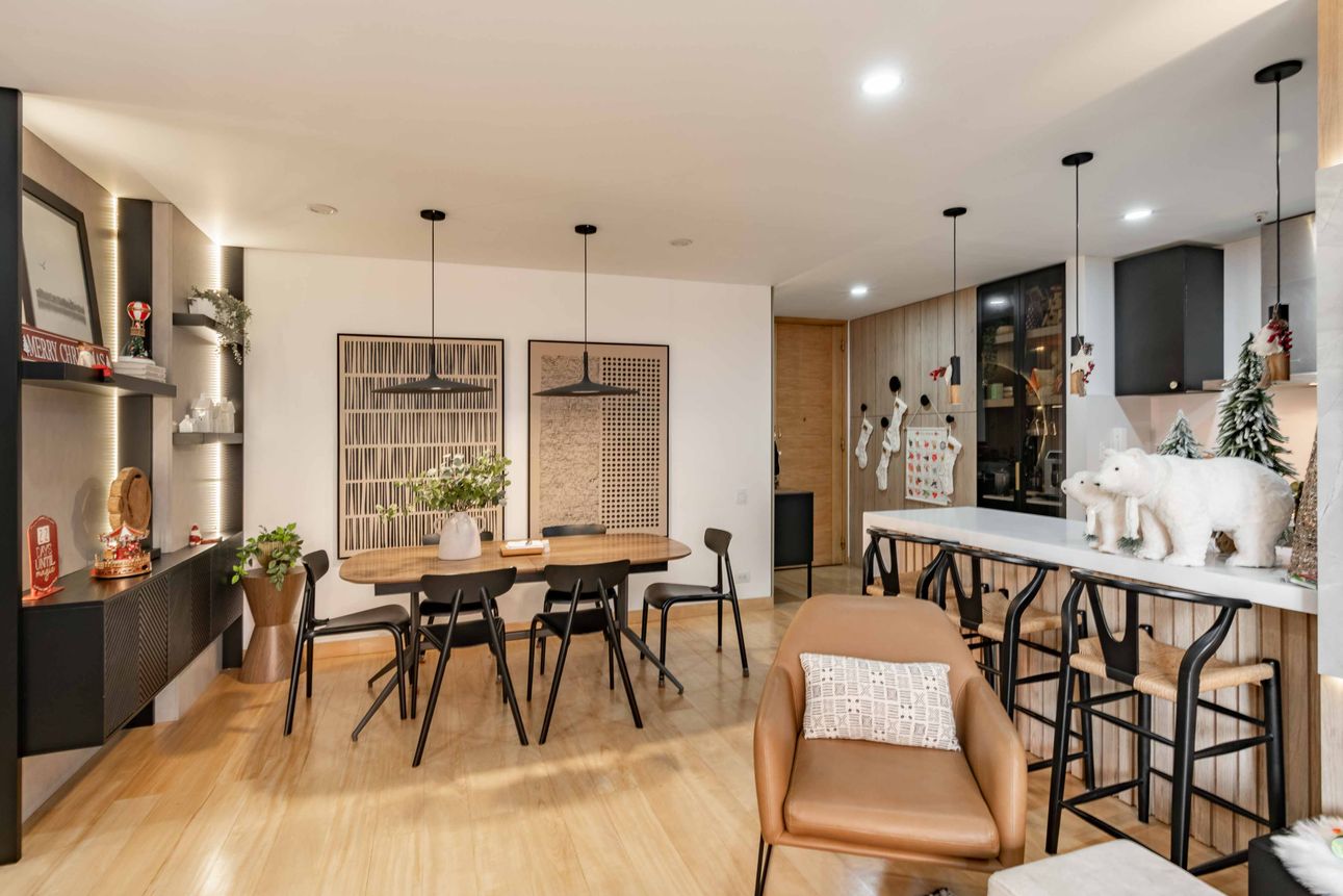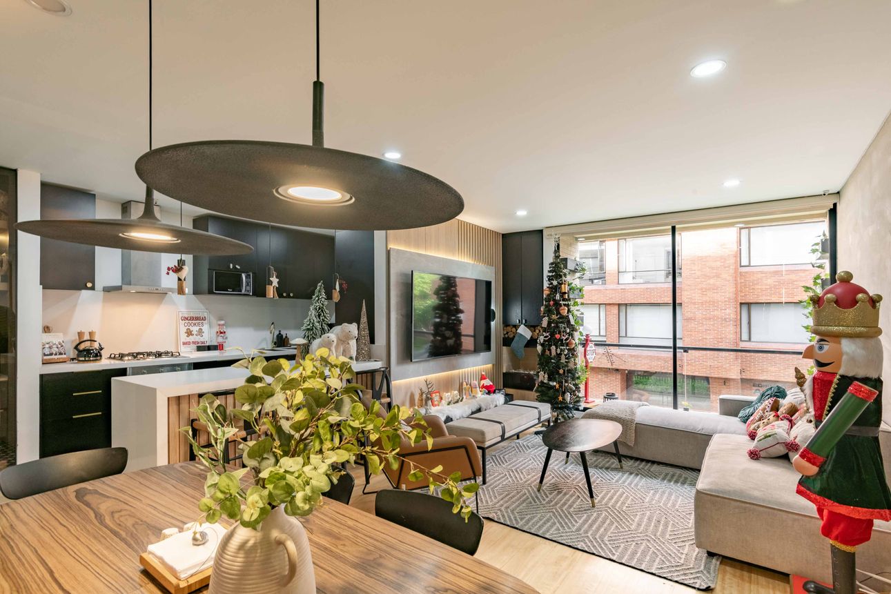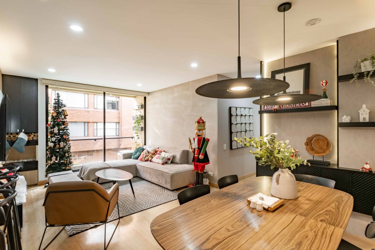 Este lindo y amplio apartamento en Bogotá, combina estilo y comodidad en un solo lugar. Con tres habitaciones y parcialmente amoblado con muebles personalizados, ofrece un ambiente cálido y acogedor. La cocina abierta con barra estilo americano es ideal para disfrutarla. La sala cuenta con una chimenea a gas, perfecta para las noches frías de la capital.