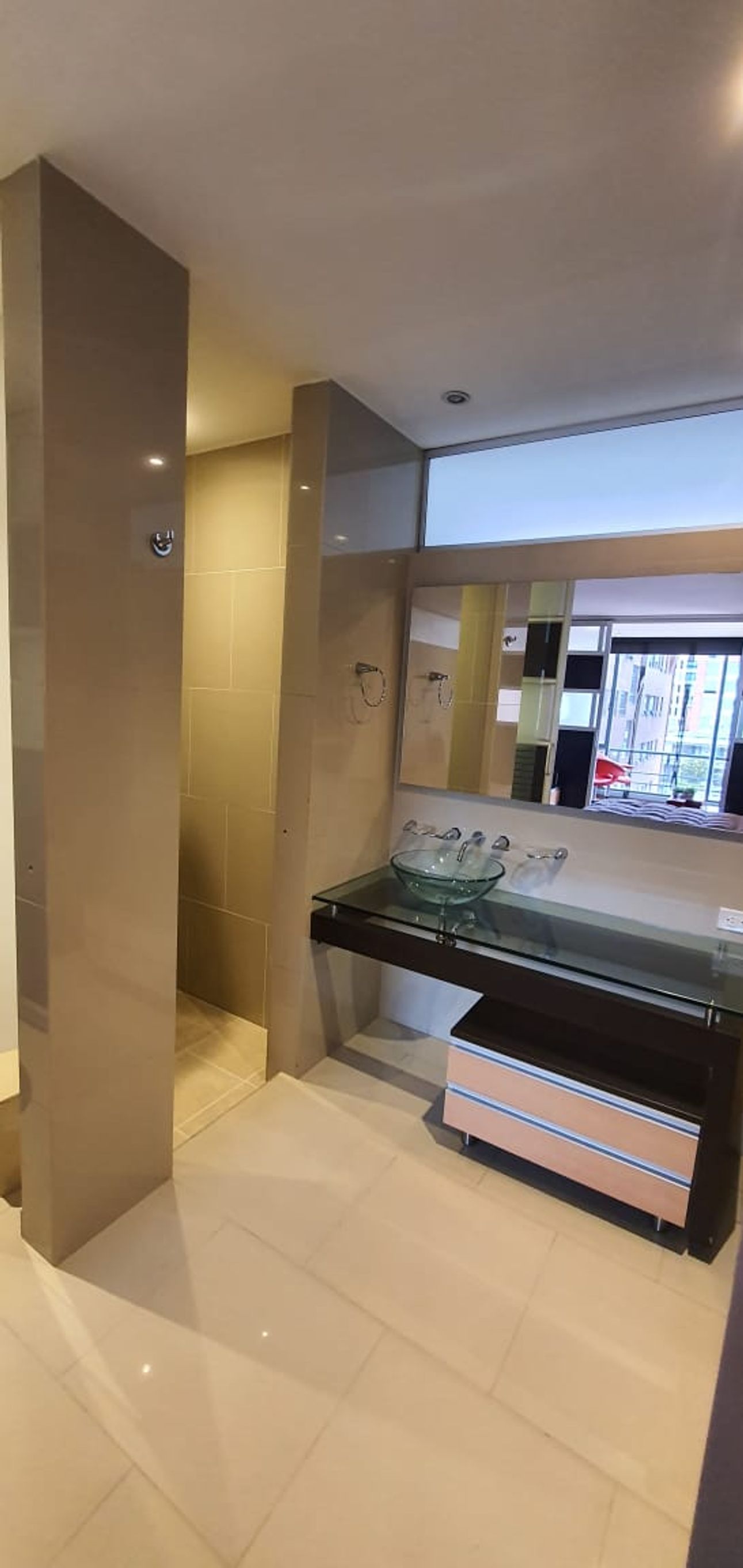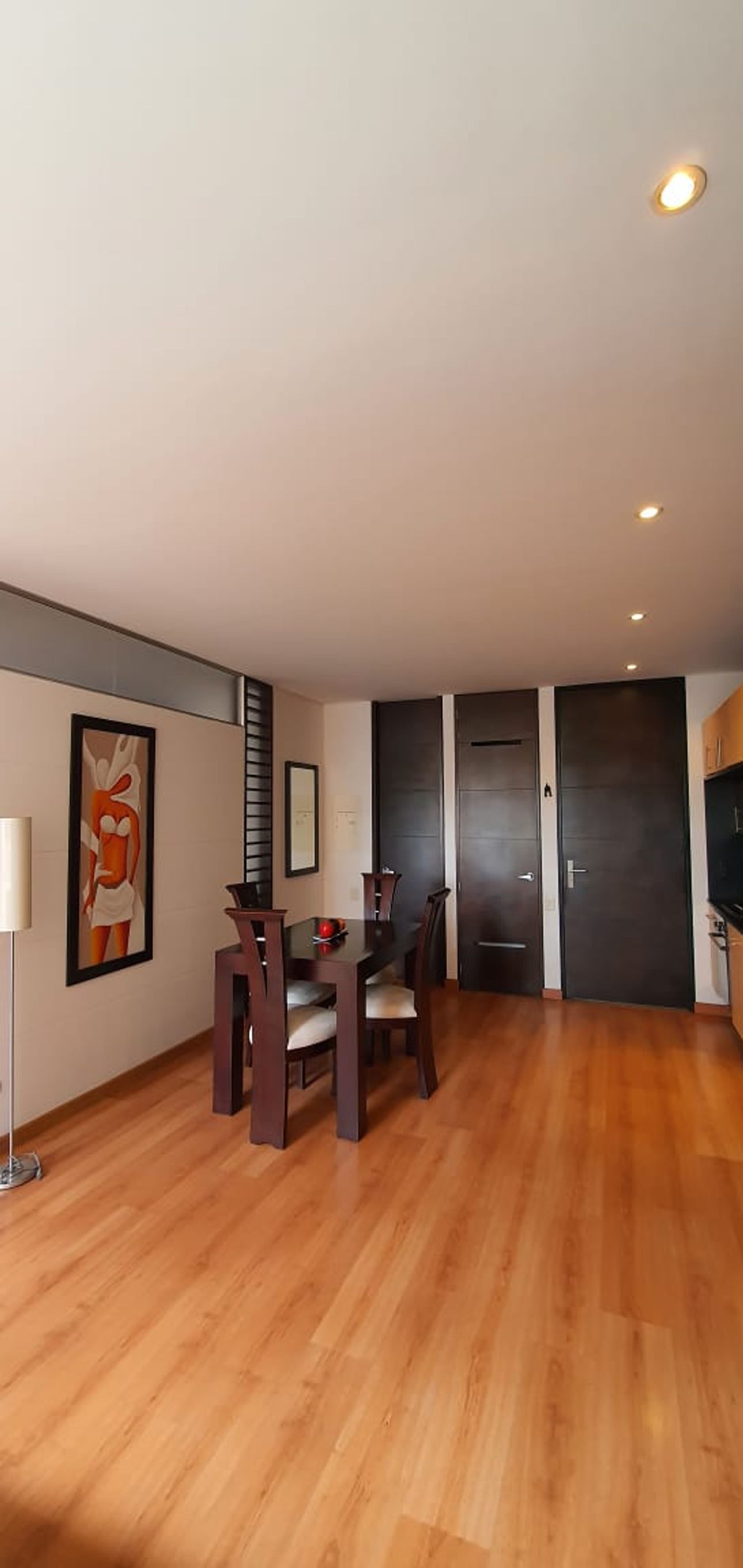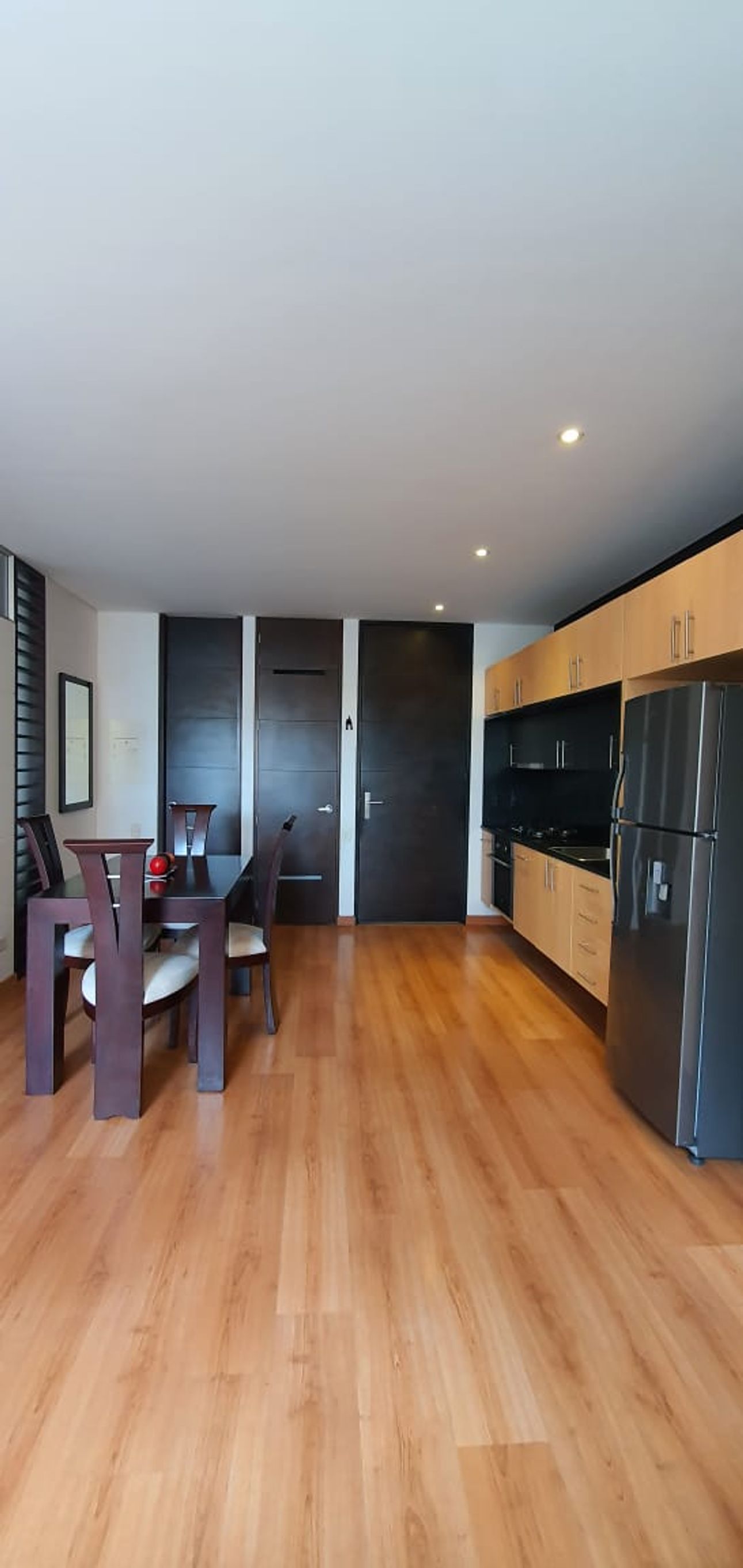 Este apartamento cuenta con una habitación, un baño completo y baño social.